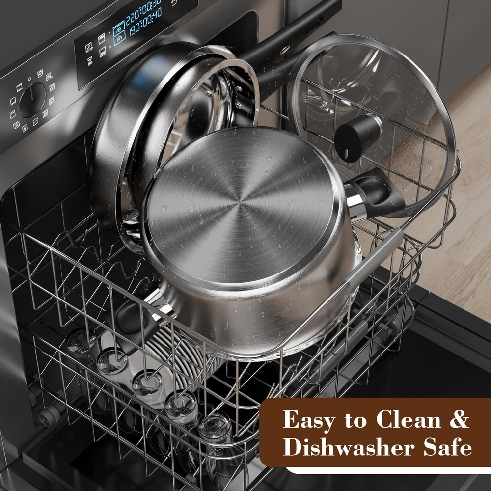 This cookware set is a game-changer! The stainless steel construction heats evenly and cleans up easily. The stay-cool handles are a nice touch, and I love that it’s free of harmful chemicals. Perfect for everyday cooking—the variety of sizes covers all my needs. Sturdy, well-made, and great value for the price. Highly recommend!