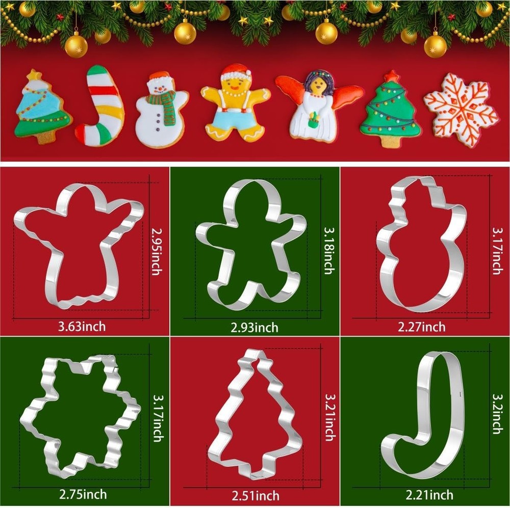6-Piece Steel Christmas Cookie Cutter Set – Gingerbread, Snowflake, Tree & More 【6 PCS Chirstmas Cookie Cutters Set】- The cookie cutter shapes includes Christmas Tree, Snowflake, Gingerbread Man, Candy Cane, Angel and Snowman Shapes.The 6 different shapes of christmas cookie cutters can assist us in creating unique decorations and adding more fun to the christmas party. 【Easy to Use】- Christmas cookie cutters are made of all stainless steel, which is easy to shape and use. They are very suitable for christmas parties such as family, schools, friend's home, etc. 【Widely Used】- Metal cookie cutter set can not only be used for cookie dough, but also for jelly, cheese, soft fruits, craft clay, and more. They can be used to create christmas related decorations during our christmas parties. 【Integrated Design】- The top of the cookie cutter shapes completely stainless steel curling, making it easy to grip and use. The sharp bottom can be easily cut into various shapes with just a gentle press, allowing you to easily complete christmas parties decoration tasks. 【DIY Creativity】- The holiday cookie cutter set includes 6 different shapes and sizes of christmas cookie cutters. You can DIY more styles of cookies or other decorations to add more rich decorations to the Christmas. 【Ideal Choice for Christmas】- Cookie cutters shapes are perfect for Christmas, it can DIY various Christmas themed patterns, and can also be used as a small gift for family and friends. 【Christmas Theme】- Cookie cutters is closely related to the Christmas theme, you can DIY Christmas cookies with kids and friends during the Christmas holiday to enjoy the holiday together. Product description 7.2 inches x 8.78 inches x 0.67 inches. Weight: 3.2 oz Item model number KEL06 Number of Items 6 Color Silver Special Feature Durable, Food-Grade Material Material Stainless Steel Shape Angel, Candy Cane, Christmas Tree, Gingerbread Man, Snowflake, Snowman Item Weight 3.2 ounces Theme Christmas Included Components Christmas Cookie Cutter Finish Type Polished Package Dimensions 8.78 x 7.2 x 0.67 inches Product Care Instructions Hand Wash Only
