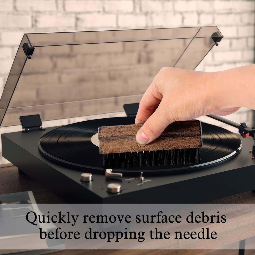 Features: With a dimension of approx. 6.1 x 4.53 x 1.97 inches, the provided black storage box securely hold your cleaning tools. It's compact and easy to store. The brushes in our vinyl record cleaning kit come in dark brown, enhancing aesthetics while keeping your records clean. Ideal for most music lovers who appreciates the fusion of functionality and style. Specifications: Brush color: mainly dark brown Velvet record cleaner brush: Material: velvet and hardwood Size: approx. 4.72 x 1.89 x 1.85 inches/ 12 x 4.8 x 4.7 cm Nylon brush: Size: approx. 4.45 x 1.85 x 0.47 inches/ 11.3 x 4.7 x 1.2 cm Material: nylon and hardwood Storage box: Size: approx. 6.1 x 4.53 x 1.97 inches/ 15.5 x 11.5 x 5 cm Color: black Small cleaning brush: Color: black Material: plastic Cleaning liquid: Capacity: approx. 1.0145 oz/ 30 ml Package includes: 1 x Velvet record cleaning brush 1 x Nylon brush 2 x Small cleaning brush 1 x Cleaning liquid 1 x Storage box Notes: Manual measurement, please allow slight errors on size. The color may exist a slight difference due to different screen displays. Comprehensive Cleaning Package: the set includes 1 velvet soft record brush, 1 nylon brush, 2 small cleaning brushes, 1 bottle of cleaning liquid, and 4 storage box, keeping your vinyl records stain, scratches and fingerprint free Velvet and Hardwood Designed Brushes: the velvet vinyl record brush is constructed of quality velvet and hardwood, ensuring gentle and thorough cleaning to keep your records in better condition, easy to pick up; The size of this brush is approximately 4.72 x 1.89 x 1.88 inches, making it proper to handle record cleaning task Compact and Handy: the nylon brush, sized at approx. 4.45 x 1.85 x 0.50 inches, can effectively remove dust, dirt from the grooves of your vinyl records, ensuring smooth and clear sound quality, and the microfiber brushes can removes dust and other tiny particles in your record player's needle Wide Applications: the vinyl records cleaner kit can be applied for christmas gift for music lovers , vinyl records lovers, phonographs, digital cameras, albums, screens, laptops, car interiors, office equipment, furniture, electrical appliances and more Warm Tips: the vinyl cleaning kit for records is an ideal gift for vinyl lovers, providing them with an efficient solution for preserving their loved records; Please note the record cleaning fluid doesn't include alcohol and will not leave behind residue on the surface of your vinyl, and you can use it along with the velvet brush to remove dust; Please remove debris from the brush before use