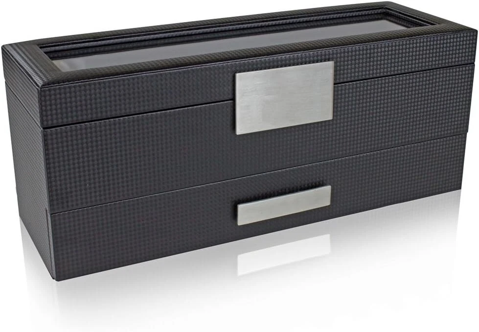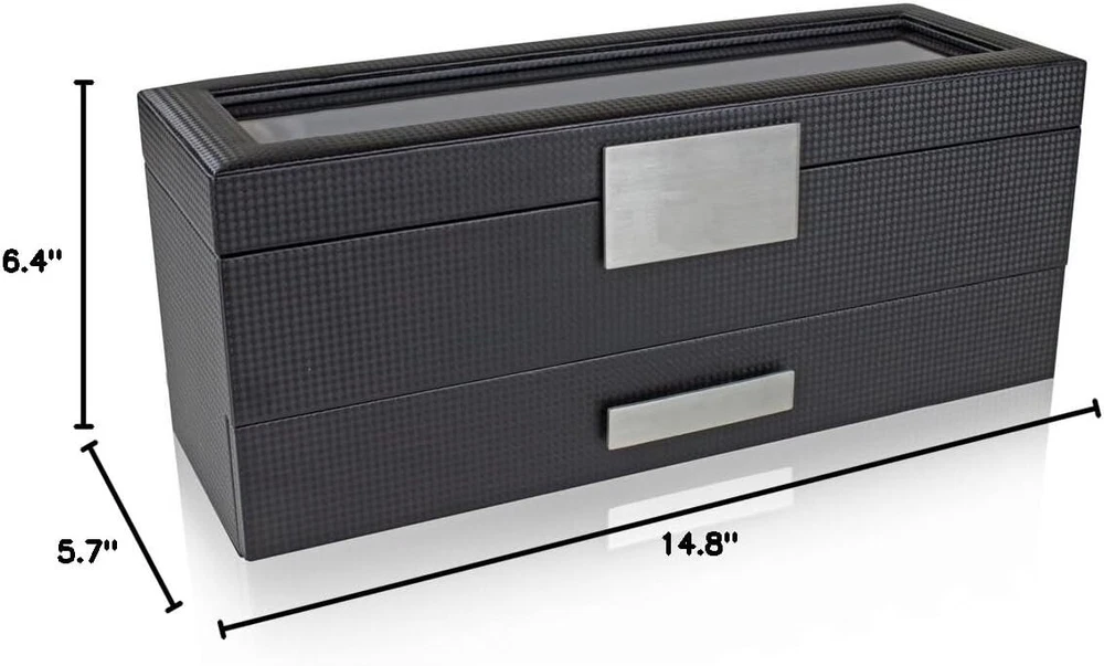 This watch box is a game-changer for any watch enthusiast! The sleek carbon fiber design adds a touch of luxury, while the six spacious compartments keep my collection organized and protected. The valet drawer is perfect for small accessories—no more searching for cufflinks or rings. The soft interior lining prevents scratches, and the sturdy build feels premium. It’s not just storage; it’s a stylish display that elevates my dresser. Highly recommend for anyone who values both function and elegance!