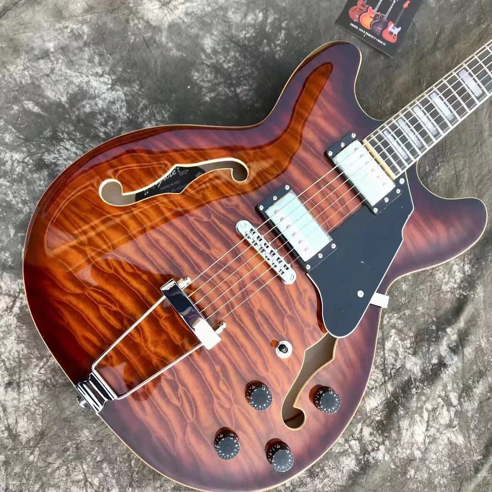 $ 1212.82Sunburst Semi-hollow Electric Guitar with F-Holes HH Pickups Chrome Hardware Factory Fresh