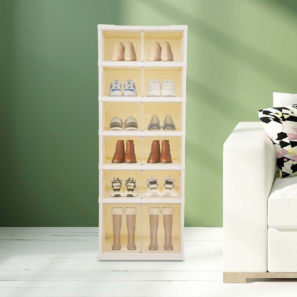 Specification Material: PP+PET+ABS Color: Cream White and Yellow Style: Modern Shape: Rectangular Mounting Type: Floor Standing Storage Capacity: 12 Pair of Shoes Number of Tiers: 6 Load Capacity: Within 100kg/220lbs Bottom Tier Height: 30cm/11.8in Height of Each Remaining Tier: 18cm/7.08in Product Size: 44*34.5*118cm/17.32*13.58*46.46in Product Size(Folded): 44*34.5*20cm/17.32*13.58*7.87in Package Size: 45.5*21*37cm/17.91*8.27*14.57in Gross Weight: 6.2kg/13.67lbs Net Weight: 5.4kg/11.9lbs 6 Tier Foldable Shoe Rack Organizer Plastic Collapsible Shoe Racks Shelf Storage Description In our daily lives, a neat and organized space can make us feel relaxed and happy. The feeling of coming home starts from entering the door and changing shoes. Choose the foldable shoe rack that you like to store your shoes. With its large capacity and elegant appearance, this item makes you feel warm, giving you a sense of pleasure and comfort from the moment you walk in the door. Key Features Last and Durable: It is made of high-quality PP+PET+ABS, which makes this item non-toxic, environmentally friendly, and sturdy, so it can provide good performance for a long time. Storage Assistant: With 6 tiers and wide compartments, there is plenty of space above and below to store shoes or other items in an organized manner, and the platform on top can hold potted plants, lamps, alarm clocks, etc. for a more tidy and warm environment. Thoughtful Design: The double-opening magnetic door makes it easy to access and place your shoes, the clear design allows you to display your shoes well while facilitating positioning for quick access, and the ventilation holes on the back ensure air circulation and prevent moisture from entering your shoes. Excellent Load Capacity: The rectangular construction and high-quality materials ensure that it can hold up to 220lbs, allowing you to place your belongings with confidence. Easy to Clean: The smooth surface and simple structure allow you to easily remove dust and residues with a wet towel. Ready to Go: The product is already assembled, once you receive it, just lay it flat and unfold the skeleton, then pull the panels apart and snap them on to use it, it's very time-saving and convenient! Space-saving: With its compact footprint (17.32*13.58 inches) you can fit it nicely against a wall, and the collapsible design makes it easy to store or take it with you when not in use. Protective Package: To prevent the product from being damaged and bumped during transportation, we packed it with foam to protect your products to the maximum extent possible. Details Practical Wheels: The wheels on the bottom make it easy for you to move the product. Top Panel Depressions: They provide anti-slip protection and also allow you to place umbrellas with confidence. Round Hole: Each door comes with a round hole for you to open and close the cabinet door. Protective Pads: They can prevent the product from scratching your walls or floors and prevent the sharp points of the product from accidentally injuring your family members. Application It is suitable for office, hallway, attic, garage, bedroom, living room, closet or study to store and display your sneakers, flats, high heels and so on. They are also suitable for storing and sorting underwear, socks, scarves, ties, gloves, puzzle sets, stuffed animals, jigsaw puzzles, toy cars, towels, toilet paper, skin care products, cosmetics, files, books or other office supplies such as pens, glue or snacks. Specification Material: PP+PET+ABS Color: Cream White and Yellow Style: Modern Shape: Rectangular Mounting Type: Floor Standing Storage Capacity: 12 Pair of Shoes Number of Tiers: 6 Load Capacity: Within 100kg/220lbs Bottom Tier Height: 30cm/11.8in Height of Each Remaining Tier: 18cm/7.08in Product Size: 44*34.5*118cm/17.32*13.58*46.46in Product Size(Folded): 44*34.5*20cm/17.32*13.58*7.87in Package Size: 45.5*21*37cm/17.91*8.27*14.57in Gross Weight: 6.2kg/13.67lbs Net Weight: 5.4kg/11.9lbs Package Included 1* Foldable Shoe Rack All Accessories for Installation Notes Please note that this product does not include shoes, etc. Please allow the slight color difference caused by the shooting light and 1-3cm error due to manual measurement, and make sure you do not mind before ordering. Payment Delivery details Terms of sales About us Contact us Payment We accept ebay payment 。 Fees such as import duties, taxes are not included in the item price or shipping costs. These charges are the buyer's responsibility. Delivery details Shipping: 2-9 working days to: USA Terms of sales We maintain high standards of excellence and strive for hundred percent customer satisfaction. Feedback is very important to us. We hope that you contact us immediately before you give neutral or negative feedback, so that we can address your concerns. It is impossible to address issues if we do not know about them! About us Your satis faction is our ultimate goal. We work hard to earn your trust and future business. Our certified technicians have tested each item before shipping. The unit comes with 1 year limited warranty on all manufacturing defects. a) If you receive a defective item, you may return it or ask for a discount. Please contact us within 14 days after you receive the package. b) What you returned must be intact and in its original packaging as re? u. Customer is responsible for shipping costs of the returned item. c) We will cover the cost of shipping back t with the shipping rate indicated in the registration page. We will send you a new unit or refund the full payment you paid. Thank you. Contact us Business Hour Business Hour: Monday To Friday: 8:30 AM to 5:00 PM (Beijing China time) Due to time zones, our reply to your questions may not be immediately. But within above working time, we will reply your email within 24 hours. If it's non-workdays, please kindly be patient and wait till Monday. Please contact us with ebay message. Please feel free to contact us if you have an