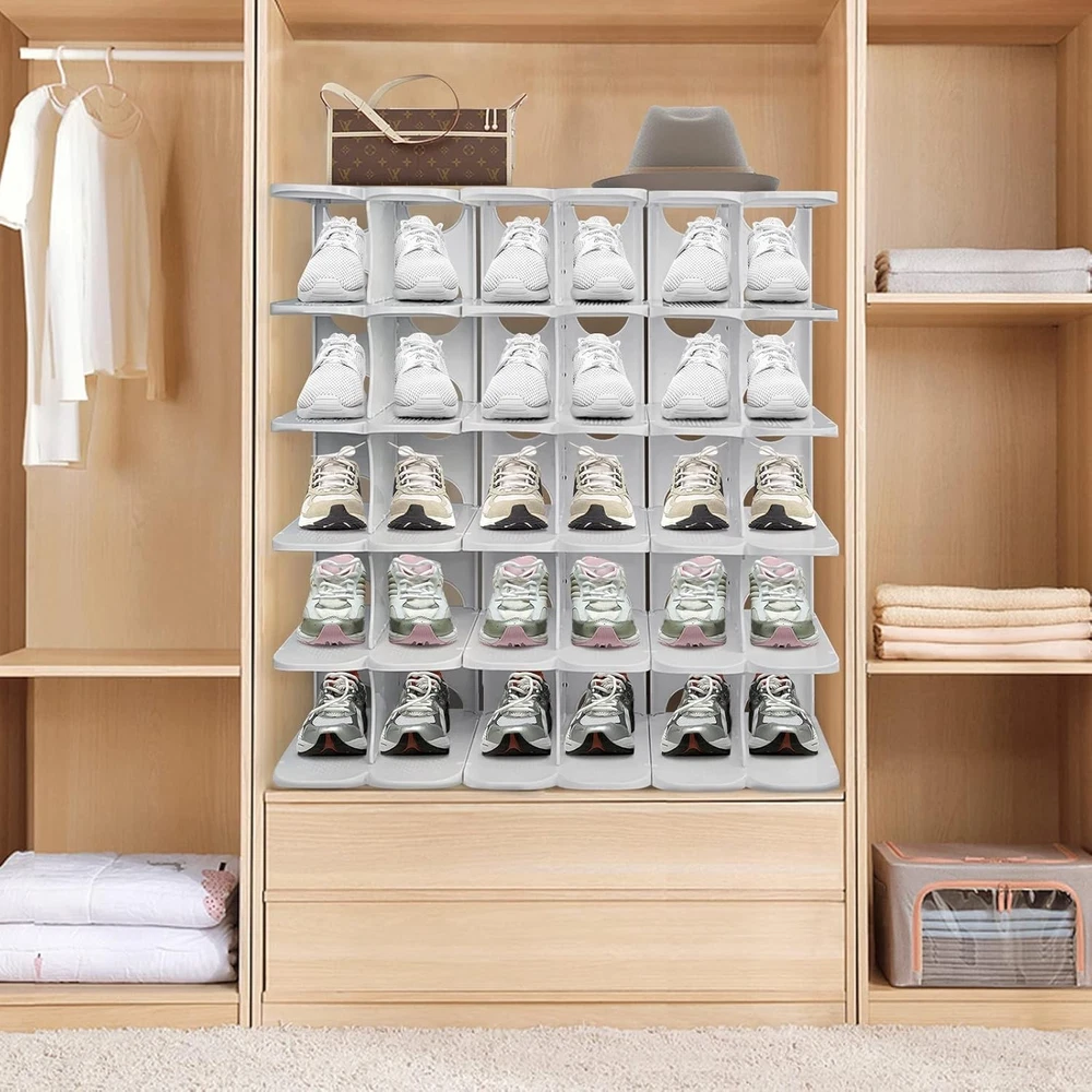 This shoe rack is a game-changer for my closet! The thickened PP material makes it super sturdy, and the non-slip surface keeps my shoes from sliding. Love that I can combine multiple sets to fit any space—perfect for sneakers, heels, and even boots. Super easy to assemble and saves so much room. Highly recommend for anyone needing smart, durable shoe storage!