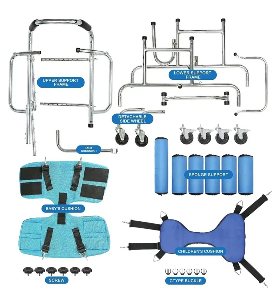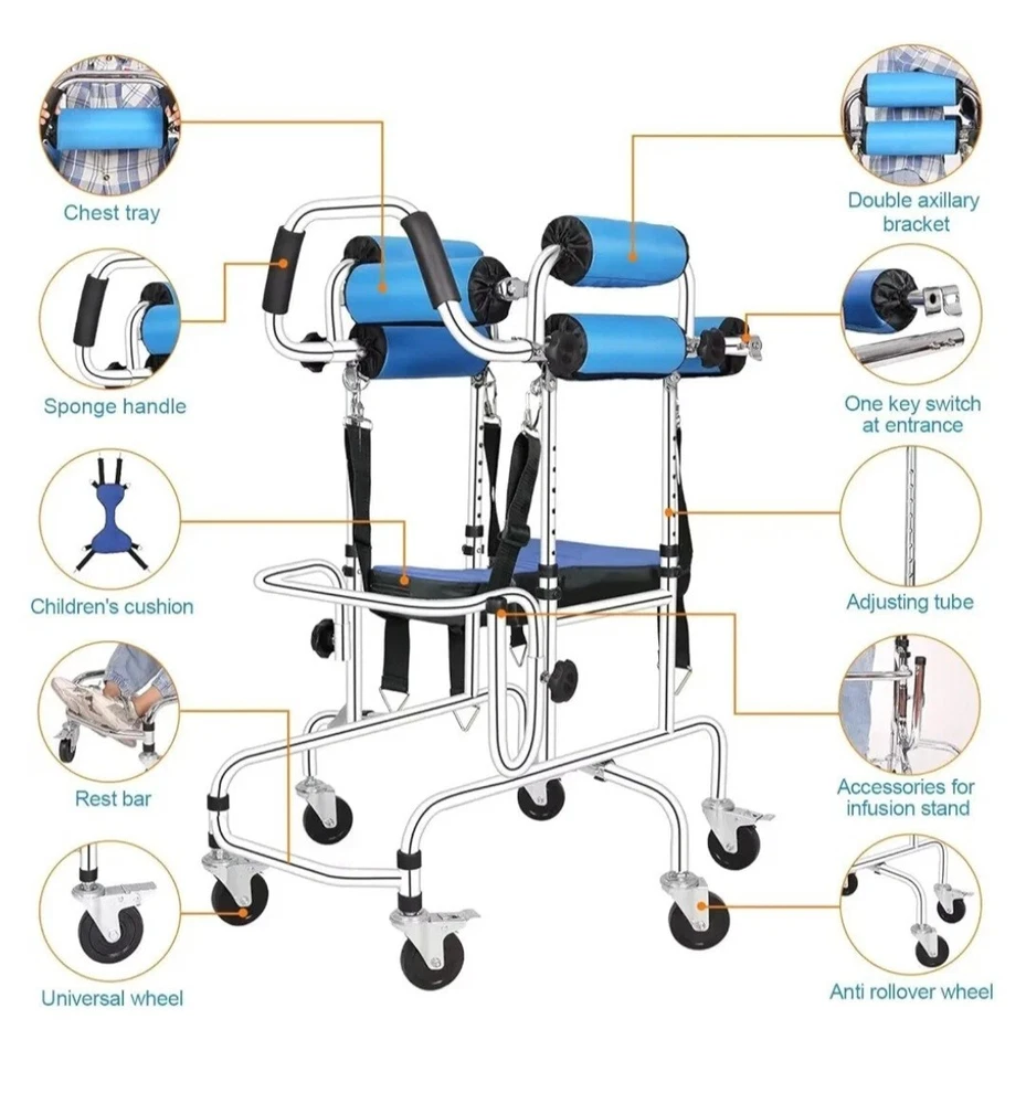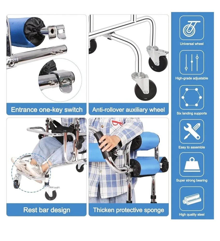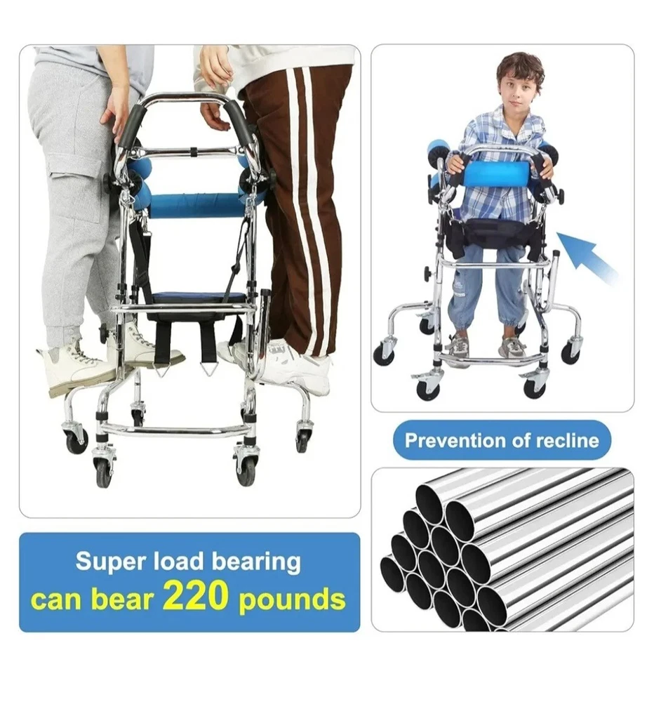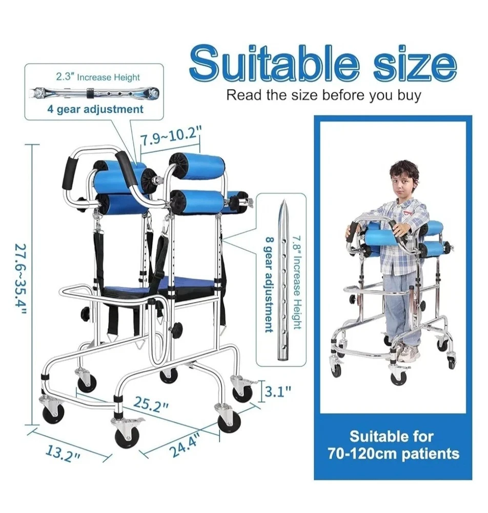 【Multifunctional Walker】It is suitable for postoperative rehabilitation training for patients with hemiplegia, stroke, fracture, joint pain, mobility impairment, sports trauma, etc. It is suitable for people with a height of 28-48 in (70-120 cm) 【New Upgrade】Design a new armrest to avoid the impact of the protruding armrest on the user, which is safer and more reliable in one-piece production 【Product Features】Equipped with double cushions, it is suitable for use in different seasons and different body types. The breathable cushions are more wrapped and safer for smaller children. Ordinary cushions have a wider range of motion and are more flexible, suitable for slightly larger children. The walker pulley adopts solid tires, which are anti-slip and wear-resistant: the sliding speed of the wheels can be adjusted, and the braking function is safer 【Reliable Material】The walker is made of thick carbon steel pipe, which is made by electroplating and polishing process. Reliable quality, smooth and anti-rust, reliable welding. The armrest and seat cushion are designed with high-density sponge, which can absorb sweat and prevent slipping. When the user's arm is weak, the user can rely on it to improve the balance of the body and the use effect. Holds 220 lbs 【Adjustable】The height and width are adjusted by pressing the buckle, and people with different body types can be used. There are 8 gears for height adjustment, and the adjustable range is 27.6 in-35.4 in. There are 4 gears to adjust the width (use the side knob to fix the position after adjustment), and the adjustable range is 7.9 in-10.2 in 【Security Design】Anti-overturning design: Stability comes from the chassis, which is widened front and rear, better preventing forward and backward tilting, and more convenient to use. Anti-rollover design: The double-sided anti-rollover safety wheels can better prevent left and right rollover, making it safer to use