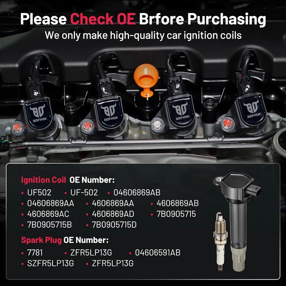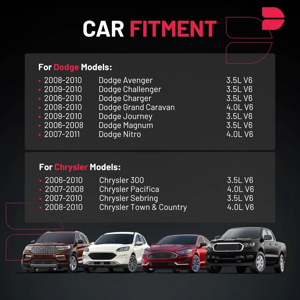 FIT FOR 2007-2008 Chrysler Pacifica V6 4.0L 2006-2010 Chrysler Sebring V6 2.7L 2007-2010 Chrysler Sebring V6 3.5L 2008-2010 Chrysler Town & Country V6 4.0L 2006-2010 Chrysler 300 V6 2.7L 2006-2010 CHrysler 300 V6 3.5L 2008-2010 Dodge Avenger V6 2.7L 2008-2010 Dodge Avenger V6 3.5L 2009-2010 Dodge Challenger V6 3.5L 2006-2010 Dodge Charger V6 2.7L 2006-2010 Dodge Charger V6 3.5L 2008-2010 Dodge Grand Caravan V6 4.0L 2009-2010 Dodge Journey 2009-2010 V6 3.5L 2006-2008 Dodge Magnum V6 2.7L 2006-2008 Dodge Magnum V6 3.5L 2011 Dodge Nitro V6 3.7L 2007-2011 Dodge Nitro V6 4.0L 2006 Dodge Stratus V6 2.7L 2009-2010 Volkswagen Routan V6 4.0L Description 6 x Ignition Coil 4606869AA / 4606869AB inclued package ( 6 p ieces) Note - Material : ABS RUBBER - Installation : 1:1 Exchange - Made in China - Condition: 100% Brand New & Unused