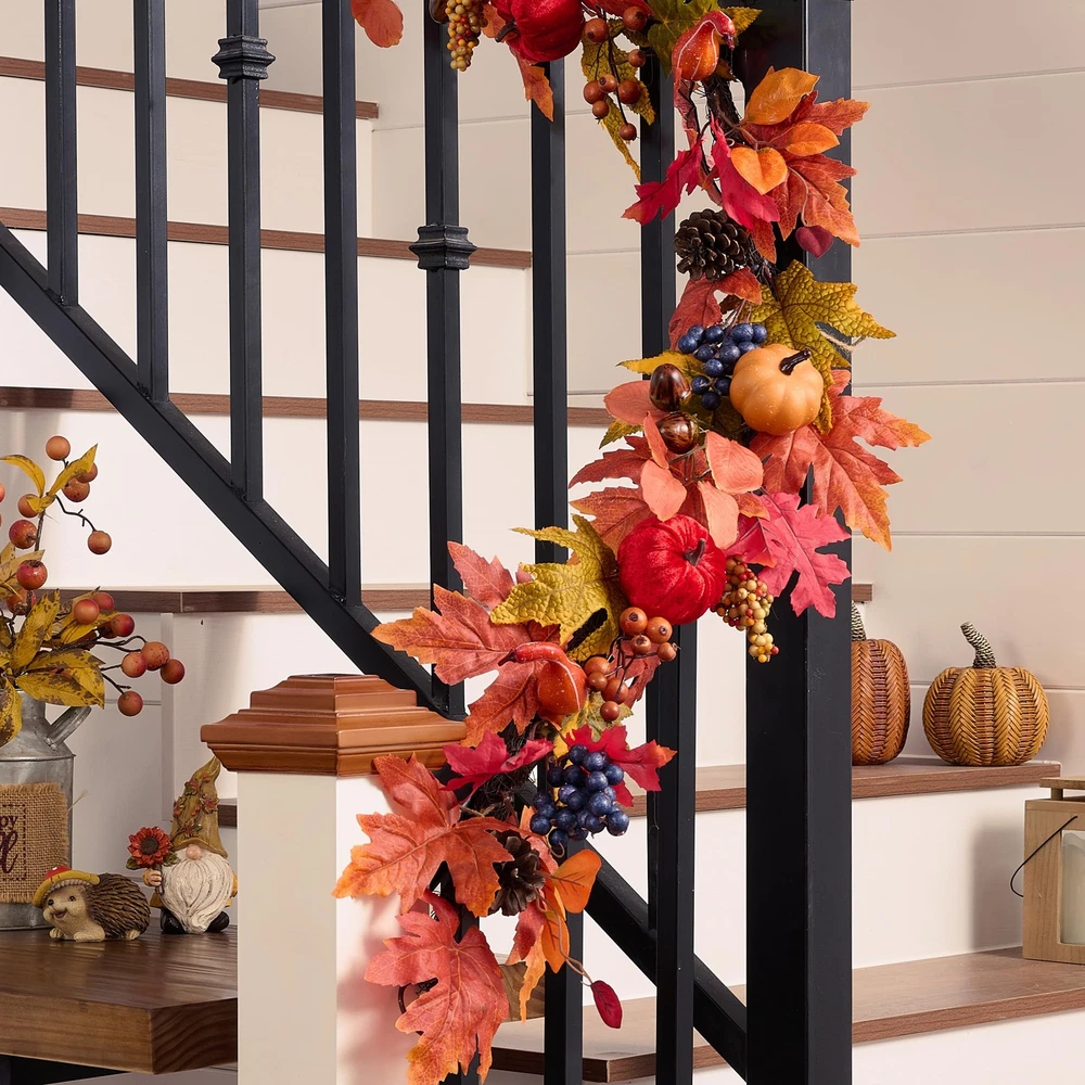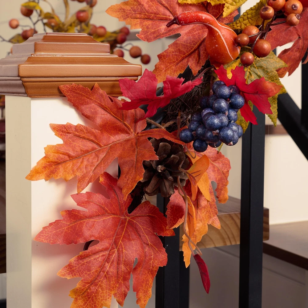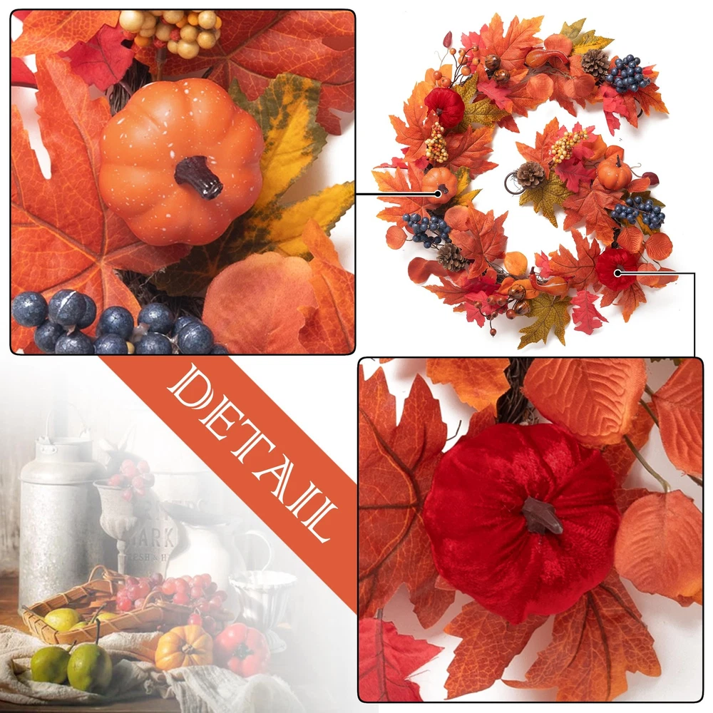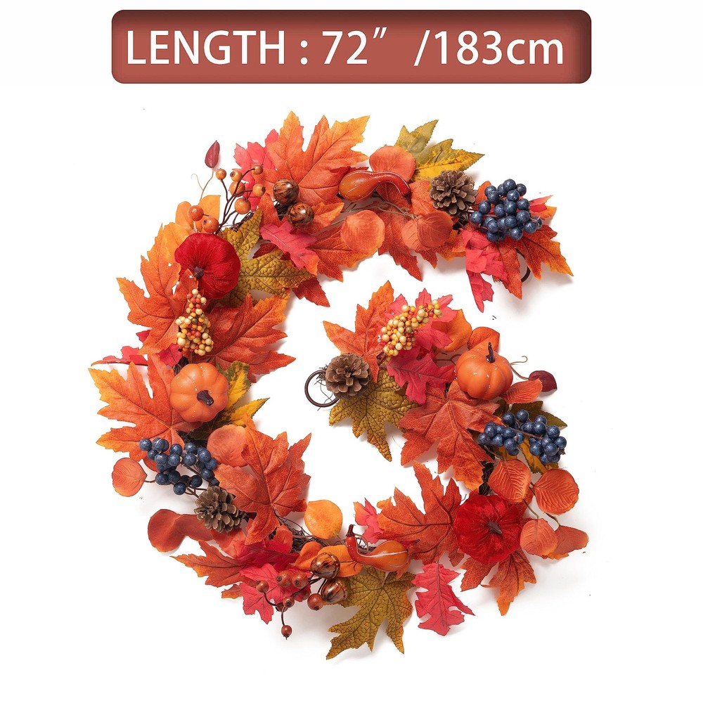 Artificial Fall Garland 【Original Design】 Embrace the beauty of fall with our unique garland, featuring stunning autumn colors and a design that perfectly captures the essence of the season 【Premium Quality Materials】 Crafted with high-quality materials, the artificial garland is durable and built to last, making them perfect for your indoor or outdoor decor 【Versatile Decor Piece】 This hanging garland measures approximately 6 Feet/1.83m in length. Whether hung on a door or used as a centerpiece, this versatile maple garland can add warmth and beauty to any space 【Perfect Gift】 Spread joy and cheer this holiday season with these beautiful fall garlands, which make great holiday gifts for family and friends 【Tips】 This wreath can easily bend for reshaping purposes, please extend and fluff the stems to achieve the desired fullness