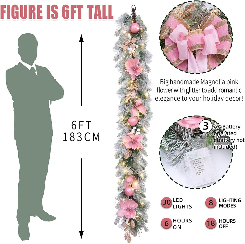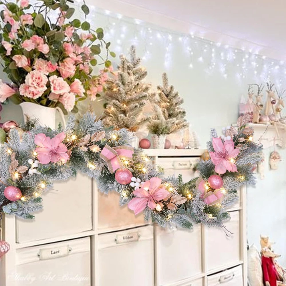 This pink LED garland is absolutely stunning—perfect for adding a festive glow to doors, mantels, or staircases! The 30 warm lights create a magical ambiance, and the timer function makes it so convenient. The artificial magnolias look realistic, and the lightweight design is easy to hang. Love how it brightens up any space for Christmas or weddings! Highly recommend!