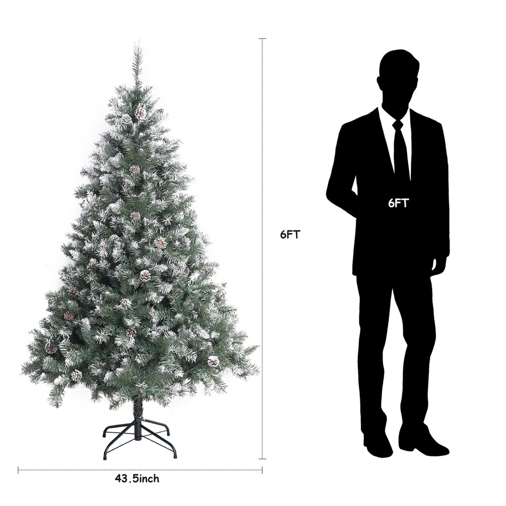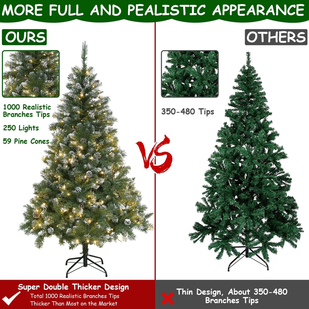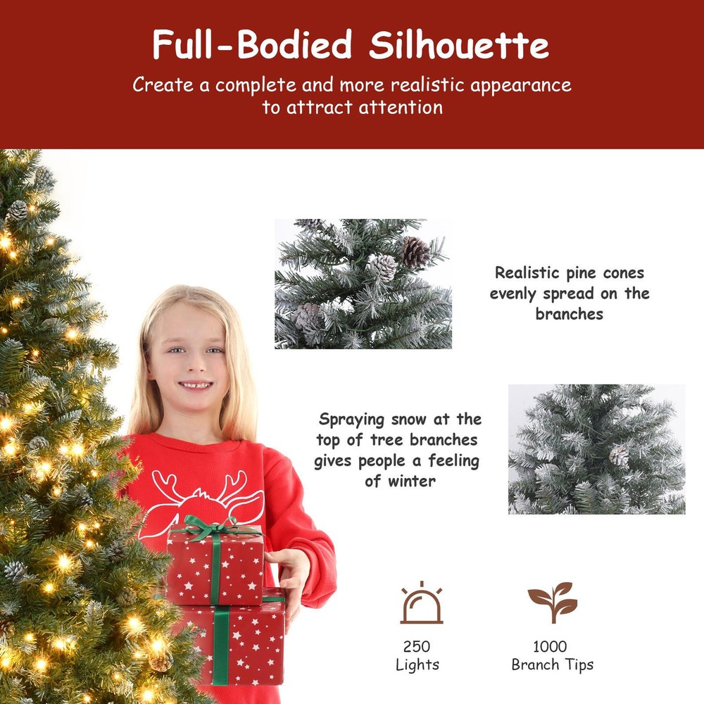 6ft Snow Flocked Artificial Christmas Tree with Pine Cones 250 Lights 1000 Branches