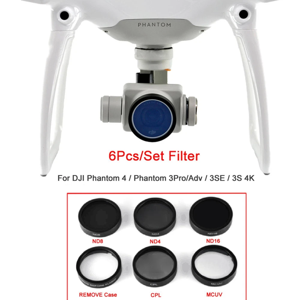 This 6-piece filter set is a must-have for DJI drone owners! The UV, CPL, and ND4/8/16 filters provide excellent light control and protection for your lens. I love how the ND filters allow for smooth footage even in bright sunlight. The build quality feels durable, and they fit perfectly on my Phantom 4. The clear lens protector gives me peace of mind against scratches. Super convenient having all these filters in one set—great value for the price! My aerial shots look way more professional now. Highly recommend for any serious drone photographer.