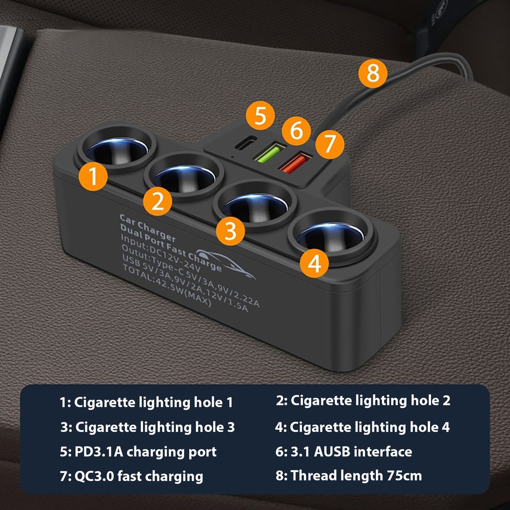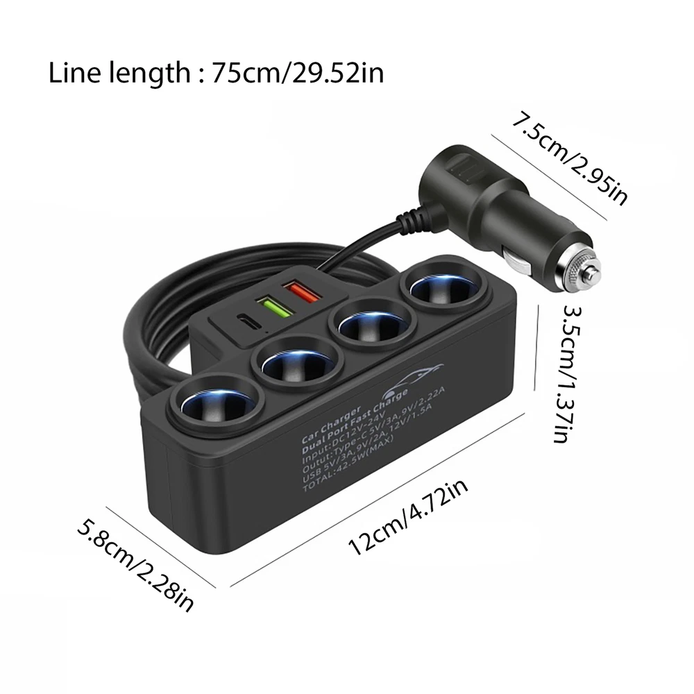 Multi Port USB Car Cigarette Lighter Socket Splitter Charger Power Adapter Bullet Points: Reliable Electronics Adaptability: Featuring a distinctive and unique design, our car lighter adapter boasts a 3USB expansion interface and 4 lighter holes, allowing for seamless energy support of various electronic electronics. Experience up to 120W output for maximum efficiency. Fast Charging: Intelligent fast charging car charger adapter that can simultaneously meet the charging needs of three electronics, saving time and labor while improving charging efficiency. Easy Installation: Seamlessly integrate this car inverter charger into your vehicle with its self-adhesive design, ensuring a stable and convenient energy source wherever you go. Safe Charging Provided: No more hot charging for a long time with our intelligent cooling and constant current technology. Our car adapter ensures your electronics are charged safely with a steady current and stable temperature. Multifunctional Car Charger: Boost your car's charging capacity with our reliable car lighter adapter. Perfectly suitable for car navigation systems, this adapter charges USB-operated electronics like cell phones, tablets, music players, and more. This car charger adapter features four lighter ports and can be easily fixed with double-sided tape. Its design ensures charging safety for all your electronics. Widely applicable, it's the perfect accessory for long road trips. Specifications: Product name: Car lighter adapter Material: ABS Engineering PP Product size: as shown in the pic Color: black Input Voltage: DC12V/24V Total efficiency: 120W Design: 4 lighter + PD interface + 3.1A USB + QC3.0 Scope of application: Navigator, recorder, car vacuum cleaner, etc. Applicable car models: General Packing List: 1pcs * Car lighter adapter 1.You can make a Credit payment via Paypal.Paypal will let you use MasterCard,Visa to pay. 2.Payment should be completed within 5 days after auction closed, or unpaid dispute will be filed for an closing auction.An unpaid case will be filled after 4 days. ● We strive for 100% customer satisfaction ! ● Positive Feedback is very important to us. ● We hope that you contact us immediately BEFORE you give us neutral or negative feedback, so that we can satisfactorily address your concerns. ● We promise to offer the lowest price and high quality produce. Dear buyers : ● Welcome to my store ! ● Your satisfaction is our top goal,we appreciate your patronizing. ● If you have any questions, please contact us before leave negative or neutral feedback, we will try our best to solve the issue to your satisfaction, thanks ! ● If you are satisfied with our service, please rate the details of the transaction (Detailed Seller Ratings) on eBay. ● Please always talk to us via ebay Message. ● We appreciate your business and look forward to growing our e-Bay sales with satisfied customers.