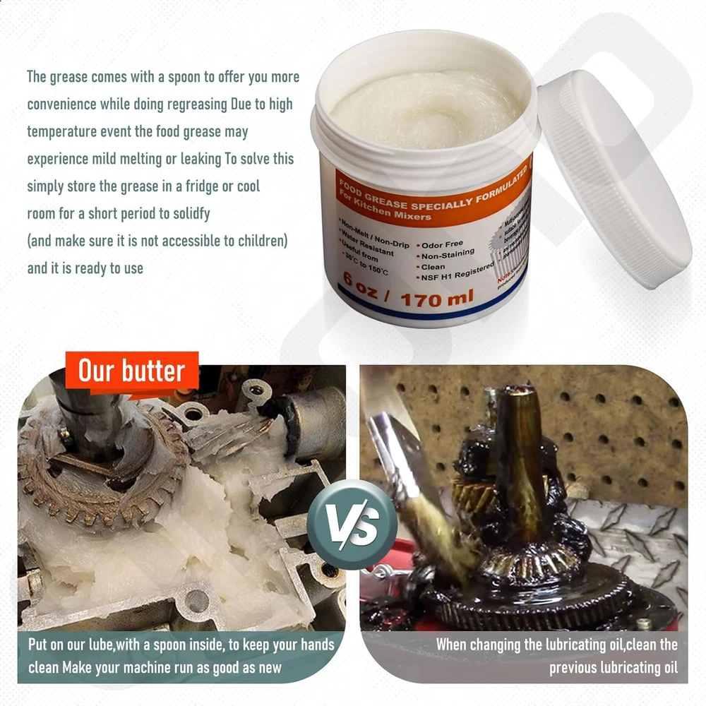 Store New Arrivals Add to Favorite View Feedback Contact 6 Oz Food Grade Grease for Kitchenaid Stand Mixer with 9709511 WP4162324 4162324 Gasket and Spoon Easy to Use Description Upper Temperature Rating 4E+1 Degrees Fahrenheit Brand Ohoho Country of Origin China Recommended Uses For Product Kitchen Package Information Jar Liquid Volume 6 Fluid Ounces Package Dimensions 4.76 x 4.09 x 3.39 inches; 9.14 ounces Manufacturer Ohoho VERSATILE USE: This food grade grease provides lubrication for your kitchen appliances including stand mixers and other food processing machines.The large 6 oz. capacity is ideal for machines that require more grease. For smaller machines, be sure to replace it once and use the extra next time This food grade grease has the lubricating properties to get your kitchen mixer and other appliances that need to be re-lubricated running smoothly and quietly again, which can increase efficiency Ideal for Regular Maintenance: This product helps to extend the life of your machine by not degrading its performance compared to greases that can turn black, leak and damage gears after years of use. This is an ideal product for regular maintenance, protecting internal parts such as gears and keeping the machine in top working order We offer price and guaranteed quality. So you can buy with confidence and no need to hesitate when you want to buy a second one to keep your kitchen utensils in good condition The grease comes with a spoon for extra convenience when oiling Due to high temperature event, the food grease may experience mild melting. To solve this, simply store the grease in a fridge or cool room for a short period to solidfy (and make sure it is not accessible to children) and it is ready to use Product Description VERSATILE USE: This food grade grease provides lubrication for your kitchen appliances including stand mixers and other food processing machines.The large 6 oz. capacity is ideal for machines that require more grease. For smaller machines, be sure to replace it once and use the extra next time This food grade grease has the lubricating properties to get your kitchen mixer and other appliances that need to be re-lubricated running smoothly and quietly again, which can increase efficiency Ideal for Regular Maintenance: This product helps to extend the life of your machine by not degrading its performance compared to greases that can turn black, leak and damage gears after years of use. This is an ideal product for regular maintenance, protecting internal parts such as gears and keeping the machine in top working order The grease comes with a spoon for extra convenience when oiling Due to high temperature event, the food grease may experience mild melting. To solve this, simply store the grease in a fridge or cool room for a short period to solidfy (and make sure it is not accessible to children) and it is ready to use ABOUT US We offer the best prices around on high quality products. Our E-store includes media such as books, movies, music and games while offering electronics, toys, sporting apparel, clothing, tools, general home, garden items and more. SHIPPING We are always working hard to ensure your package arrives as soon as possible. Please understand that some factors like weather, high postal traffic, and the performance of shipping companies are outside of our control. We offer free shipping to the lower 48 states and ship within 2 business days of payment, usually sooner. We do not accept P.O. Boxes. Please provide a physical address. RETURNS We offer a 30-Day Return Policy on items which you are not completely satisfied with. You have the option for a full-refund or an exchange of the item. No returns are available on items shipped outside of the USA. PAYMENT We accept PayPal. CONTACT US This page content is yet to come Please ad us to your favorite seller and visit again later Thank You CUSTOMER SATISFACTION We try our very best to make sure every customer is completely satisfied. If there's a problem, message us! We're happy to help.