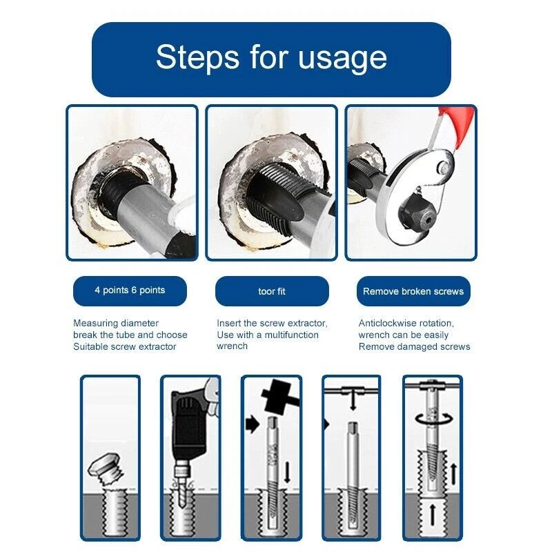 Damaged Screw Extractor Get It Out Drill Bits 6 PCS Tool Set Broken Bolt Remover Premium Material: Our screw extractor is made of high quality bearing steel, surface hardening, making it more durable. With box packaging: 6 sets of screw extractors, size: 1 # / 2 # / 3 # / 4 # / 5 # / 6 #, different sizes can perfectly remove all damage, broken, rusty thread head And bolts. Our screw extract is equipped with a significant red storage box. You don't need to worry about the next time you don't find a single extractor. Simply put the box in a fixed toolbox. Widely used: It can be widely used in home maintenance, cars or mechanical maintenance. It applies to most of the broken bricks stored in the market, and has been applied to most electric hand-rotated universal chucks. Save money: Practical screwdrivers and extraction kits that can be placed in the garage or toolbox. It is a must-have repair tool for each family. When the family needs to fix some things, it can be used directly instead of going to an expensive repair shop. Warm Tips: It is recommended that you use electric manual rotation during use, and then perform at a low speed during use until the break screw is removed. Specifications: Name: Broken Bolt Extractor Material: High Carbon Steel Purchase Options: 6Pcs Applicable To: Removing All Kinds Of Broken Head Bolts And Screws; For Home, Office, Etc. Maintenance. Package Includes: 6Pcs:1#/2#/3#/4#/5#/6#