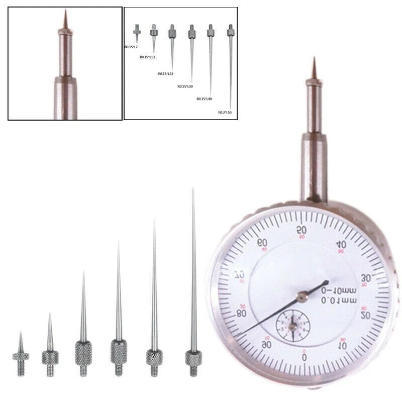 Product Description Features : * brand new and high quality * Made of high q uality material, and practical to use * All threaded shank M2.5 (effective length does not include threaded shank and knurled handle) * High strength and hardness. Easy to use. * Suitable for interchangeable measuring tools such as dial gauge height dial gauge test indicator depth gauge. * Suitable for detecting the bottom of a groove or hole. Specification: * Material: High Speed Steel * Radius: R0.15mm (0.0059 inches), effective length: 7mm (0.2756 inches) * Radius: R0.15mm (0.0059 inches), effective length: 13mm (0.5118 inches) * Radius: R0.15mm (0.0059 inches), effective length: 22mm (0.8661 inches) * Radius: R0.15mm (0.0059 inches), effective length: 30mm (1.1811 inches) * Radius: R0.15mm (0.0059 inches), effective length: 40mm (1.5748 inches) * Radius: R0.2mm (0.0078 inches), effective length: 50mm (1.9685 inches) Package Contents: 6*Indicator Turntables(Dial NOT Included) Note: 1.The real color of the item may be slightly different from the pictures shown on website caused by many factors such as brightness of your monitor and light brightness. 2.Please allow slight manual measurement deviation for the data. Payment Payment must be completed within 5 days. If you have any problems about payment, please contact us via ebay message. Delivery details We only ship to confirmed ebay Order addresses. Please comfirm that your Order address is in line with your shipping address. Please kindly note that the c ombined shipping is not provided because the shipping fee is calculated by weight. Also, the each additional item means exactly the the same color and size. It takes about 7 -15 working days to US; about 10-30 working days to other countries. Transit time may be a little delayed because of the bad weather and customs inspection . If you do not receive your item within 30 working days since payment finished, please contact us immediately for further assistance. Contact us We strive for 100% customer satisfaction! Positive Feedback is very important to us. If you have any questions, p lease feel free to contact us via "Ask seller a question" . We will reply your email within 24 working hours.