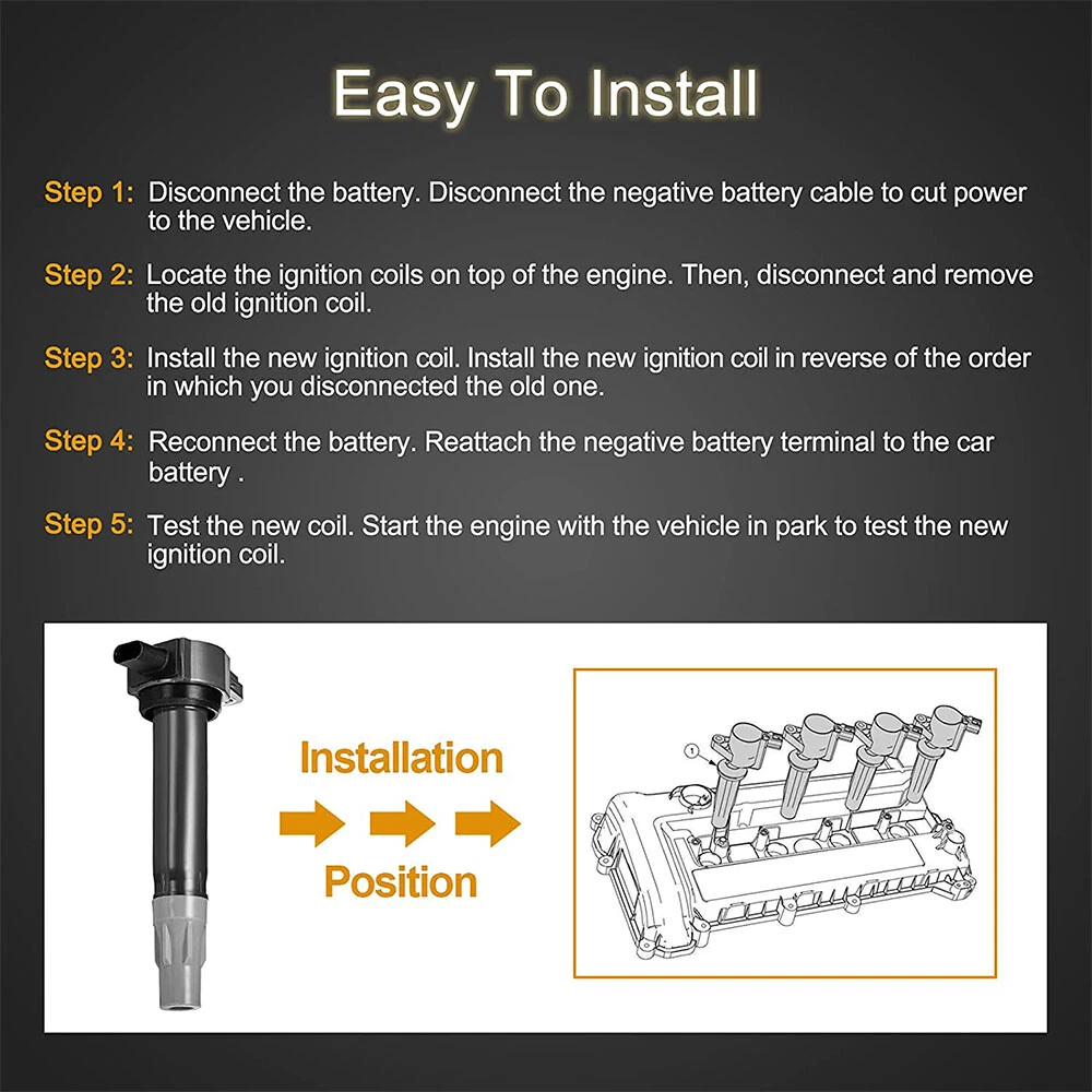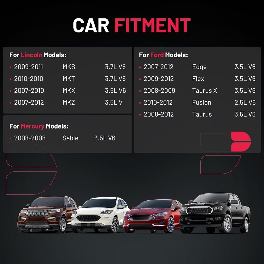 Specifications Brand New Ignition Coil Built to strict quality control standards. Ready to use, Direct Replacement. Connector: 2 pins Connection gender: female Terminal gender: male Terminal type: blade Voltage: 12V Part Numbers: CY01-18-100A, DG520, UF553, 50106, 5C1652, 5C1743, 5C1652, E1053, E1095, 52-1888, IC633 Fitment: 2007 Mazda CX-9 3.5L V6 2007-2016 Ford Edge 3.5L V6 2011-2017 Ford Explorer 3.5L V6 2015-2017 Ford F-150 3.5L V6 2009-2017 Ford Flex 3.5L V6 2010-2012 Ford Fusion 3.5L V6 2007-2010 Lincoln MKX 3.5L V6 2007-2012 Lincoln MKZ 3.5L V6 2013-2017 Ford Police Interceptor Sedan 3.5L V6 2008-2009 Mercury Sable 3.5L V6 2008-2016 Ford Taurus 3.5L V6 2008-2009 Ford Taurus X 3.5L V6 2009-2013 Mazda 6 3.7L V6 2008-2015 Mazda CX-9 3.7L V6 2011-2014 Ford Edge 3.7L V6 2011-2014 Ford F-150 3.7L V6 2009-2016 Lincoln MKS 3.7L V6 2010-2016 Lincoln MKT 3.7L V6 2011-2016 Lincoln MKX 3.7L V6 2013-2016 Lincoln MKZ 3.7L V6 2011-2016 Ford Mustang 3.7L V6 2013-2017 Ford Police Interceptor Sedan 3.7L V6 2013-2017 Ford Police Interceptor Utility 3.7L V6 2015-2017 Ford Transit 3.7L V6 2015-2018 Ford Transit-150 3.7L V6 2015-2018 Ford Transit-250 3.7L V6 2015-2018 Ford Transit-350 3.7L V6 2015-2018 Ford Transit-350 HD 3.7L V6 Package included: 6X Ignition Coils & 6X Spark Plug Note : To confirm that this part fits your vehicle, enter your vehicle's Year, Make, Model, Trim and Engine in the Compatibility Table. Also review the notes section in the compatibility chart for additional specifications about this part.if you are not sure, please contact us.