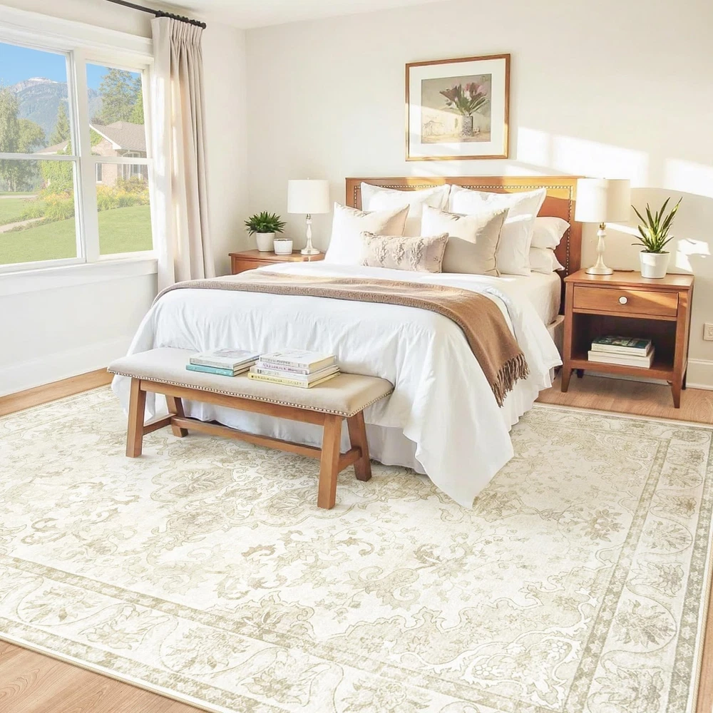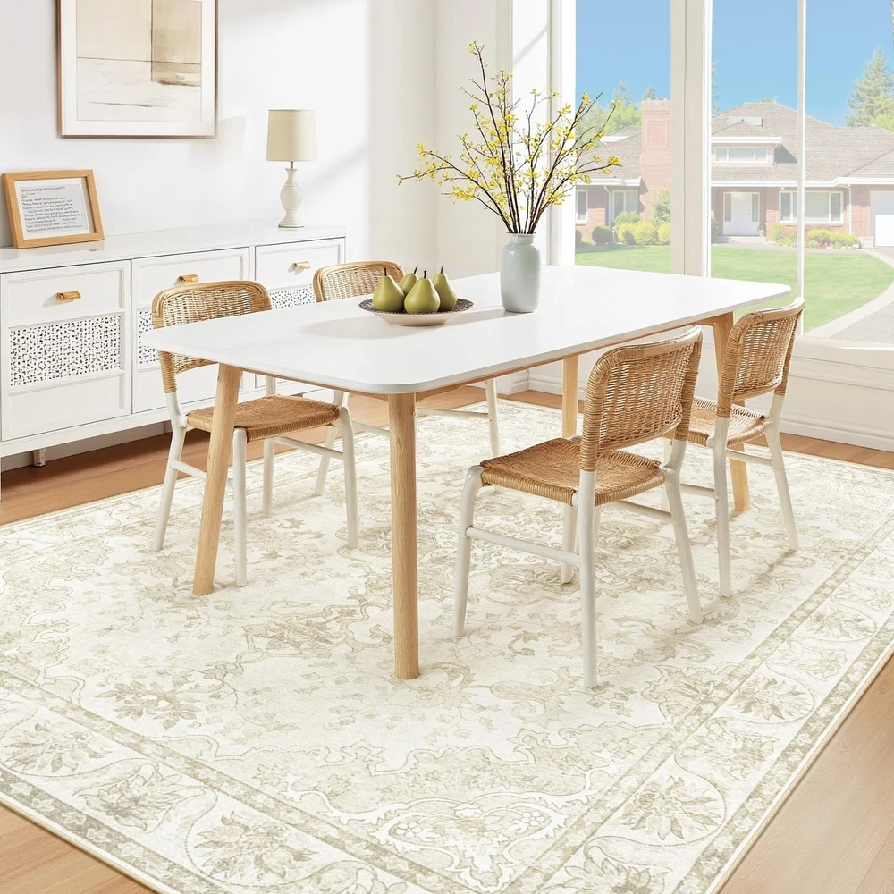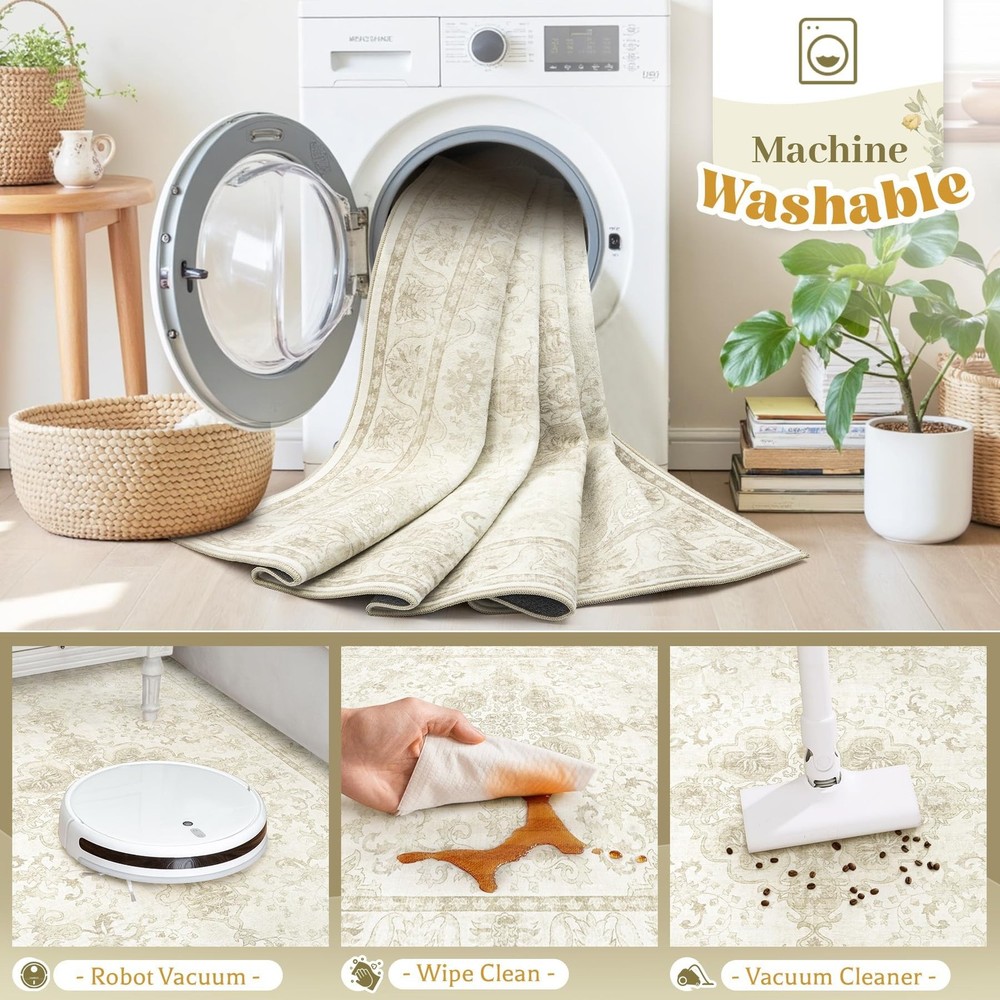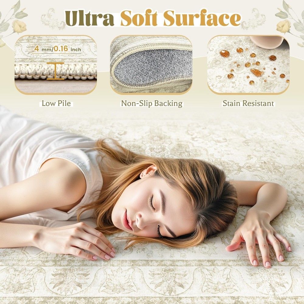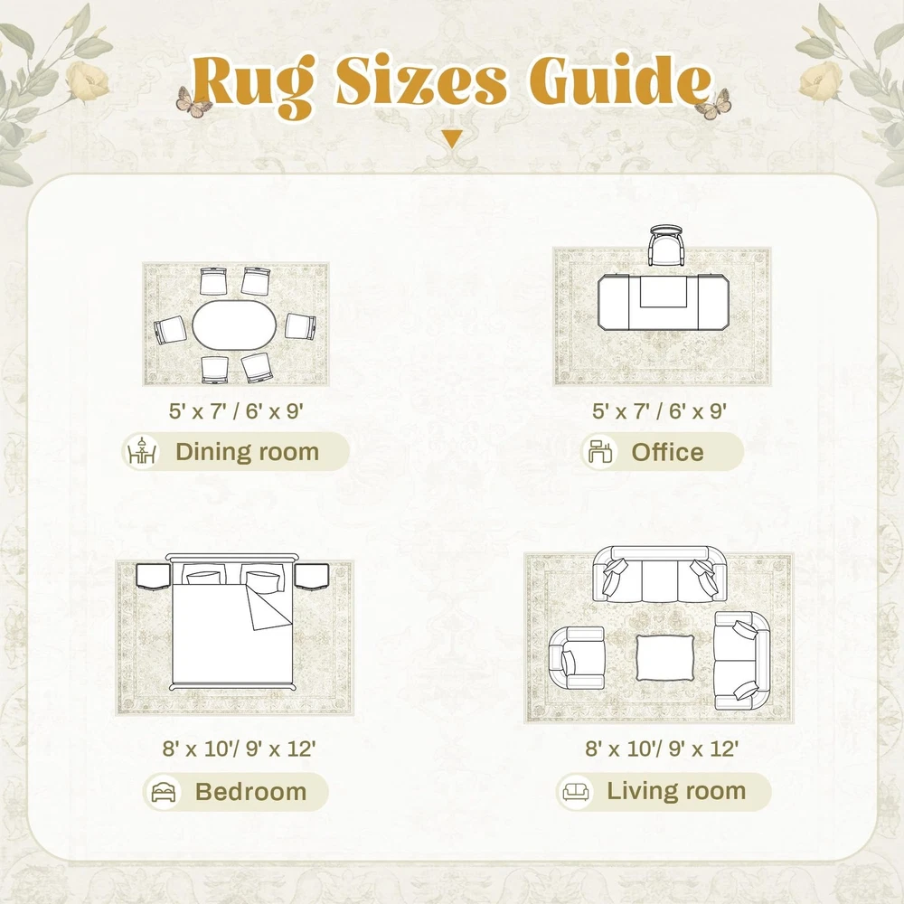 6x9 Area Rugs for Living Room: Washable Vintage Floral Rug Soft Non-Slip Rugs Stain Resistant Boho Print Pattern Medallion Indoor Carpet for Bedroom Nursery Dining Room Office (Beige, 6'x9') Product Details Color: Beige Size: 6' x 9' (Rectangular) Brand: MXSANYOO MPN: MM-ZZF8022A-Beige-6x9 UPC: Does not apply EAN: Does not apply Brand: MXSANYOO Size: 6' x 9' (Rectangular) Material: Polyester Weave Type: Flat Woven Pile Height: Low Pile Brand: MXSANYOO Size: 6' x 9' (Rectangular) Material: Polyester Weave Type: Flat Woven Pile Height: Low Pile Construction Type: Machine Made Back Material Type: Rubber Color: Beige Indoor/Outdoor Usage: Indoor Theme: Vintage Is Stain Resistant: Yes Product Care Instructions: Machine Wash Pattern: Floral Shape: Rectangular Special Feature: Foldable, Non Slip, Stain Resistant, Super Soft, Washable Room Type: Bedroom, Dining Room, Living Room, Nursery Room, Study Room Product Dimensions: 108"L x 72"W Rug Form Type: Area Rug Style: Vintage Item Thickness: 0.16 Inches Model Name: MM-ZZF8022A-Beige-6x9 Item Weight: 9.09 pounds Manufacturer: mxsanyoo Item model number: MM-ZZF8022A-Beige-6x9 Date First Available: October 29, 2025 Easy to Clean Rug: Our washable rugs 6x9 feature a water-resistant and stain-resistant surface. Daily spills and debris can be easily cleaned by wiping or vacuuming. For deep cleaning, these area rugs can be machine washed. Kids & Pets Friendly Rug: The living room rug is made of soft material, providing a comfortable touch when stepped on barefoot. Low pile area rug is suitable for families with children and pets, and it can be easily placed under furniture or indoor areas to prevent tripping risks. Non-Slip Backing Rug: This area rug is equipped with a rubber backing, which can prevent movement in high-traffic areas. When people are playing and running, our bedroom rug can also provide cushioning to ensure their safety. Easy to Fold and Store: The beige rug uses compact folding packaging for easy shipping and storage, slight wrinkles may appear upon opening. Because our third-generation carpet utilizes upgraded high-resilience materials, these creases typically smooth out naturally within 12-24 hours.