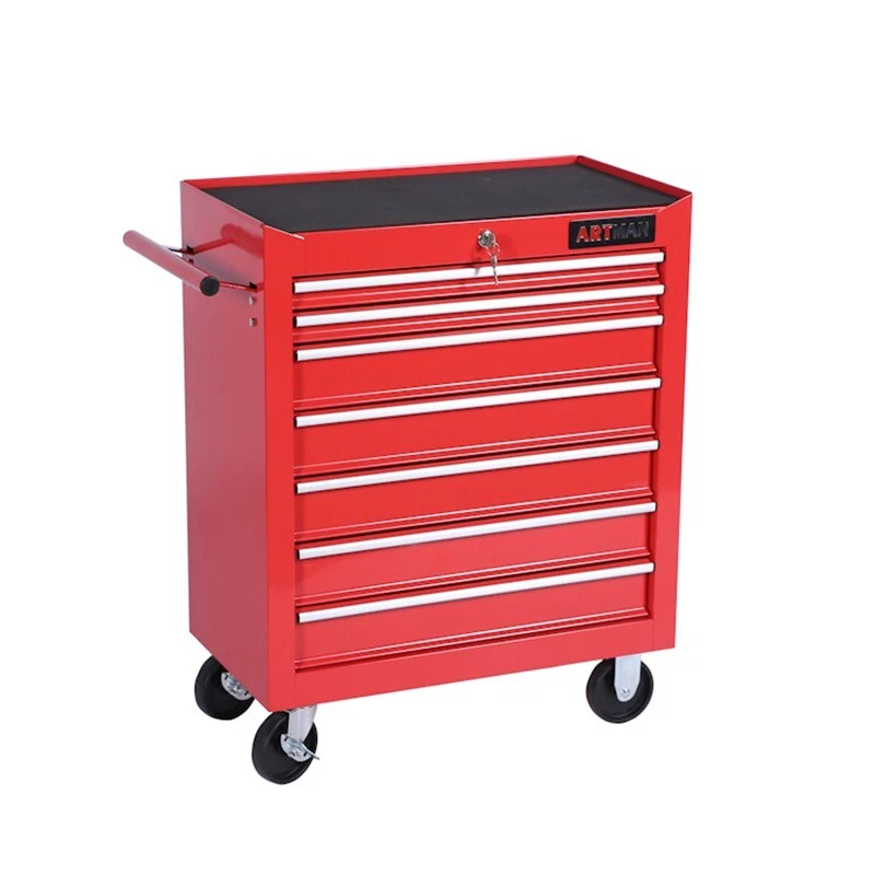 Item Width: 12.9 in gtin13: Does Not Apply UPC: Does Not Apply Material: Steel Finish: Powder Coating Item Weight: 55.11 lb MPN: Does not apply Brand: ARTMAN Item Length: 24.22 in Type: Tool Chest Item Height: 29.9 in Number of Drawers: 7 Country/Region of Manufacture: China Color: Red Features: Lockable, Wheels, With Handle
