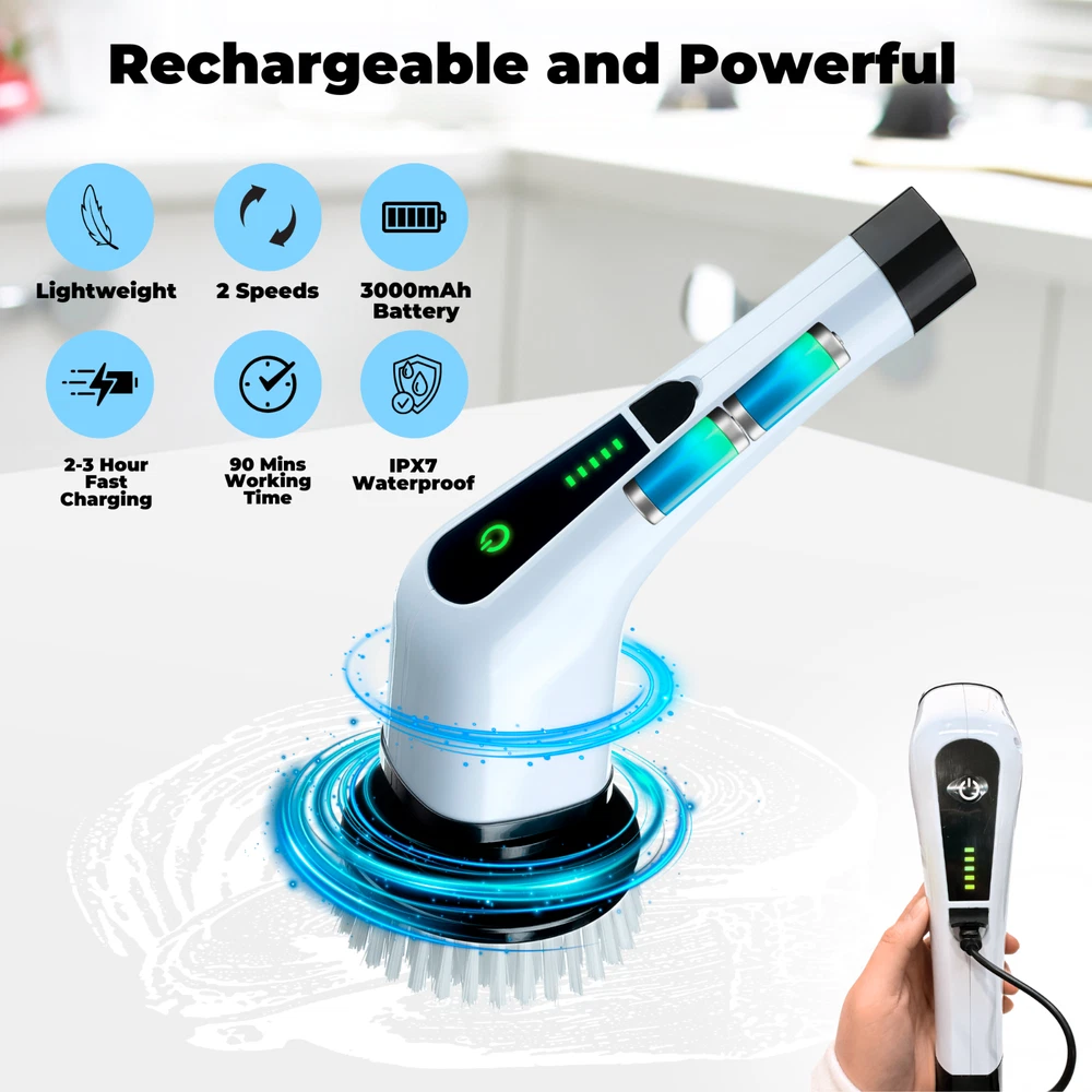 Store Categories Store Categories Other Details Feature: [Home cleaning more easier]– Do you feel tired for home cleaning? This spin scrubber can replace all kinds of cleaning work, It allows you to complete the cleanup work more easily and quickly. [Multifunctional Cleaner] - Includes 7 spin scrubber heads, suitable for cleaning bathroom, bathtub, shower, countertop, stove, sink, glass, cooking bench, tile, tub and so on. [Convenient & Effective Cleaning Tools] - The portable cleaning brush works by power with spin speed 300 RPM. Use the power of motion to get a deep clean with less effort. Compared to the traditional hand cleaning way, this new cleaning way is much faster and more efficient, it helps to save your time and energy and give you totally comfortable housework cleaning experience. [Safety & Waterproof ]– It is designed IPX5 waterproof level. So it is 100% safety when you use it for cleaning or washing. [Long Lasting Battery Life] - Powered by 2500mAh rechargeable premium Li-ion battery, the shower scrubber can realize durable working time. Charging 2 hours and work efficiently for 90 minutes. It is enough for daily cleaning. Say Goodbye to Tradutionnl Cleaning Methods Since you can freely choose the length of the handle, there is no need to bend over, spin scrubber is really convenient for people with back pain and arthritis, especially the elderly. In winter, be patient with cold water in the bathroom, so you don’t have to tremble after the shower! Bathroom scrubber electric let the household cleaning to become so easy, you can take a hygienic bath at any time. Easy Cleaning with Strong Torque Brush head rotating speed :300 rpm in low speed and 400 rpm in fast speed. Strong torque up to 60KGS, It's very easy to clean stubborn stains even for sink cleaning. IPX5 Splash-proof Electric scrubber for bathroom is not totally waterproof, so please do not immerse the whole scrubber into the water to wash. Cleaning Tips If you want to clean the brush head, please detach it from the scrubber first, and then rinse it under the water, wipe the scrubber head with a wet cloth. Cleaning the scrubber in a correct way helps extend the lifespan of the scrubber. Fast Charging Electric cleaning brush scrubber with fast charging port, can be charged quickly in 3-4 hours. and Open&close upgraded electric spin scrubber. Specifications: Weight with packaging: 1200g Packing size: 45.2*16*7.2cm Battery capacity: 2500mah Working time: 90 minutes Charging time: 5 hours Material: environmentally friendly ABS Package : 1* Scrubber 2* Extend Rods 8* Brush Heads 1* Wall Charger 1* USB-C Cable 1* User Manual Shipping Policy Payment Method Returns Policy Shipping Policy Once your shipment has been dispatched you will receive an email with your track and trace number, which you can use to follow your shipment’s progress. Some orders are shipped in multiple packages due to their size or weight, in such cases you will receive an individual tracking number for each package. The order will be prepared for dispatch on the day the order was placed, and shipped within one business day. Payment Method 1. We accept PayPal payment only, if you want to buy more than one item from us, please contact us make a offer. 2. Payment should be completed within 4 (Four) days of auction closing. Or unpaid dispute will be filed for closing auction. 3. We will leave a positive feedback immediately after payment is received. We appreciate a positive feedback as much as you do. If for some reason there is any issue with the purchase, please contact us prior to leaving feedback, and we will be glad to work with you to have it resolved. Returns Policy We are sure you will be pleased with your purchase from our eBay Store. However, unfortunately there may be occasions when you will need to return items to us. 1. Non Receipt Of Items If you have not received your items you must let us know within 7 days from the estimated delivery date. Once we know you have not received your item we will investigate the matter fully both internally and with our carriers. Unfortunately we cannot investigate non receipt deliveries after this time has elapsed. Investigations into lost parcels can take up to 14 days. Refunds or replacements will not be issued until the investigation is complete. Orders sent by Royal Mail: We do advise that the majority of orders are received within 1-3 working days of dispatch. However, for Royal Mail to class the order as lost in the post we have to allow them 15 working days to deliver before we can arrange a replacement or a refund [this is a Royal Mail rule]. Unfortunately, once the order has been dispatched it is then the responsibility of Royal Mail to deliver your item, and as much as we would like to resolve this for you today we do have to allow them this timescale to deliver. If you still haven't received it by the 15th working day, please contact us via eBay & we will investigate the matter for you. 2. Product purchased for USE outside the UK All our products are warrantied and designed for use within the UK. E.g. UK 3 Pin plug and 240v Supplies where applicable. Product warranties are also only valid in the UK and if there a fault with your product this must be sent back to our UK head office for refund or replacement. 3. Returns from outside the UK If you purchase an item from our UK store then the return process is slightly different as we are based in the UK and you are taking the option to purchase from our UK Store. With this in mind any return to would be at the cost of the buyer under all circumstances. 4. Items Damaged in Transit If your item is damaged in transit, we ask that you report it to us within 3 working days (24 hours for our business customers). If the items are visibly damaged on receipt, please take some photos or a video to us show that?(the item damaged, outer packing damaged, outer packing shipping label and S&M bar code). We will try our best to help you solve this problem. have
