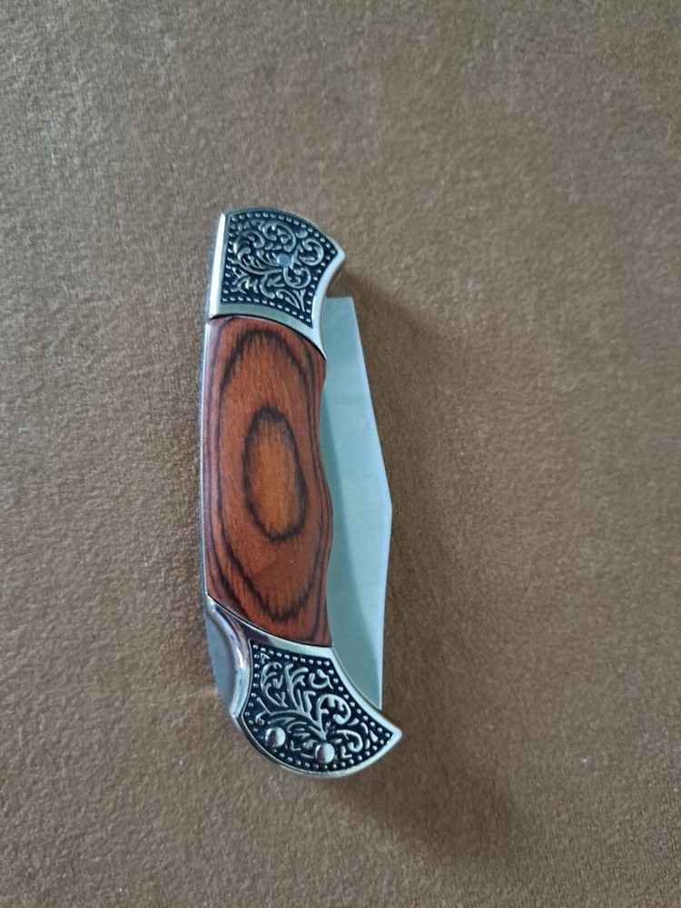 Introducing a stunning new pocket knife with a 7-inch blade made from high-quality stainless steel. The handle is crafted from beautiful wood, making it both stylish and comfortable to hold. Featuring one blade, this classic model is perfect for collectors and everyday use. The rich brown color adds a touch of elegance to the design. Ideal for a variety of uses, this pocket knife is a must-have for any blade enthusiast.