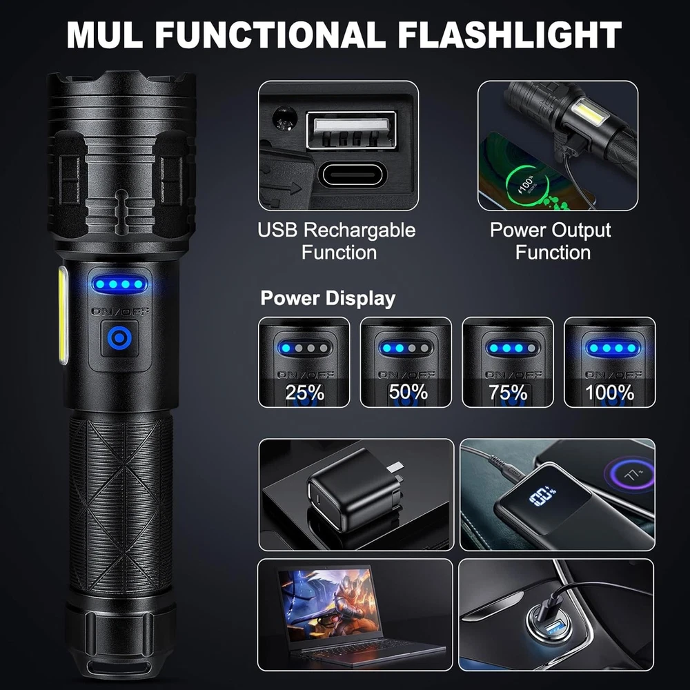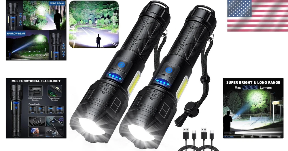7 Mode Waterproof Flashlight Set - 900000 Lumens Ultra Bright, USB Rechargeable ‹ › ‹ › ‹ › ‹ › ‹ › ‹ › ‹ › ‹ › ‹ › ‹ › ‹ › 7 Mode Waterproof Flashlight Set - 900000 Lumens Ultra Bright, USB Rechargeable Features: Unmatched Brightness: Equipped with Germany-imported Top G2308 LED chips, delivering a staggering 900000 lumens at 8000K cool white. This flashlight is 550% brighter than standard car lights, illuminating up to 205 square meters with ease. Impressive Battery Life: Comes with a high-quality rechargeable battery providing up to 12 hours of powerful, non-diminishing brightness. The four-speed LED power indicator allows real-time monitoring of remaining power. Convenient USB Charging: Features a Type C port and includes a USB cable for versatile charging options with laptops, wall sockets, car chargers, and power banks. 7 Lighting Modes: Easily switch between 3 primary modes (High/Low/Strobe) and 4 COB modes (High/Low/Red/Red Flash) with a simple press of the button. Adjust head for wide and narrow beams effortlessly. Built to Last: Crafted from hard anodizing aircraft grade aluminum alloy with a rugged finish, designed to withstand pressure and tough environments. Water Resistant: IPX6 waterproof design allows adaptability in extreme weather conditions, perfect for camping, hiking, cycling, and emergency situations. Exceptional Value: Includes two flashlights, removable rechargeable batteries, charging cables, adjustable lanyards, and battery casings—all with a user manual. Why Choose Our Flashlight Set? Are you ready to light up your adventures with unparalleled clarity and reliability? The 7 Mode Waterproof Flashlight Set not only delivers an astounding luminosity but also offers prolonged usage for those late-night excursions or unexpected emergencies. The sturdy build ensures durability against the elements and rigorous handling, while the USB charging adaptability adds convenience to your lifestyle. Whether you’re camping under the stars, managing a power outage, or simply wishing to illuminate a pathway, trust this versatile powerhouse to light your way. Experience the perfect blend of innovation, quality, and value—order your 7 Mode Waterproof Flashlight Set today! Shipping Free & Fast Shipping - We offer free shipping to most of the USA with a normal delivery time of 3-7 days. However, due to the current situation, additional delivery time (up to 3 weeks) may be required for some items. Alternative Carriers - We may use alternative carriers (e.g. USPS, FedEx, UPS, etc.) to ensure your package arrives safely and on time. Due to the use of multiple carriers, we are unable to provide a tracking number automatically. Handling Time - Orders are processed and shipped within 1-2 business days of receiving cleared payment. Shipping Restrictions - Shipping to Alaska, Hawaii, Puerto Rico, Guam, and other US territories may incur shipping charges or delivery restrictions. Please contact us before ordering, or your order can be refunded/cancelled. State Restrictions - There may be restrictions based on your state of purchase. For example, certain items may not be shipped to California due to state regulations. Contact for Tracking Updates - If you require tracking updates or have any concerns about the delivery of your order, please feel free to contact us, and we will be happy to assist you. Return 30-Day Hassle-Free Returns - We want you to be completely satisfied with your purchase. If you are not, you can return the item within 30 days of receiving it for a full refund or exchange. Easy Return Process - To start a return, simply contact us and we will provide you with a prepaid return shipping label and detailed instructions. Restocking Fee - There are no restocking fees for returns. However, the buyer is responsible for return shipping costs if the return is not due to a seller's error. Refund Processing Time - Refunds will be processed within 5 business days of receiving the returned item in its original condition. Payment We accept all major credit cards, PayPal, and Apple Pay for your convenience. Your payment information is secure and encrypted to ensure a safe and seamless transaction. Please complete your payment within 3 days of purchase to avoid any delays in shipping. Feedback Your feedback is extremely important to us. We strive to provide the best products and customer service possible. If you are satisfied with your purchase, please take a moment to leave us a positive review. If you have any concerns or issues with your order, please contact us before leaving negative feedback. We are committed to resolving any problems and ensuring your satisfaction. Contact Us If you have any questions or concerns, please feel free to reach out to our customer support team. You can contact us through the eBay messaging system. We are available Monday to Friday, 9:00 am to 5:00 pm EST, and we will do our best to respond to your inquiry within 24 hours. Thank you for supporting our small family business! UPC: Not Set Voltage: Rechargeable LED Flashlights Item Height: Rechargeable LED Flashlights Item Length: Rechargeable LED Flashlights Item Weight: 1.41 lb Item Width: Not Set Model: Not Set Lumens: 900000 lm Number of LEDs: 1 Unit Quantity: 2 Features: Rechargeable,Waterproof,7 Modes,Adjustable,High Power,USB Charging,Heavy Duty Build,Non-slip Handle,Real-time Power Display Material: Aluminum Brand: Unbranded Type: Flashlight Lighting Technology: LED Power Source: Battery Operating Range: 205 m MPN: Not Set Battery Technology: NiMH Number of Batteries: 2 Color: Black Country/Region of Manufacture: Not Set IP Rating: IPX6 Operating Time: More Than 10 Hours Number of Lights: 1-3 Unit Type: lb Personalize: Not Set