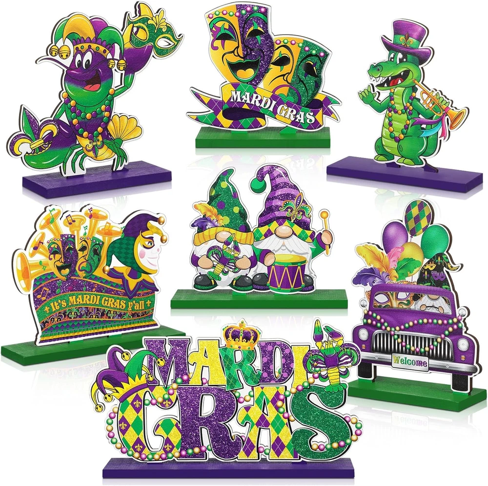 Store New Arrivals Add to Favorite View Feedback Contact Fast deliveries to the customer's home Quality customer service John Make the customers happy! 7 Pcs Mardi Gras Table Decorations Wooden Mardi Gras Centerpieces Mask Alligator Crayfish Truck Gnomes Carnival Float Table Sign for Mardi Gras Party Masquerade Desk Shelf Table Decor Description Mardi Gras Table Signs: You will get 7 pieces wooden mardi gras table centerpieces in 7 different design. Each mardi gras decoration comes with a base, and the rich styles are enough for you to create a joyful party atmosphere Attractive Design: These mardi gras tray signs are mainly green, purple and yellow. They include many mardi gras elements like mask, mardi gras float, comedy tragedy face, MARDI GRAS letters and more. The bright colors and exquisite designs make your party more colorful Wooden Material: Our mardi gras table decor are made of durable wood material with sturdy structure and will not fall apart easily. The sturdy wooden base allows them to stand alone and stably on your desk. They can accompany you for a long time Suitable Size: Each mardi gras masquerade table decorations has different sizes, ranging from 10.7cm/4.21 inches to 22cm/8.66 inches in length, and from 9.9cm/3.9 inches to 13.3cm/5.24 inches in height. The right size makes them very cute, not taking up too much space, and still visible from a distance Wide Application: Our mardi gras themed centerpieces can easily put on table, counter, fireplace, desk, tray and any flat place, which are very suitable for mardi gras party, carnival masquerade party, birthday party etc Feature: Table decorations for mardi gras: Celebrate the holidays in style with our premium mardi gras table signs. Cheerful colors and exquisite designs will surely add a lot of happy atmosphere to your party. Wide Application Whether you use them as mardi gras table decorations or place them around the room to add a little extra sparkle, these decorations are sure to impress. You can also give these table decorations as gifts to your friend and colleagues who are going to hold a mardi gras party. The cute and delicate design makes them suitable for various environments, such as home, restaurant, office, etc. Basic information: Quantity: 7 Material: wooden Color: green, purple, yellow Package include: 7 x Mardi gras wooden table decorations Notes: Manual measurement, there may be slight differences in size. Due to the screen display, the color of the item may differ slightly from the picture. Item model number MIN--2154 Product Dimensions 12.01 x 10.04 x 0.59 inches; 12.64 ounces Country of Origin China ABOUT US We offer the best prices around on high quality products. Our E-store includes media such as books, movies, music and games while offering electronics, toys, sporting apparel, clothing, tools, general home, garden items and more. SHIPPING We are always working hard to ensure your package arrives as soon as possible. Please understand that some factors like weather, high postal traffic, and the performance of shipping companies are outside of our control. We offer free shipping to the lower 48 states and ship within 2 business days of payment, usually sooner. We do not accept P.O. Boxes. Please provide a physical address. For shipping outside of the continental USA, we only use eBay's Global Shipping Program. The item is shipped to KY and then sent to the rest of the world. International customers are responsible for all duties and taxes. Continue to 'check out' to calculate costs for shipping the item to your country. Messages regarding eBay's Global Shipping Program MUST be directed at eBay EXCLUSIVELY. RETURNS We offer a 30-Day Return Policy on items in which you are not completely satisfied with. You have the option of a full-refund or an exchange of the item. No returns are available on items shipped outside of the USA PAYMENT We accept PayPal. CONTACT US This page content is yet to come Please ad us to your favorite seller and visit again later Thank You CUSTOMER SATISFACTION We try our very best to make sure every customer is completely satisfied. If there's a problem, message us! We're happy to help. WE ACCEPT