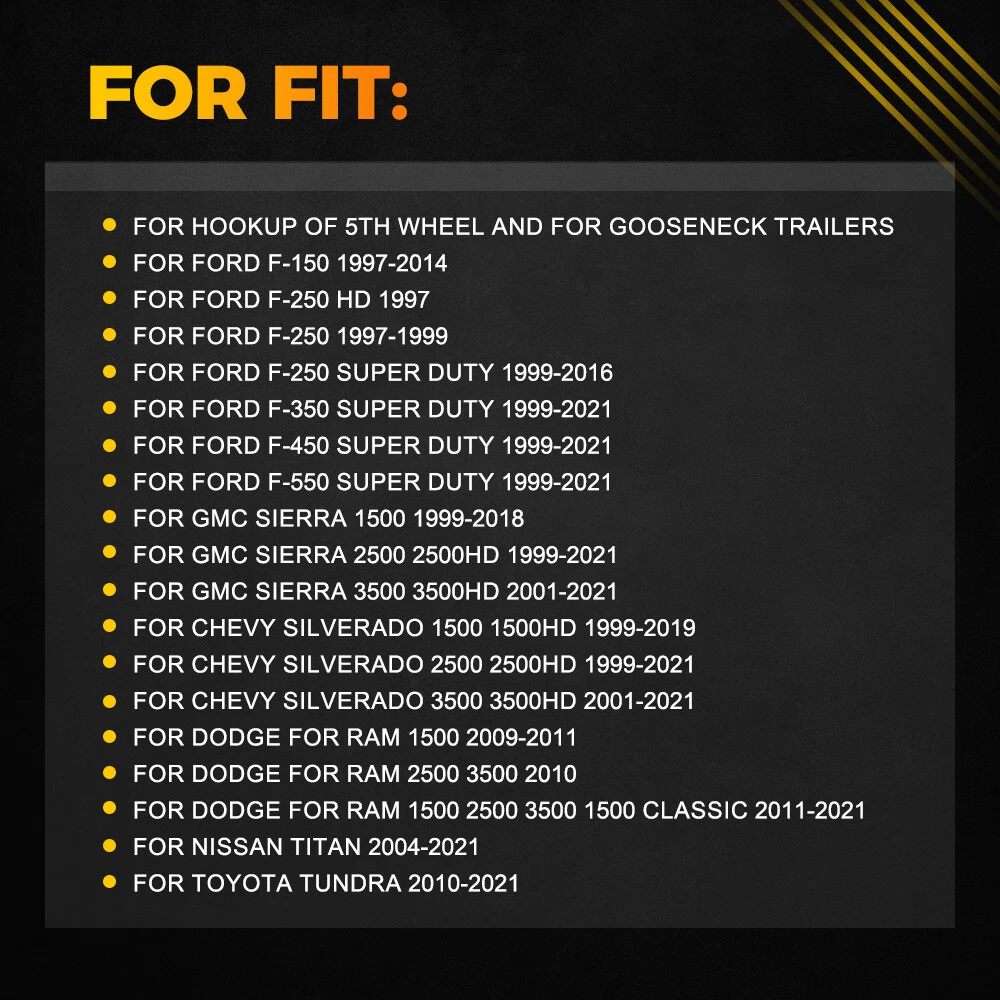 Fits for: For Hookup of 5th wheel and for Gooseneck trailers For Ford F-150 1997-2014 For Ford F-250 HD 1997 For Ford F-250 1997-1999 For Ford F-250 Super Duty 1999-2016 For Ford F-350 Super Duty 1999-2021 For Ford F-450 Super Duty 1999-2021 For Ford F-550 Super Duty 1999-2021 For GMC Sierra 1500 1999-2018 For GMC Sierra 2500 2500HD 1999-2021 For GMC Sierra 3500 3500HD 2001-2021 For Chevy Silverado 1500 1500HD 1999-2019 For Chevy Silverado 2500 2500HD 1999-2021 For Chevy Silverado 3500 3500HD 2001-2021 For Dodge for RAM 1500 2009-2011 For Dodge for RAM 2500 3500 2010 For Dodge for Ram 1500 2500 3500 1500 Classic 2011-2021 7 Pin 7 Way Trailer Wiring Harness Extension Connectors Truck Bed RV Wiring Plug Fits for: For Hookup of 5th wheel and for Gooseneck trailers For Ford F-150 1997-2014 For Ford F-250 HD 1997 For Ford F-250 1997-1999 For Ford F-250 Super Duty 1999-2016 For Ford F-350 Super Duty 1999-2021 For Ford F-450 Super Duty 1999-2021 For Ford F-550 Super Duty 1999-2021 For GMC Sierra 1500 1999-2018 For GMC Sierra 2500 2500HD 1999-2021 For GMC Sierra 3500 3500HD 2001-2021 For Chevy Silverado 1500 1500HD 1999-2019 For Chevy Silverado 2500 2500HD 1999-2021 For Chevy Silverado 3500 3500HD 2001-2021 For Dodge for RAM 1500 2009-2011 For Dodge for RAM 2500 3500 2010 For Dodge for Ram 1500 2500 3500 1500 Classic 2011-2021 For Nissan Titan 2004-2021 For Toyota Tundra 2010-2021 Specifications: OE:56070 Material:Plastic, Steel Pin: 7 Drilling hole size: 2-1/8" Features: *Superior material Made of durable pure copper with higher electrical conductivity and oxidation resistance to ensure its long service life. *Well connected All connectors and wires are completely sealed and weatherproof , and there is a dust cover to protect the connection points. *Sturdy Adopts solid plastic shell to maintain its flexibility and stable performance. *All tested before shipment All products were tested for performance and to ensure the accurate parameter for your vehicle. *Warm notice Please double-check the part number and models in the description to guarantee it fits your vehicle before ordering. Packaging include: 1x 7 Pin Trailer Wiring Harness with Connectors 8x Zip Ties 4x Screw Item Specifics Brand AUXITO Type Extension Harness Placement on Vehicle Rear Connector Type Male Features Durable, Long Lifespan, Multipurpose, High Heat Resistant Manufacturer Part Number 56070 OE/OEM Part Number 56070 Number in Pack 1 Electric Socket Type 7 Pin Color Black Manufacturer Warranty 2 Years Fitment Type Direct Replacement Drilling hole size 2-1/8" Terminal Quantity 7 Dimension 210cm/83in Item Length 7FT FAQ ♥ If you have a decoding problem or any other problems, please contact us first, we will help you with it. We will reply you within 24 hours in working days. I'm a new seller, thanks a lot for your trust and convince! I will serve you with all my heart. ♥ Q1: Will this bulb fit my vehicle? A: We can match almost any vehicle to one of our bulb sizes. eBay only lets us include some vehicle fitments per listing, but if your vehicle does not show up on the compatibility table at the top of our listings, welcome you to contact us for free consulation before purchasing a product. Q2: My item has not arrived, what's taking so long? A: Sometimes items take longer than expected, especially if it’s going far or to rural area. Check with your post office to see if your item has been held up. Sometimes Royal Mail will not update a tracking number until it has arrived at its destination. If your item still don't arrive after a few days, let us know so we can double check for you and help solve it asap. Q3: My bulbs won't fit, help! A: Special bulb holder may be required. See if you can take the holder from the stock bulb. If not, let us know. The bulb size may be wrong, double check the item you received with the item you ordered. Do you have an aftermarket lighting housing? These may not be perfectly fitted for aftermarket bulbs and will require some manual modifications. Q4: Neither side lighting up? Both sides flicker, hyper flash, or work inconsistantly. A:Check the light fuses, and then check the ballast plugs to insure correct installation. If this doesn't work, there may be a voltage problem with the vehicle. You probably just need a relay or capacitor. Even though some bulbs are builtin resistors, they may still need a decoder. Payment (1). We gladly accepts payment via PayPal, We will ship your item(s) within 24 hours. (2). Before payment, please keep the consistency of Paypal address and ebay address. (3). Quantity orders are welcome! Returns (1). We offer 60 days free return policy. Please contact us within 60 days from the date you receive your order if you have any issues with the product or want return. Refund will be send after we got your resend package. (2). All returned items should be in the original packaging , return tracking information should be provided . Contact us (1).Negative feedback will not help resolve any problems you have, please contact us via eBay messages before leaving negative feedback , our customer service will make best effort to help you with the issues. (2).We maintain high standards of excellenceand strive for 100% customer satisfaction! Feedback is very important to us. We request that you contact us immediately before you give us neutral or negative feedback, so that we can satisfactorily address your concerns. About us We're professional in car and motorcycle accessories, especially in LED bulbs. We have our own factory and R&D team. Our belief is to sell top quality items that fit your car and serve you with our heart. Anything please feel free to contact us! Our customer service is very responsibility. Come and follow us! DESCRIPTION PAYMENT SHIPPING RETURN POLICY CONTACT US Shop Category Store Home Other Hot Item 5/16" Marine Outboard Boat Motor Fuel Gas Hose Line Assembly with Primer Bulb US USD 20.99 Front Headlight Lamp Filler Molding Trim Panel For Toyota 2012-2015 T