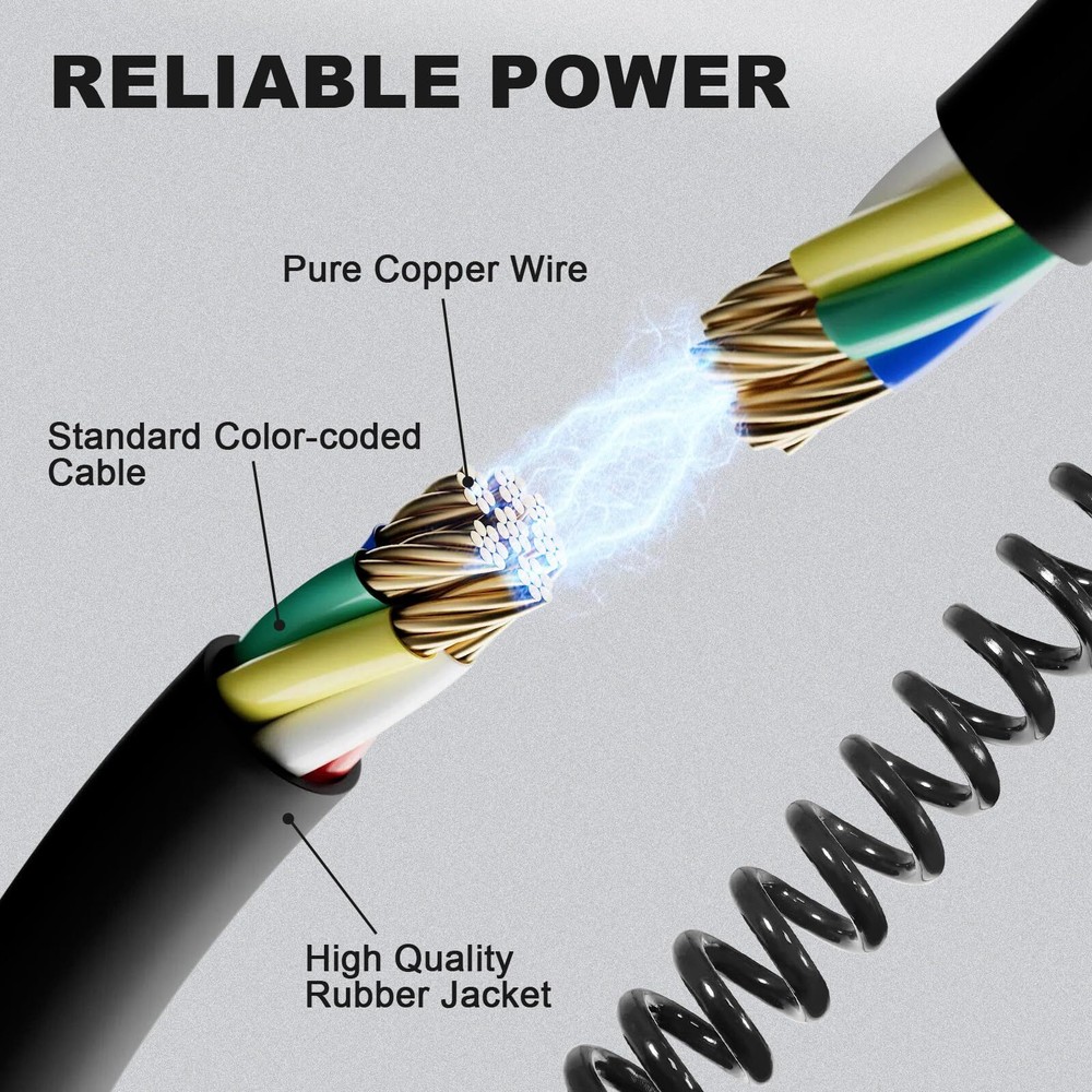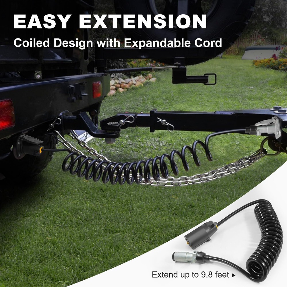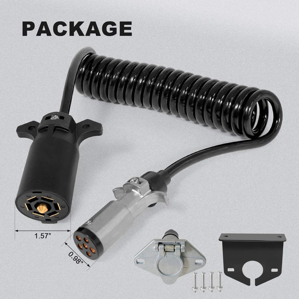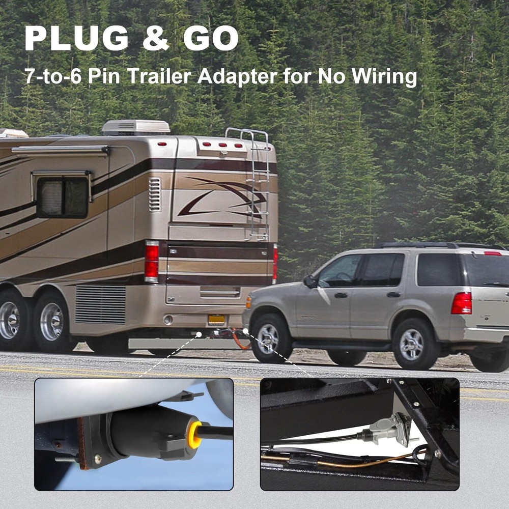 7 Pin to 6 Pin Trailer Adapter, 10 ft 6 Pin to 7 Pin Trailer Light Adapter for RV, Coiled Trailer Cord Tow Cable for Truck, Vehicle, Towing Plug Wire Jumper Cables 7 Way 【Plug & Go】Designed for quick, hassle-free setup, this 7 pin to 6 pin trailer adapter connects directly between your RV's 7 way socket and your towed vehicle's 6 way socket. Get up and running in seconds without any complicated wiring 【Extended Reach】The 7 way coiled cord can extend up to 10 feet, offering flexibility without dragging on the ground. Its coiled design keeps the cable neat while ensuring a secure and stable connection between your trailer and vehicle, compatible with most hitch setups 【Reliable Power】Made from pure copper, this trailer adapter delivers consistent and stable 12V power. The thick rubber jacket ensures excellent waterproof and heat-resistant protection, making it ideal for use in any weather condition, rain or shine 【Standard Connector】This 7pin to 6 pin coiled tow cable effortlessly converts your RV's 7-way connector into a standard 6-way round socket. It allows smooth and reliable operation of your towed vehicle's tail lights, brake lights, turn signals, and auxiliary power, keeping everything perfectly in sync 【One-Year 】We offer one-year , in the process of use, if you encounter any problems, you can contact us, we will solve the problem for you within 24 hours You’re Safer with Us. Every product produced by is built by a professional and experienced 15 person engineering team. Each design takes months or even years to study optical, structural etc., it uses the least energy consumption to achieve the highest efficiency conversion, making the design and product structure perfectly meet the market demand. We are looking forward to work with you to make our market unique and irreplaceable. Packing Including: 1 x 7 Pin to 6 Pin Trailer Adapter 1 x 6 Way Socket Replacement 1 x bracket 2 x Screw If you have any questions, you can contact us and we will reply you within 24 hours. Shipping We offer FREE shipping on all orders! We ship within Three business days of payment, usually sooner. We use a selection of shipping services such as UPS, FedEx, USPS etc. We only ship to the lower 48 states, no APO/FPO addresses or PO Boxes allowed. Local pickups and combined shipping options are not provided at this time. Return You can return a product for up to 30 days from the date you purchased it. Any product you return must be in the same condition you received it and in the original packaging. Please keep the receipt. Payment We accept payment by any of the following methods: PayPal Please pay as soon as possible after winning an auction, as that will allow us to post your item to you sooner! Feedback Customer satisfaction is very important to us. If you have any problem with your order, please contact us and we will do our best to make you satisfied. Contact Us If you have any queries, please contact us via ebay. We usually respond within 24 hours on weekdays. Please visit our eBay store to check out other items for sale! Thank you for shopping at our store.