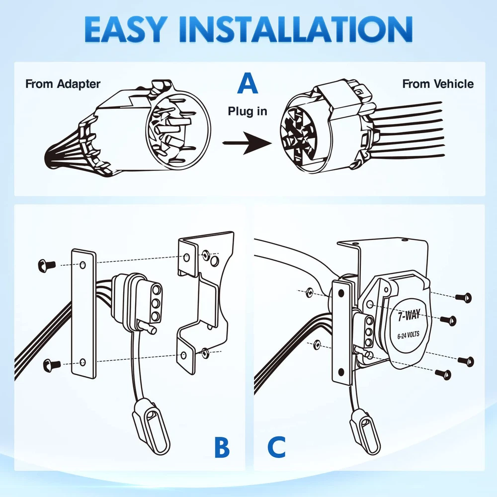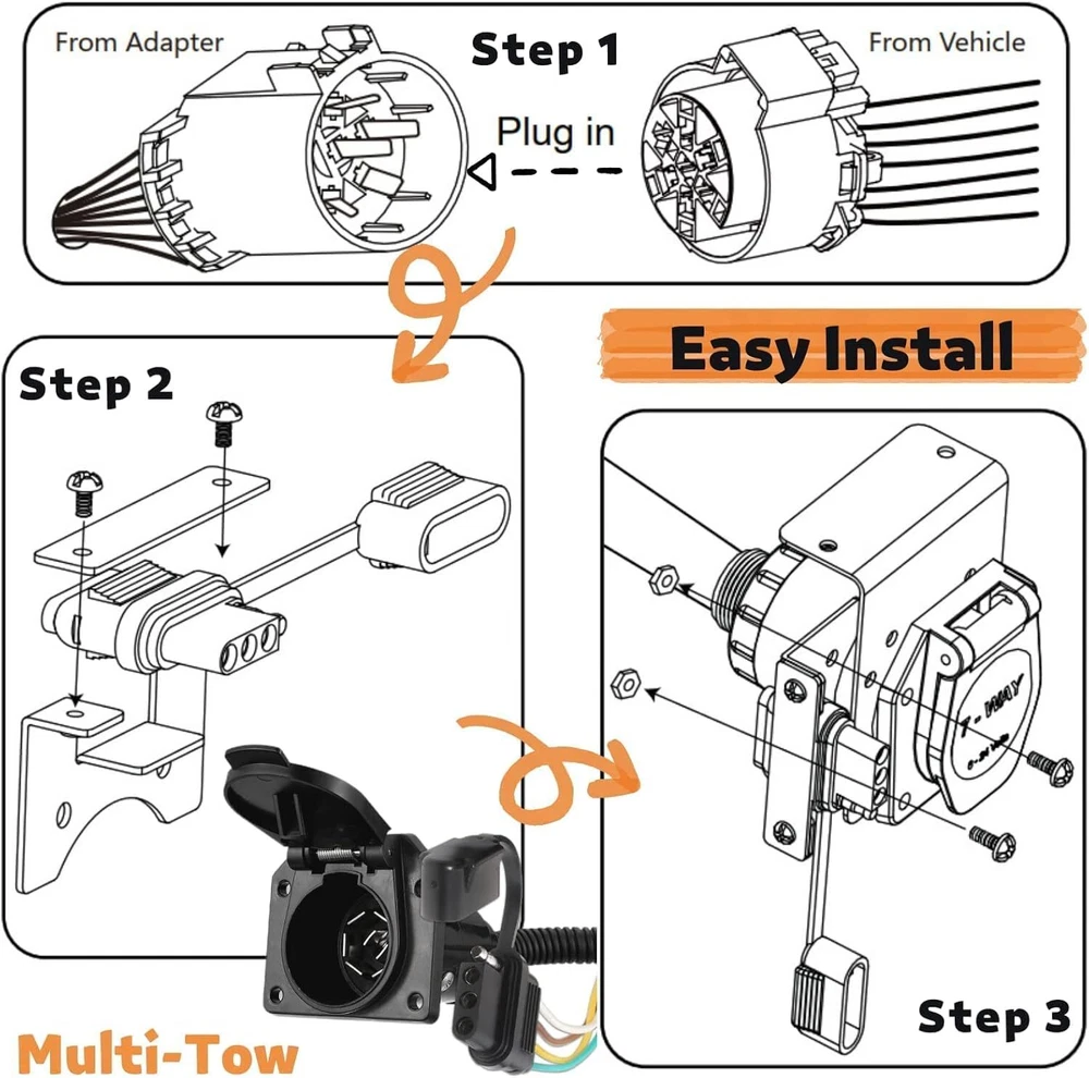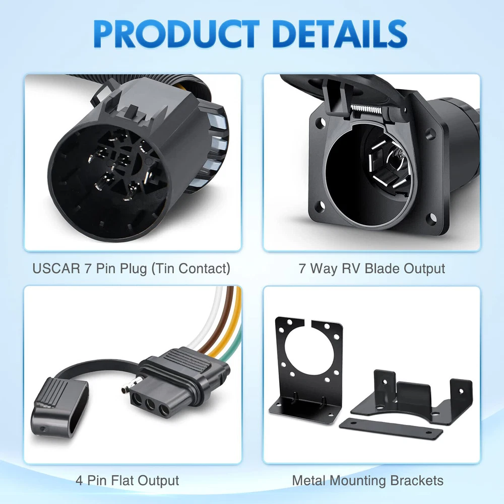 7 Way Trailer Wiring Harness 4 Way Flat Plug Kits For Chevy Silverado 1500 2500 Item Description VERSATILE DESIGN. This dual-output connector is a great upgrade for a variety of vehicles with a USCAR socket. It provides two standard trailer wiring sockets, a 4-way flat and an RV blade 7-way round socket, allowing for versatile towing options.Fit Type: Universal Fit WEATHER-RESISTANT. This two-way trailer wiring socket is designed to outlast weather exposure. The 7-pin socket has a spring-loaded dust cover that keeps the connection points dry and protected when not in use RELIABLE CONNECTION. These trailer wiring sockets come ready to plug into existing vehicle wiring, using the factory USCAR socket. They connect the taillights, brake lights, turn signals, reverse lights, electric trailer brakes and aux power USCAR-SPECIFIC. This trailer wiring harness socket is designed for specific vehicles with an industry-standard USCAR socket DURABLE CONSTRUCTION. For long-lasting use and a reliable connection, the housing of this dual 7-pin and 4-pin trailer wiring socket is made from durable black plastic that will never rust or corrode Metal bracket securely mounts wiring to the vehicle or trailer hitch Features Simple, plug-and-play installation Constructed with SMT circuitry Provides a standard trailer wiring output, usually 4-way or 5-way flat Dust cover included to keep connector clean when not in use Specifications Condition:100% Brand New Warranty: 90 Day Free Return:30 Day Color: Black Fitment 2002-2006 Chevrolet Avalanche 1500 2002-2006 Chevrolet Avalanche 1500 2003-2006 Chevrolet Silverado 1500 HD 2003-2018 Chevrolet Silverado 1500 2007-2007 Chevrolet Silverado 3500 Classic 2019-2019 Chevrolet Silverado 1500 LD 2001-2019 Chevrolet Silverado 2500 HD 2008-2017 Chevrolet Express 2500 2002-2006 Chevrolet Avalanche 2500 2007-2007 Chevrolet Silverado 1500 Classic 2007-2019 Chevrolet Silverado 3500 HD 2008-2014 Chevrolet Express 1500 2008-2019 Chevrolet Colorado 2010-2012 Chevrolet Traverse 1999-2004 Chevrolet Silverado 2500 2000-2006 Chevrolet Tahoe 2000-2013 Chevrolet Suburban 2500 2000-2014 Chevrolet Suburban 1500 2001-2006 Chevrolet Silverado 3500 2002-2009 Chevrolet Trailblazer 2007-2007 Chevrolet Silverado 1500 HD Classic 2007-2013 Chevrolet Avalanche 2015-2017 Chevrolet Express 3500 Please Double-Check that this is compatible with your vehicle. Package Included 1 x USCAR 7 Way Multi Tow Connector Wiring Harness 1 x Moungting Bracket 1 x Installation Accessorie As pictures show FAQ: I purchased by mistake, how do I cancel the order? Please contact us ASAP. If the item has not been shipped out we can cancel the order for you. If the item was shipped out you can refuse the package and wait for the item to return to us. I received your item but it does not fit or is defective Please contact us so we can assist you on the matter. Buy with confidence Our quality is based on meeting the requirements of the manufacturer and improvement them in design problems manufacture. NOTE: (1)It would be highly appreciated if you might contact us first once you have any problems concerning the items. And you can expect all the issues would be resolved ASAP! (2)Please let us know before you send us the neutral/negative feedback that wont help to finish the issues. And I will definitely try my best to provide the best solutions which would meet our satisfactory! (3)According to the distance of the receipt address items would be sent from CA or NJ (4) This product does not include an installation manual