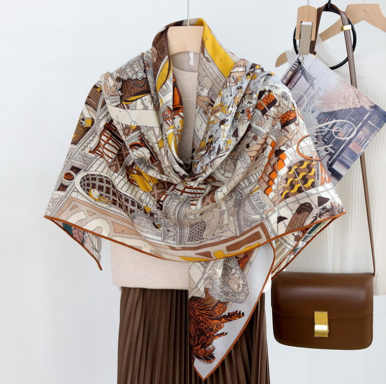 $ 8.07100% Mulberry Silk 110cm Square Scarf - Blooming Lily Print Versatile Fashion Accessory