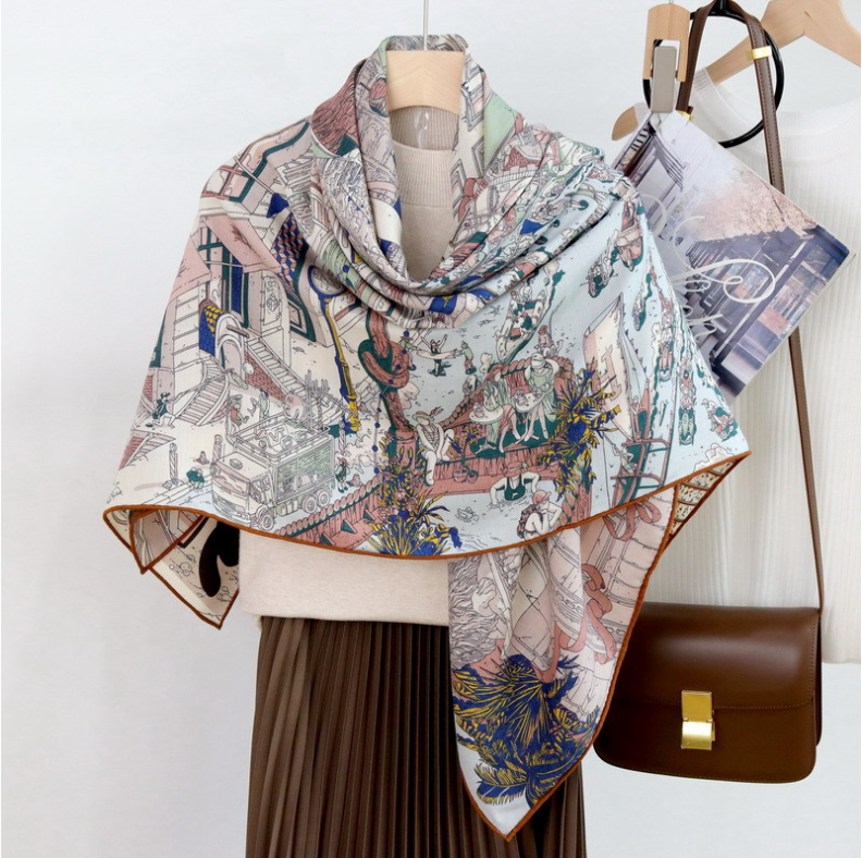 $ 18.64100% Mulberry Silk Scarf 150x15cm Double-Sided Print for Women