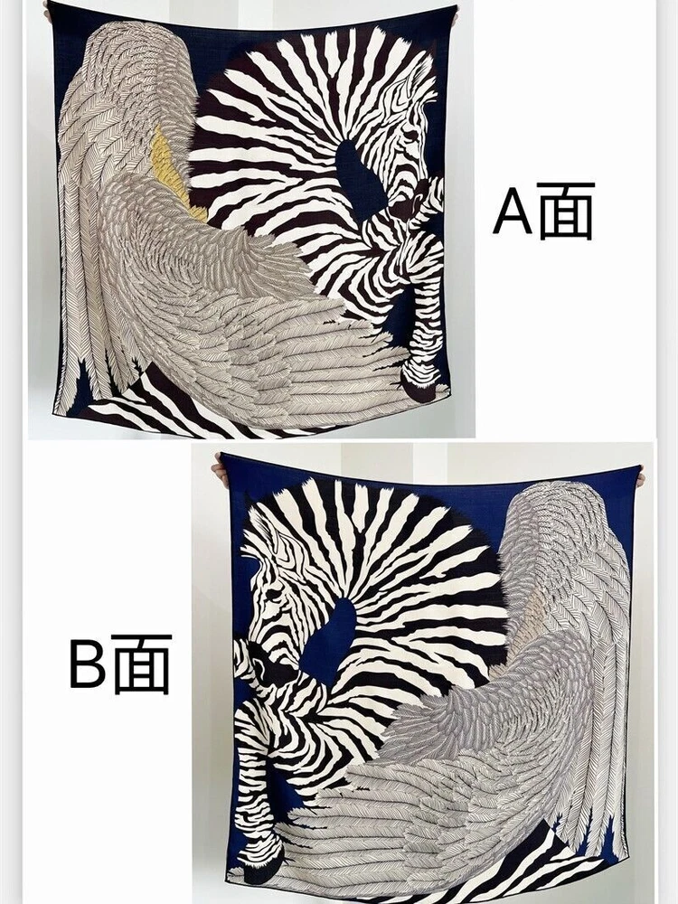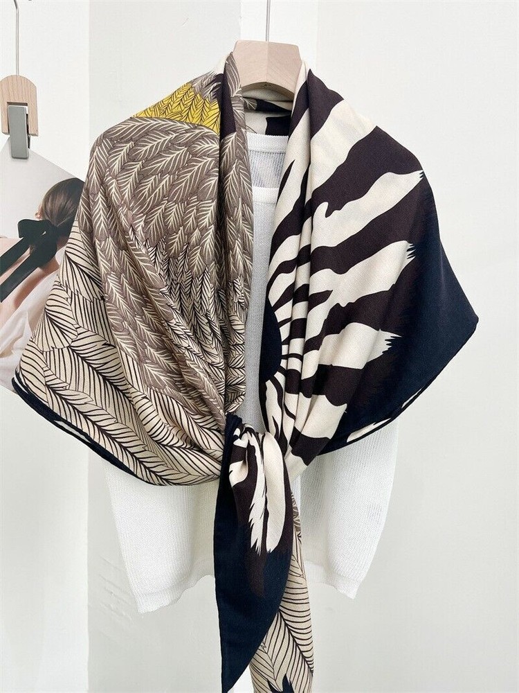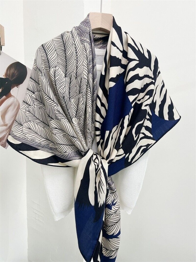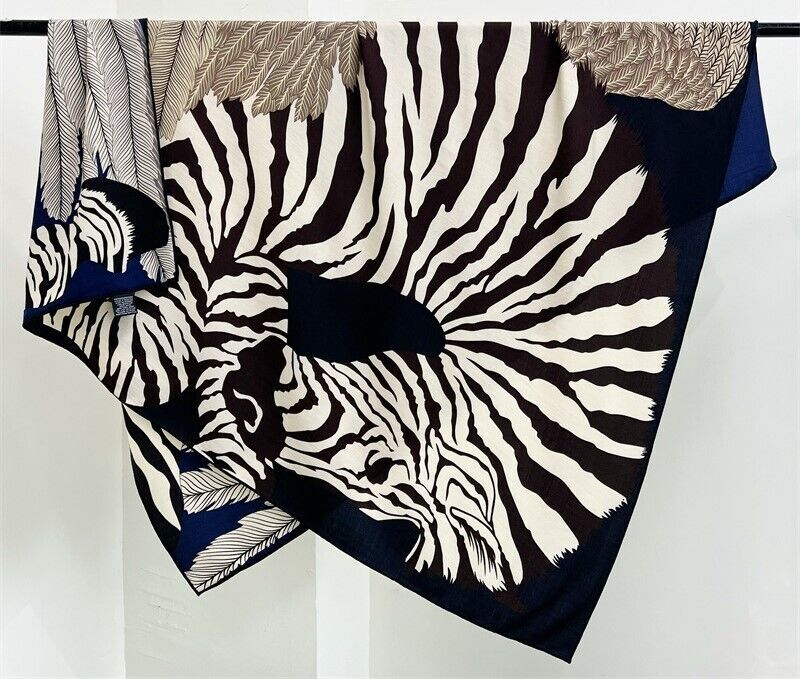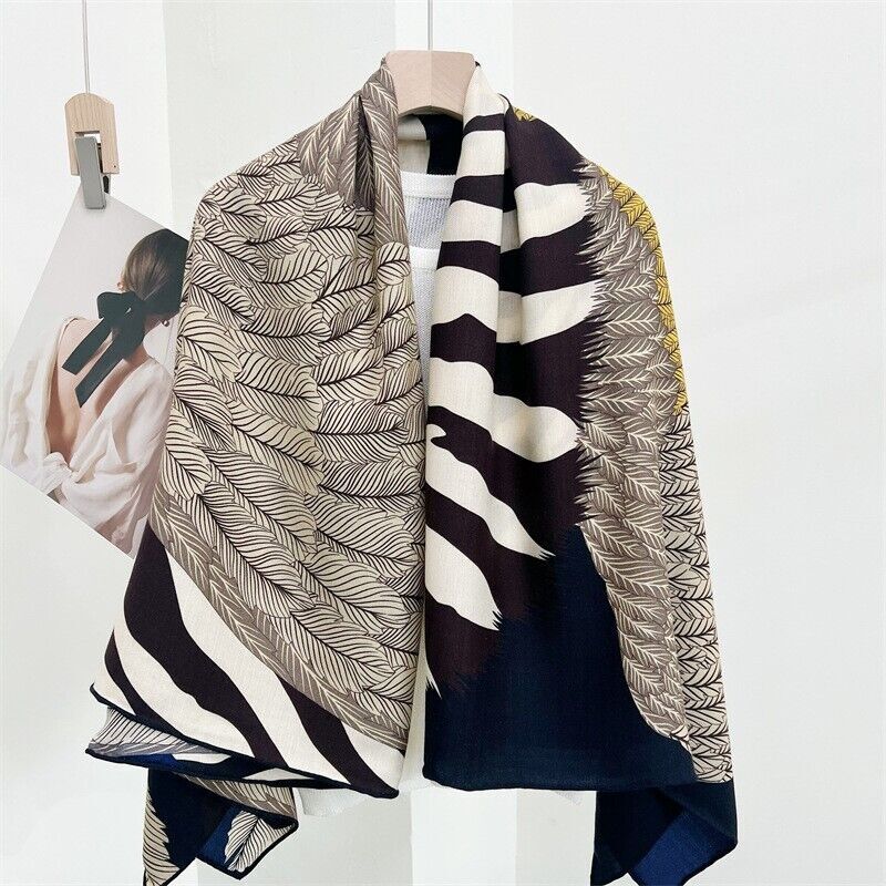 70% Cashmere & 30% Silk Wrap Scarf Feather Zebra Print Double Face Shawl 53"