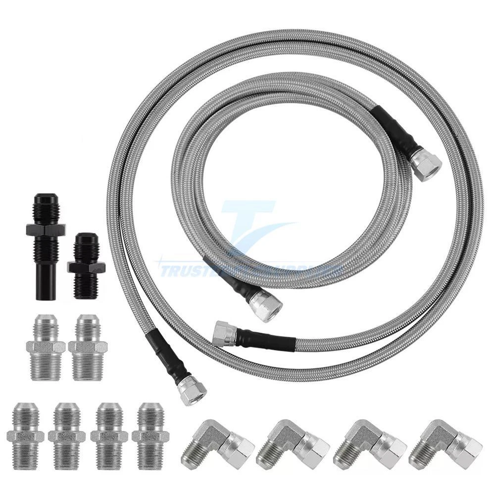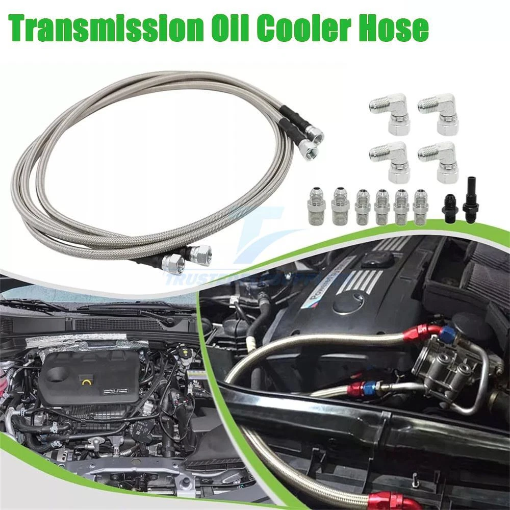 Product Description 70” Flexible SS Braided Transmission Cooler Lines Kit 6AN For GM 4L60E 4L80E Note: Please make sure the car's model if fit your car or not before you order Product Description: Fitment: For Turbo 350 400, Turbo 200 -200R4 power glide(some are 1/4" NPT) 700R4 - 4L60 - 4L60E - 4L65E - 4L80E 1996 & Newer Ford C4 C6 - AOD Material: Made of stainless steel flexible braided transmission hose, reliability and stability, Easy to install Package Included: 2 x about 70 inch & 3/8" I.D. Stainless Steel Braided Hoses; 4 x AN-6 flared to 1/4" NPT billet adaptors; 2 x AN-6 flared to 3/8" NPT billet adaptors; 4 x 90 degree AN-6 inverted flare to AN-6 flare billet adaptors;2 x Aluminum 4L80E adapter fittings Specifications: Length: 180cm Material: Teflon (Steel+Aluminum+Stainless Steel Braided) Suitable for General Chevrolet 1996-2021 4L80E, Suitable for Ford C4-C6-AOD, Suitable for Turbo 350/400/200-200R4/Suitable for Most 700R4 4L60E 4L65E. Note: Different accessories - accessories of different sizes are suitable for different cars and turbines. Please check as much as possible to ensure that the transmission cooling hose meets the hose you need. APPLICATION: Universal for any use with AN6 adapter fitting. For Transmission TH350, TH400, 4L60E, 4L80E, 700R4, 200-4R, TR6060, Ford AOD 4R100, 4R70W, and C5. Transmission compatibility charts are for REFERENCE ONLY. Check product type and size to match your needs. 4L60E Application: For 94-96 Buick Roadmaster. For 04-07 Buick Rainier. For 99-00 Cadillac Escalade (models with LM7/5.3L V8 Also with 6.0 LQ9). For 02-05 Cadillac Escalade (models with LM7/5.3L V8 Also with 6.0 LQ9). For 94-96 Cadillac Fleetwood. For Chevrolet Silverado 1500-2500 (2500 with 6 bolt axle pattern). For 93-05 Chevrolet Astro. For 02-08 Chevrolet Avalanche. For 94-05 Chevrolet S-10 Blazer. For 94-02 Chevrolet Camaro. For 94-96 Chevrolet Caprice. For 93-00 Chevrolet C/K. For 94-04 Chevrolet Corvette. For 04-12 Chevrolet Colorado. For 03-12 Chevrolet Express. For 94-96 Chevrolet Impala SS. For 94-05 Chevrolet S-10. For 03-06 Chevrolet SSR. For 93-09 Chevrolet Suburban, 1500. For 03-10 Chevrolet Tahoe. For 02-09 Chevrolet TrailBlazer. For GMC Sierra, 1500-2500 (2500 with 6 bolt axle pattern). For GMC Yukon. For GMC Yukon XL Denali. For 04-12 GMC Canyon. For 03-09 GMC Envoy. For 93-05 GMC Jimmy For 93-05 GMC Safari For 03-13 GMC Savana. For 94-05 GMC Sonoma. For 93-96 GMC Vandura. For 93-12 Holden Commodore (VR, VS, VT, VX, VY, VZ, VE). For 01-06 Holden Monaro. For 94-08 Holden Caprice (VR, VS, WH, WK, WL and WM). For Hummer H3. For Oldsmobile Bravada. For 94-02 Pontiac Firebird. For 04-04 Pontiac GTO. For 05-09 Saab 9-7X. For 03-08 Isuzu Ascender. 4L80E Application: For 91-13 Chevrolet C/K/Chevrolet Silverado/GMC Sierra 2500 & 3500. For 91-13 Chevrolet/GMC Suburban/GMC Yukon 1500,2500 & 3500. For 91-09 Chevrolet Van/Chevrolet Express/GMC Savana 2500 & 3500. For 02-06 Chevrolet Avalanche 2500 General Motors LS engine only. For 00-06 Chevrolet HD trucks. For 92-06 Hummer H1. For 92-98 Rolls-Royce Silver Spirit/Spur II, III, IV. For 91-92 Bentley Eight. For 91-97 Bentley Turbo R. For 91-02 Bentley Continental R/S/T. For 99-06 Bentley Arnage Red Label / Bentley Arnage R/RL/T. For 93-96 Jaguar XJS. For 94-97 Jaguar XJR. For 93-97 Jaguar XJ12 / Daimler Double Six. For 96-99 Aston Martin DB7. TR6060 Application: For 07-07 Ford Mustang Shelby GT500. For 08-13 Chevrolet Corvette. For 08-17 Dodge Viper. For 08-16 Ford Falcon. For 08-17 Holden Special Vehicles Range. For 09-on Dodge Challenger. For 09-09 Pontiac G8 GXP. For 09-15 Cadillac CTS-V. For 10-14 Ford Shelby GT500. For 10-on Chevrolet Camaro SS. For 12-on Chevrolet Camaro ZL1. For 13-17 Gen-F HSV. For 13-18 Cadillac ATS 2.0L Performace. For 15-17 Chevrolet SS. For 16-19 Cadillac ATS-V. For 21-on Cadillac CT4-V Blackwing. For 21-on Cadillac CT5-V Blackwing AOD Application: For 80-86 Ford LTD. For 80-93 Ford Thunderbird. For 80-93 Ford F-Series. For 82-93 Ford Bronco. For 83-93 Ford Econoline. For 84-93 Ford Mustang. For 83-91 Ford LTD Crown Victoria. For 92-92 Ford Crown Victoria. For 80-93 Mercury Cougar. For 80-86 Mercury Marquis. For 83-92 Mercury Grand Marquis. For 81-92 Lincoln Town Car. For 80-87 Lincoln Continental. For 86-92 Lincoln Mark VII. For 80-83 Continental Mark VI. For 84-85 Continental Mark VII 4R70W Application: For 93-03 Ford F-Series. For 94-97 Ford Thunderbird. For 95-04 Ford Crown Victoria. For 96-01 Ford Explorer. For 97-04 Ford Expedition. For 96-04 Ford Mustang. For 93-98 Lincoln Mark VIII. For 93-04 Lincoln Town Car. For 94-97 Mercury Cougar. For 95-04 Mercury Grand Marquis. For 97-01 Mercury Mountaineer. For 03-03 Mercury Marauder. For 04-05 Rover 75 V8. 4R100 Application: For 99-04 Ford Lightning (F-150 SVT). For 99-03 Ford F-150 7700 Series (LEV - Low Emissions Vehicles only). For 02-03 Ford F-150 Harley-Davidson Edition. For 99-03 Ford Super Duty. For 99-03 Ford Expedition (with 5.4 V-8). For 00-03 Ford Excursion. For 97-04 Ford E-Series. For 02-02 Lincoln Blackwood. For 98-04 Lincoln Navigator. Package Included: About Us Payment Shipping Returns Contact Us 1. Unless specified otherwise, all our products are IN STOCK and are shipped from USA Local warehouse - Not Overseas! 2. We provide a 30 day Satisfaction Guarantee or your money back (provided items are in the same new and resaleable condition.) 3. We have a PayPal Verified Business Account, please buy with Confidence! 4. Every item will be tesrted before send.We know our products well and if we don't have the answers we will do our best to find them for you! 5. Our friendly team look forward to serving you! Your satisfaction is our No.1 Priority We will do our best to satisfacy you. 1.Paypal, Credit Card, G Pay etc, many payment way is accepted. 2.Please be sure your shipping address is correct before make a payment. 1.We will ship out the item within 1-3 business days after comfirming the payment, appreciate your patience. 2.If the it