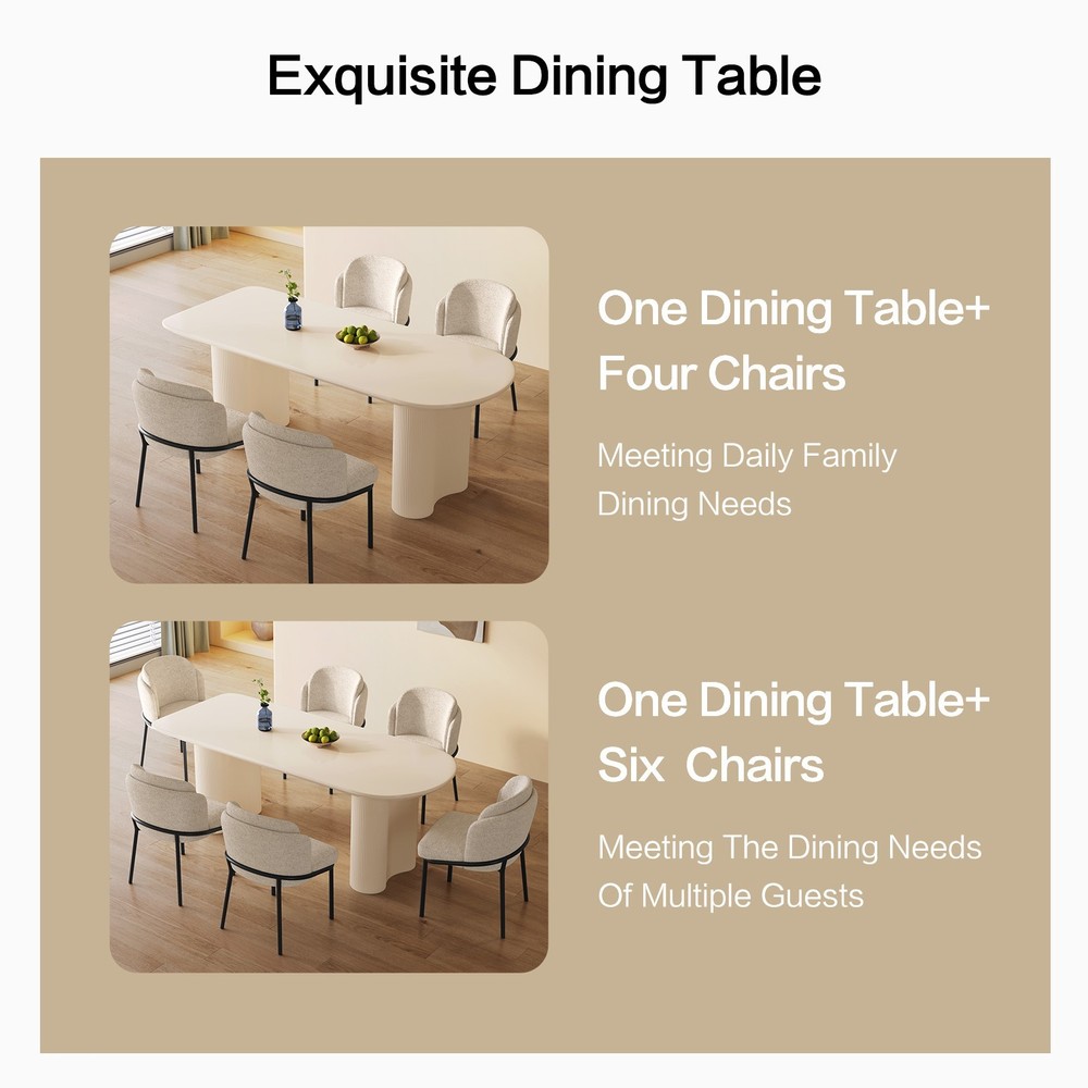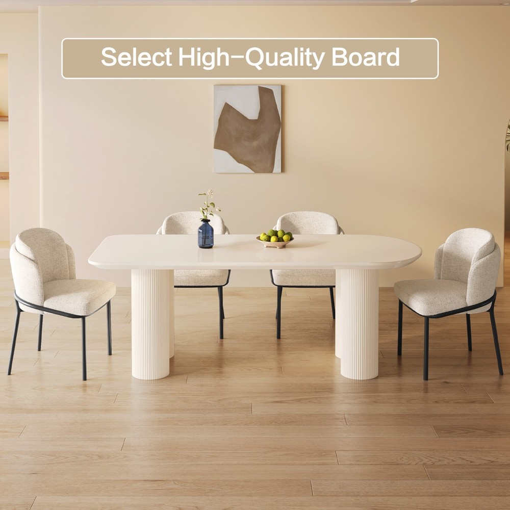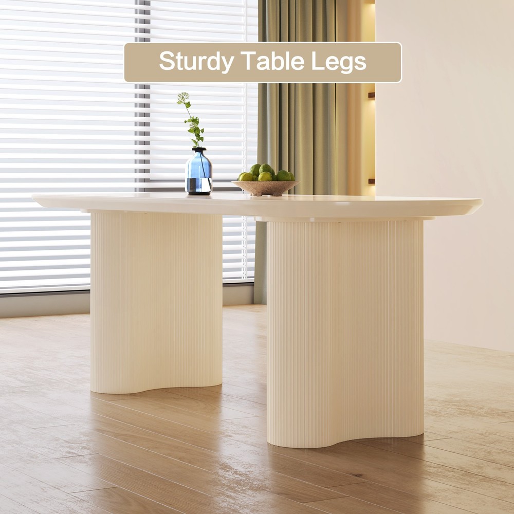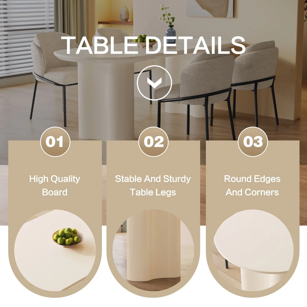 About this item ★ Size: Dining table size: 70" x 31.49" x 29.52" ★ Rounded Edge Design: Our dining table distinguishes itself with gracefully rounded corners, setting it apart from conventional rectangular designs. The soft, curved edges not only create a more inviting and warm ambiance but also enhance safety for those seated around it, making it an ideal choice for households with young children or pets. ★ Superior Construction Materials: Our dining table is meticulously crafted from robust high-quality board material, utilizing four distinctive techniques and eco-friendly board to ensure unparalleled strength and stability. The utilization of premium materials and expert craftsmanship guarantees that this dining table will not only be an aesthetically pleasing addition to your living space but also a resilient and enduring piece of furniture that can withstand the test of time. ★ Distinctive Table Legs: The Guyii kitchen table showcases exquisitely designed wavy table legs that imbue the design with a captivating three-dimensional aspect. These legs are not only visually striking but also provide steadfast support, thanks to the table's solid floor-level construction and remarkable weight-bearing capability. Whether you're hosting an elaborate dinner party or enjoying a casual meal with loved ones, this table effortlessly combines style and functionality to impress. ★ Effortless Cleaning: This dining table is thoughtfully crafted with materials that prioritize ease of cleaning without compromising on style or durability. The tabletop boasts a smooth surface that offers a seamless and wipeable finish, enabling spills, stains, and food particles to be effortlessly removed with a simple swipe of a cloth. Bid farewell to stubborn marks or lingering residue, as this table simplifies cleanup to an absolute delight. ★ 100% Customer Guarantee - Guyii provides you with quality products and excellent customer service. If you encounter any problems with the dining table, please do not hesitate to contact us, we will provide you with fast and friendly customer service. Get yours and more for family and friends TODAY!