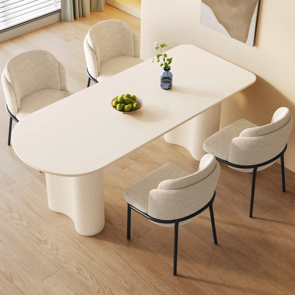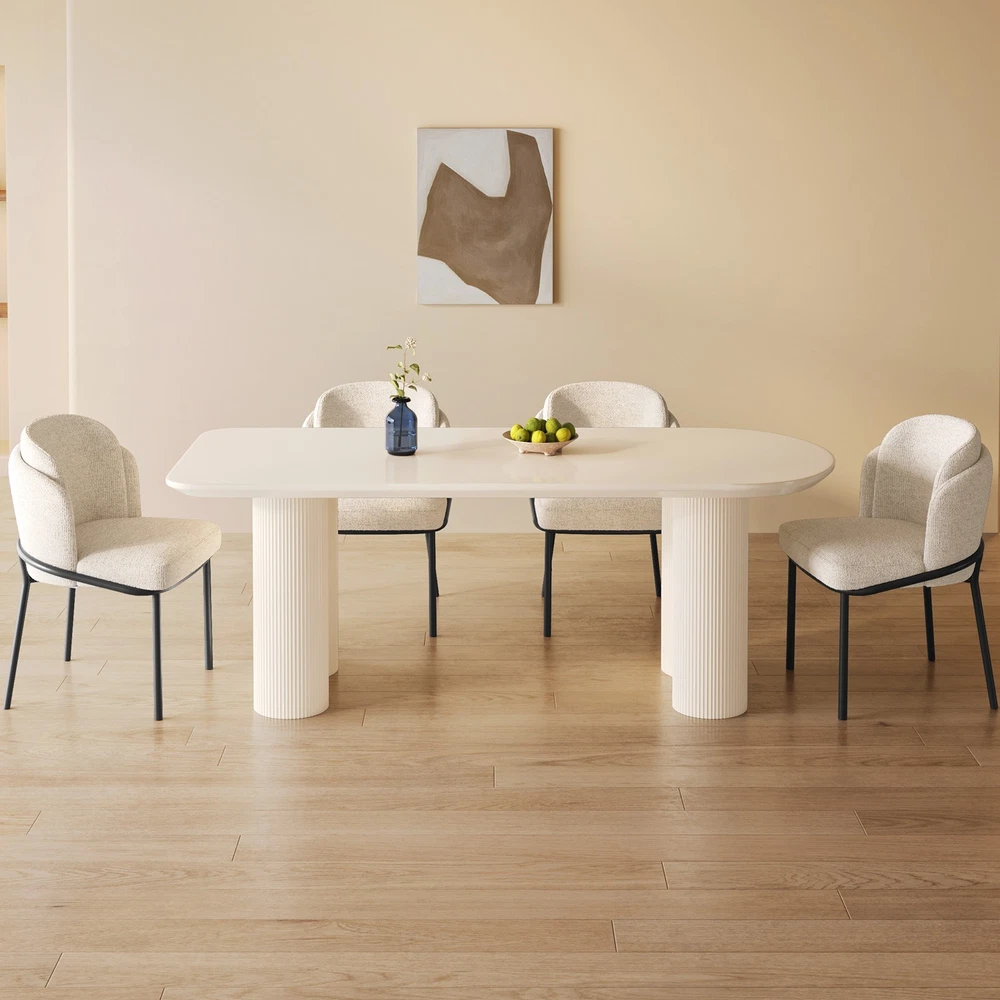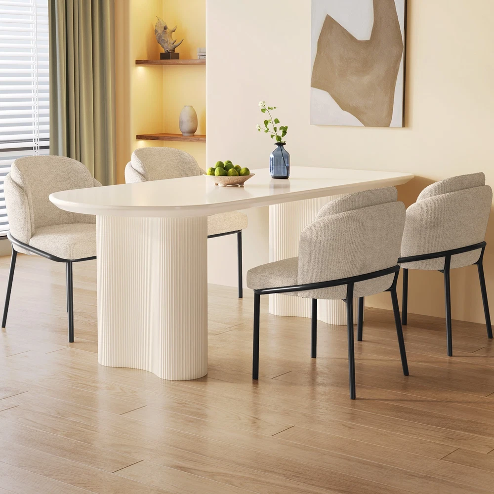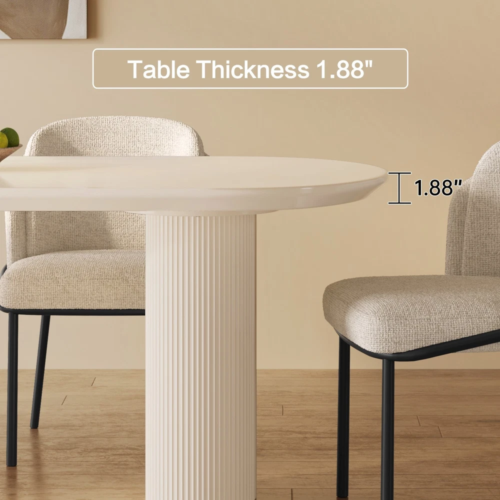 About this item ★ Size: Dining table size: 70" x 31.49" x 29.52" ★ Rounded Edge Design: Our dining table distinguishes itself with gracefully rounded corners, setting it apart from conventional rectangular designs. The soft, curved edges not only create a more inviting and warm ambiance but also enhance safety for those seated around it, making it an ideal choice for households with young children or pets. ★ Superior Construction Materials: Our dining table is meticulously crafted from robust high-quality board material, utilizing four distinctive techniques and eco-friendly board to ensure unparalleled strength and stability. The utilization of premium materials and expert craftsmanship guarantees that this dining table will not only be an aesthetically pleasing addition to your living space but also a resilient and enduring piece of furniture that can withstand the test of time. ★ Distinctive Table Legs: The Guyii kitchen table showcases exquisitely designed wavy table legs that imbue the design with a captivating three-dimensional aspect. These legs are not only visually striking but also provide steadfast support, thanks to the table's solid floor-level construction and remarkable weight-bearing capability. Whether you're hosting an elaborate dinner party or enjoying a casual meal with loved ones, this table effortlessly combines style and functionality to impress. ★ Effortless Cleaning: This dining table is thoughtfully crafted with materials that prioritize ease of cleaning without compromising on style or durability. The tabletop boasts a smooth surface that offers a seamless and wipeable finish, enabling spills, stains, and food particles to be effortlessly removed with a simple swipe of a cloth. Bid farewell to stubborn marks or lingering residue, as this table simplifies cleanup to an absolute delight. ★ 100% Customer Guarantee - Guyii provides you with quality products and excellent customer service. If you encounter any problems with the dining table, please do not hesitate to contact us, we will provide you with fast and friendly customer service. Get yours and more for family and friends TODAY!