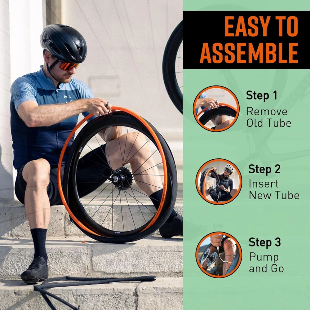 【Versatile Compatibility】Tubolito’s TPU inner tube 700C fits tires from 18mm to 32mm, compatible with both rim and disc brakes a wide range of road bikes. 【Enhanced Durability】Tubolito's road bike tubes are twice as strong as standard butyl tubes, ensuring superior toughness worry-free cycling. 【Reduced Rotating Mass】By reducing 70 grams per tire, Tubolito tubes improve bike handling and performance, weighing almost 2/3rds less than regular tubes. 【Double Puncture Protection】Providing twice the puncture resistance of standard butyl tubes, Tubolito’s road bike tubes deliver reliable protection road tires between 18mm to 32mm in width, ensuring smooth rides. 【Easy Installation】Tubolito’s 700C bike tube installs effortlessly in 3 steps: remove old tube, insert new one, and check pressure. Simple and -free. 【Varied Valve Options】Select from 42 mm (38 grams), 60 mm (39 grams), and 80 mm (40 grams) Presta valves to match your bike setup and preferences precisely. Product Description