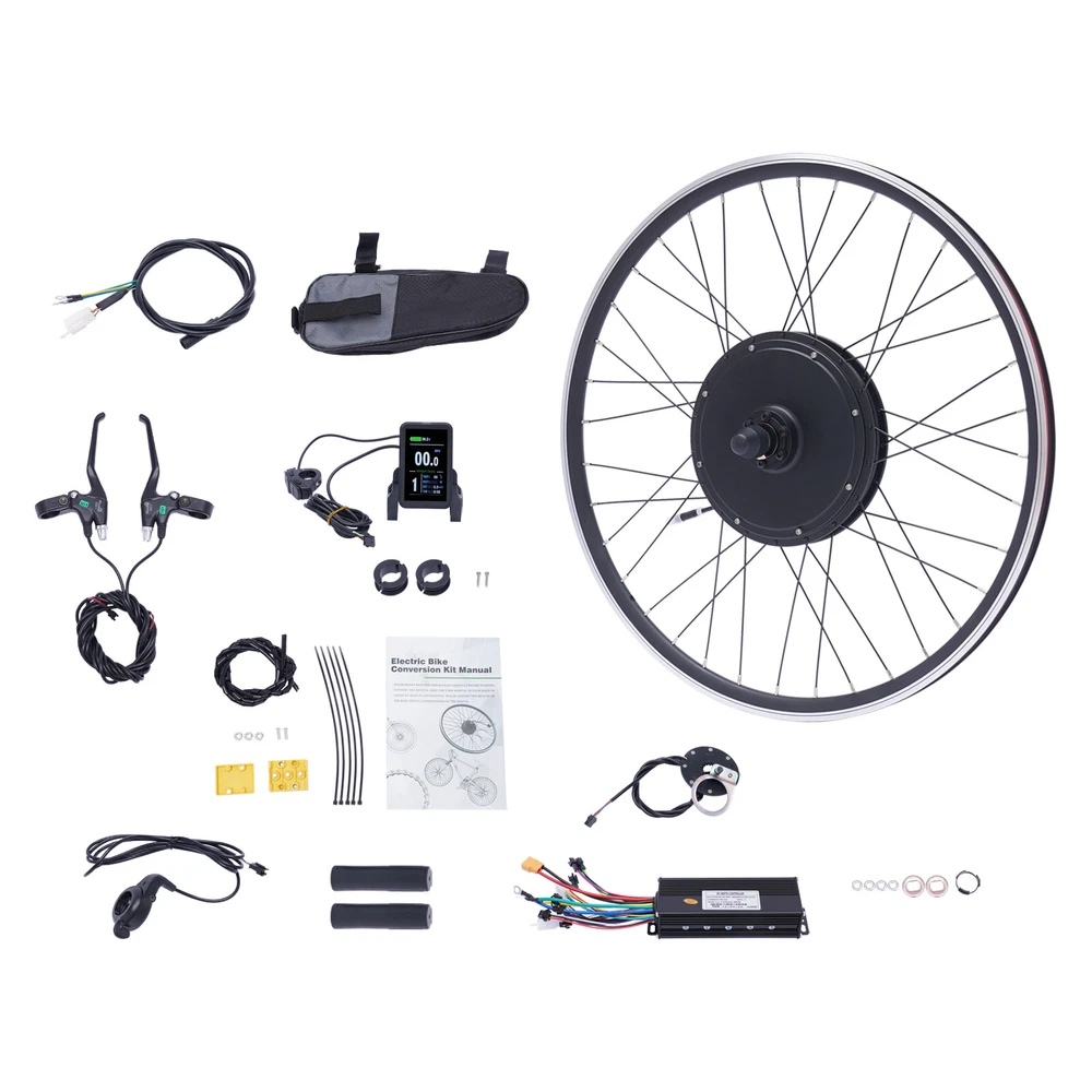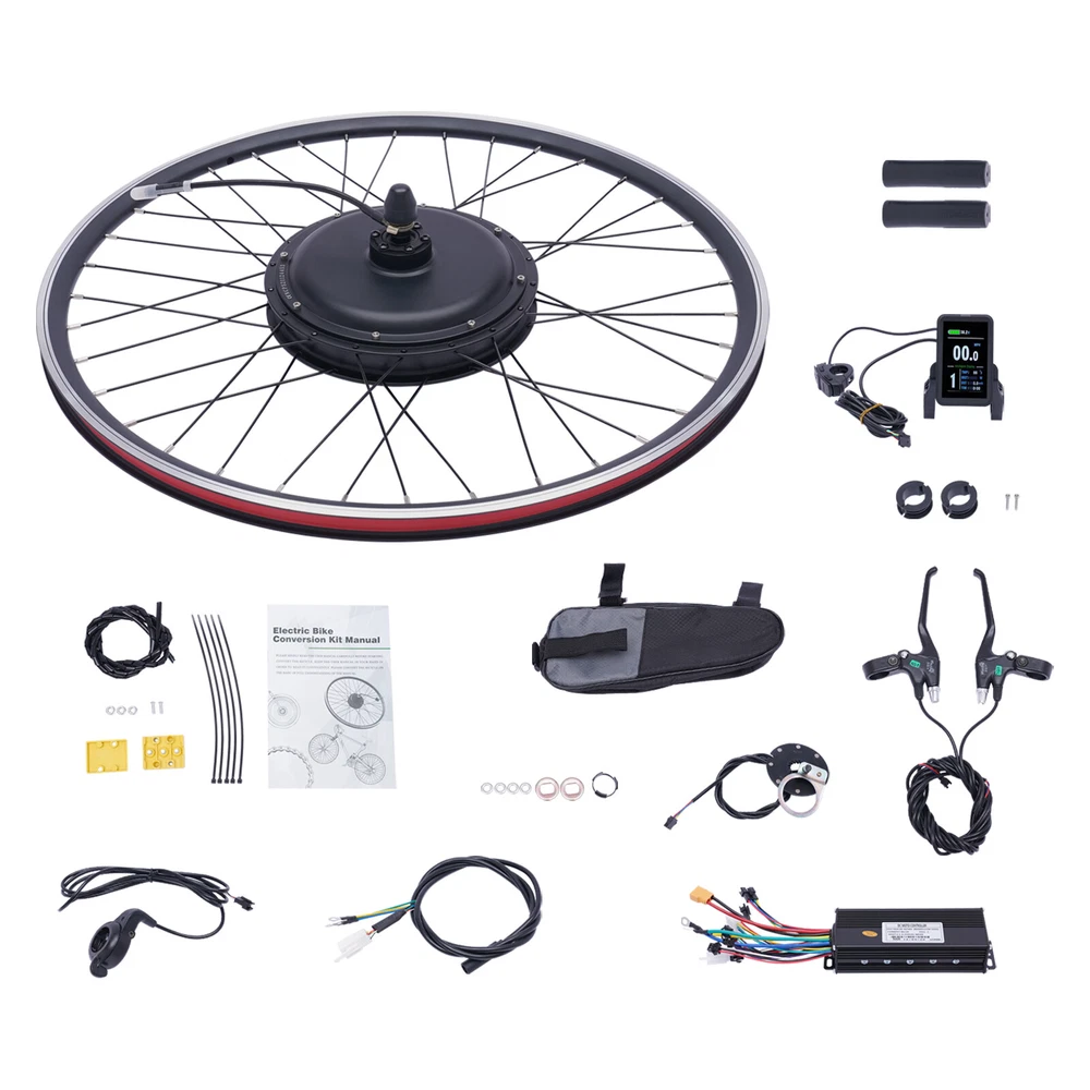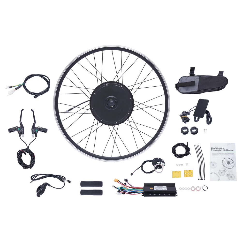 700C Front Wheel E-Bike Electric Bicycle Conversion Kit 48V 1000W Hub Motor Kit Description Do you want to convert your favorite bicycle into an electric bicycle to enjoy its power and comfort? Then you can't miss our electric bicycle motor conversion kit. The display and pedal sensor will allow you to quickly switch between throttle control, cruise control and pedal assist sensor (PAS) to enjoy feeling the headwind on the road. It will be ideal for you! Specifications Material: Aluminum Alloy Color: Black Suspension Type: Front/Rear Special Feature: Electric Assembly Requirement: Yes Brake Type: Power-off Brake Lever (Applicable to V Brake, Disc Brake) Motor Type: Brushless Gearless Motor Gear Adjustment: 5 Gears Recommended Battery: 48V 13AH or Higher Capacity Battery(Not Included) Output Voltage: 48V Power: 1000W Minimum Flat Fork Distance: 100mm/3.94in Speed: 45-55km/h Display Size: 6.8*9.6cm/2.67*3.77in Packing Size: 65*65*22cm/25.59*25.59*8.66in Suitable Wheel Diameter: 28-inch, 29-inch, 700C Gross Weight: 11kg/24.25lbs Net Weight: 10kg/22lbs Loading Capacity: 120kg/264lbs Front Wheel Package Included: 1* Motor Wheel 1* Display 2* Brake Levers 1* Controller 1* Thumb Knob Handle 1* Controller Bag 1* Pedal Assist Sensor 1 * Motor Cord 1 * Winding Pipe 1* English Instruction Manual All Accessories for Assembly Key Features Enjoy Riding: It converts your bike into an e-bike for efficiency and convenience, allowing you to fully enjoy the fun of riding on your commute and short journeys. Complete Set: This kit contains the complete range of accessories needed to convert your bike without you having to buy them separately. The matching kit will provide you with more consistent and stable performance. User-friendly Features : According to different road conditions and personal needs, it allows 5-gear speed adjustment. At the same time, when the riding speed is maintained, pressing the button key for 2-3 seconds will enter the cruise function, making the riding process easier! Powerful Motor : With a 1000w brushless gearless motor, it can reach a maximum speed of 45-55KM/H. Compared to brush motors, it allows for smooth, fast acceleration and low noise operation without replacing the brush, thus making maintenance easier. Safe and Reliable : The brake lever can cut off the power supply of the motor in case of emergency braking, so that the bicycle can stop in time to ensure riding safety. Dual Mode Controller : The motor works under Hall effect and non-Hall effect. If the component fails, the controller will switch to non-Hall effect mode and the motor will continue to work. Robust and Durable : The aluminum alloy wheel frame is very durable, stable, rust-proof and wear-resistant, ensuring long service life and strong load-bearing capacity, up to 264lbs. Customer Service: We aim to provide quality products and services. If you have any problems, please feel free to contact us. We will reply and solve the problem for you as soon as possible. Notes While connecting the controller to the wires, please make sure that you connect the right colors to the controller. Otherwise, the controller may be broken. This kit does not include tires, batteries and chargers, which need to be purchased by customers. Please check the product size and practical voltage before purchasing. It is suitable for the front wheel of a two-wheeled bike. It cannot be used for three-wheelers or multi-wheelers. Please note that the motor can use hydraulic disc brake and wire disc brake, but the brake handle provided is wire disc brake. Please allow the slight color difference caused by the shooting light and 1-3cm error due to manual measurement, and make sure you do not mind before you order. Payment Delivery details Terms of sales About us Contact us Payment We accept ebay payment 。 Fees such as import duties, taxes are not included in the item price or shipping costs. These charges are the buyer's responsibility. Delivery details Shipping: 2-9 working days to: USA Terms of sales We maintain high standards of excellence and strive for hundred percent customer satisfaction. Feedback is very important to us. We hope that you contact us immediately before you give neutral or negative feedback, so that we can address your concerns. It is impossible to address issues if we do not know about them! About us Your satis faction is our ultimate goal. We work hard to earn your trust and future business. Our certified technicians have tested each item before shipping. The unit comes with 1 year limited warranty on all manufacturing defects. a) If you receive a defective item, you may return it or ask for a discount. Please contact us within 14 days after you receive the package. b) What you returned must be intact and in its original packaging as re? u. Customer is responsible for shipping costs of the returned item. c) We will cover the cost of shipping back t with the shipping rate indicated in the registration page. We will send you a new unit or refund the full payment you paid. Thank you. Contact us Business Hour Business Hour: Monday To Friday: 8:30 AM to 5:00 PM (Beijing China time) Due to time zones, our reply to your questions may not be immediately. But within above working time, we will reply your email within 24 hours. If it's non-workdays, please kindly be patient and wait till Monday. Please contact us with ebay message. Please feel free to contact us if you have any questions. Monday To Friday: 8:30 AM to 5:00 PM (Beijing China time) Due to time zones, our reply to your questions may not be immediately. But within above working time, we will reply your email within 24 hours. If it's non-workdays, please kindly be patient and wait till Monday. Please contact us with ebay message. Please feel free to contact us if you have any questions.