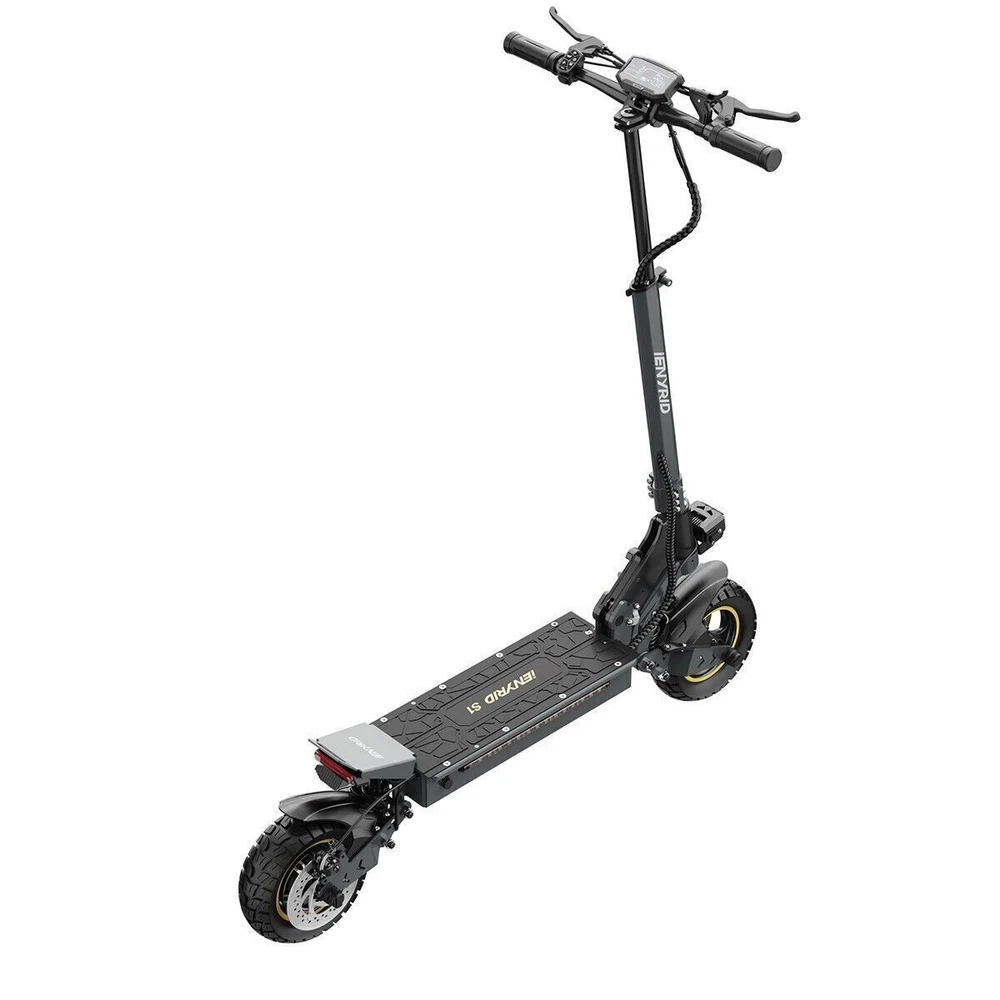 iENYRID 700W 48V Adults Electric Scooters Dual Motors Drive Commute Off Road E-Scooter 2025 Upgraded iENYRID Electric Scooter S-A Foldable Electric Scooter comes with a 700Wh (48V 15Ah) battery assisting 19-25 miles cruising range. S-A becomes an excellent choice for high-quality and comfortable riding. It is suitable for commuting to work, shopping in supermarkets, mountain cross-country and traveling. Powerful Motor & Long Lasting Battery S-A electric scooters f With powerful Dual 700W Motors, detailed parts, detachable seat and foldable design, brings faster acceleration and climbing ability to this electric scooter, which can reach 28 mph max and max 30°climbing angle. Comfortable Commuting IENYRID S-A adult off road electric scooter comes with upgraded 10-inch off-road tires and front and rear dual suspension to ensure max comfort even on bumpy roads. Also, the aviation-grade aluminum frame is stronger and lighter, which makes the scooter much more elegant to look at and handle as well. And it has a max load of 280 lbs. Foldable Electric Scooter Easy to fold and carry, carry it on public transportation or store it in your car to get to wherever you want. Dynamic, Easy storage in car trunks and other compact spaces, occupying little space and suitable for travel and transportation commute. IPX5 Super Waterproof & LED Intelligent Lighting System The waterproof frame and deck are tightly sealed against water, accredited with an IPX5 ingress protection rating painting. The head of the e scooter is equipped with three LED lights with different functions to ensure safe and worry-free riding at night. Specification: Type: Electric Scooter for Adults Model:S-A Motor: 700W Tyre Type: Air tires Battery specification: 48V 15AH Charger specification: Input 100-240V 50/60Hz 2.0A, Output 54.6V 2A Max Controller specification: DC48V/36A Charging time: 6-8 hours Frame Material: Aluminum alloy Light: Front LED headlights, sidelights, and taillights Drive mode: front and rear wheel dual drive Max Speed: 28MPH Max Range: 19-25 Miles Max Load: 265 lbs Maximum climbing ability: ≤ 30 ° Tires: 10 in off-road pneumatic tires Frame Material: aluminum alloy Braking method (front/rear): mechanical braking Front shock absorber: Yes Rear shock absorber: Yes Front headlights: integrated with horn Tail lights: Yes Edge light: Yes Brake lights: Yes Net Weight: 65 lb Front and rear tire pressure: 50 ± 10psi Product Size (L x H x W): 47.24 x 49.6 x 23.62 in (unfolded), 45.67 x 20 x 23.62 inch (folded) Package Size: 128*24*48 cm Package Contents: 1 x Charger 1 x User Manual 1 x Electric scooter Warning: It is illegal to ride electric scooters on public roads (except under very specific circumstances), pavements or cycle paths. They are intended only for use on private land with the owner’s permission.