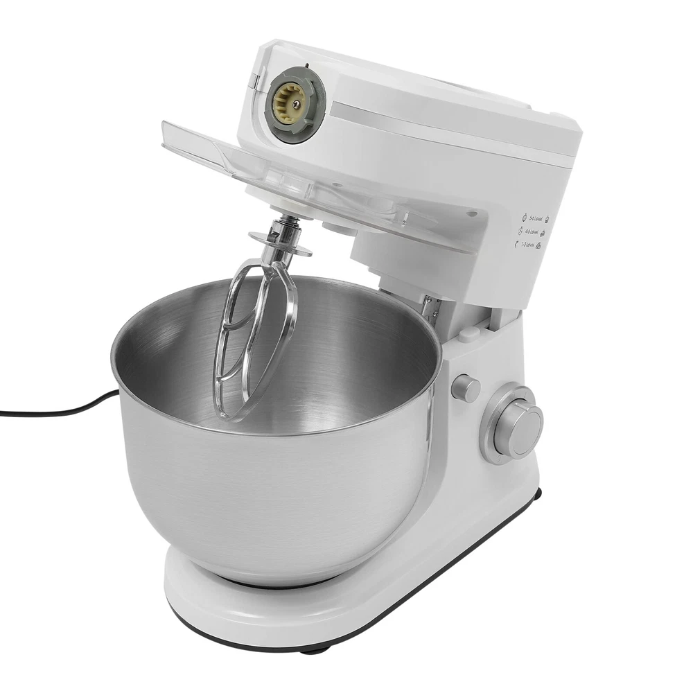 3 in 1 700W Food Stand Mixer 6.34Qt Electric Kitchen Dough Mixer 6-Speed +juicer 3 in 1 700W Food Stand Mixer 6.34Qt Electric Kitchen Dough Mixer 6-Speed +juicer Description Look at our kitchen mixer, it is a helpful assistant for your kitchen. It is made of premium materials, so it is safe to use and durable. This machine is compact and lightweight, so you can easily store it in the cabinet. As a daily mixer, it is easy to operate and clean up. The clear anti-splash guard could prevent the ingredients from making a mess. It comes with 6+1-speed options and three different mixing tools that can satisfy precise needs for various mixing tasks. Key Features Build to Last : The product is made of high-quality ABS, glass and 304 stainless steel, making it durable, and not easy to rust and corrosion, so it can remain beautiful and practical for a long time. Powerful Function: It has a strong power (700W) as well as a knob that allows you to adjust 6 mixing speeds, allowing you to finish kneading and mixing more quickly and thoroughly than human hands, and the pulse function can deliver short bursts of power at the optimal speed to blend mixtures evenly. Thoughtful Design: A deepened mixing bowl( 6.34qt ) can thoroughly mix flour, eggs, and other ingredients inside. The enhanced gear and enclosed transmission can provide powerful power to the machine and achieve the noise reduction function, ensuring smooth operation. High Safety: The Hall sensor of the machine has a motor overheating automatic power off thermal protection function that can ensure your safety as well as easy for you to replace the accessories when using, in addition, the cooling holes can dissipate the heat in time to ensure the stability of the product when using. Multi-function Machine: Its mixing bowl can hold enough ingredients and is equipped with a whisk, beater, and dough hook to facilitate the mixing of different ingredients and meet the dietary needs of you and your family. The meat grinder provides freshly ground meat when required, and the provided meat pusher offers you a safe and convenient use experience. 1.58qt glass juice container allows the sharing of more vegetable juice, fruit juice, or milkshakes, creating delightful beverages for family and friends. Ready to Use: Complete accessories and a detailed English manual make it very convenient and time-saving for you to use it directly after receiving it. Compact and Lightweight: With its compact size (13.78*7.09*21.56 inches) and lightweight ( 15.43 lbs ), you can use it conveniently or store it in your cabinet without taking up too much space, making it suitable for small kitchen, apartment, or limited storage space. Ideal Gift: Because of its powerful functions and practicality, you can give it to your friends as a Christmas, Thanksgiving, or housewarming gift. Quality Service: We are honored that you have chosen our product. We have sufficient confidence in the quality of the product so that you can buy it confidently. But if you have any questions, you can contact our customer service, he will patiently answer and solve your problems . Details 6 Suction Pads: They provide a non-slip effect to ensure product stability . Locking Groove: It helps secure the mixing bowl more accurately. Heads-up Button: It allows the attachment of the agitator section to be lifted upwards, making it easy for you to remove or replace the agitator. Splash-proof Cover: The clear anti-splash guard helps you with process monitoring and facilitates pouring water, milk, or other liquid ingredients(not included) through the small holes in the splash guard when needed while preventing ingredients from running out of the bowl, making cleanup easier. Handle: The handle on the juicer makes it easy to grip and pour your juice (not included). Application It can be used in kitchens, restaurants, bakeries, etc. for smoothies, pizza, waffles, milkshakes, bread, dough, whipped cream, marble cakes, mincemeat, juice and more! Specifications Style: Modern Color: White, Silver Material: ABS, 304 Stainless Steel, Glass Mounting Type: Free Standing Assembly Req uired: Yes Control Type: Knob Power Source: Corded Electric Plug Type: US Standard Motor Type: 8830 Motor Volatge: 110-120V, 50/60Hz Power: 700W Speed Gears: 6+1(P ulse Function ) Mixing Bowl Capacity: 6L/ 6.34qt Juice Container Capacity: 1.5L/1.58qt Noise: 90db Power Cord Length: 1m/3.28ft Gross Weight: 8.3kg/18.3lbs Net Weight: 7kg/15.43lbs Product Size: 35*18*54.75cm/13.78*7.09*21.56in Package Size: 61*36*27cm/24.02*14.17*10.63in Package Included 1* Kitchen Mixer 1* Douch Hook 1* Mixing Beater 1* Whisk 1* Juice Container 1* Anti-splash Guard 1*Mixing Bowl 1* English Manual Other Assembly Accessories Notes Please note that the mixing elements are not dishwasher safe! Please note that this product does not include any food ingredients. Before purchasing, please make sure that the capacity of this product is available for your needs. It is suitable for the new baker, 1-2 members, or small family in everyday use. If you are a pro-baker or need to handle large batches of mixing, please consider other larger-capacity mixers. Please read the English manual carefully before use and pay particular attention to the safety instructions contained therein. Please allow the slight color difference caused by the shooting light and 1-3 cm error due to manual measurement, and make sure you do not mind before ordering. Payment Delivery details Terms of sales About us Contact us Payment We accept ebay payment 。 Fees such as import duties, taxes are not included in the item price or shipping costs. These charges are the buyer's responsibility. Delivery details Shipping: 2-9 working days to: USA Terms of sales We maintain high standards of excellence and strive for hundred percent customer satisfaction. Feedback is very important to us. We hope that you contact us immediately before you give neutral or negative feedback, so that we can address your concerns. It