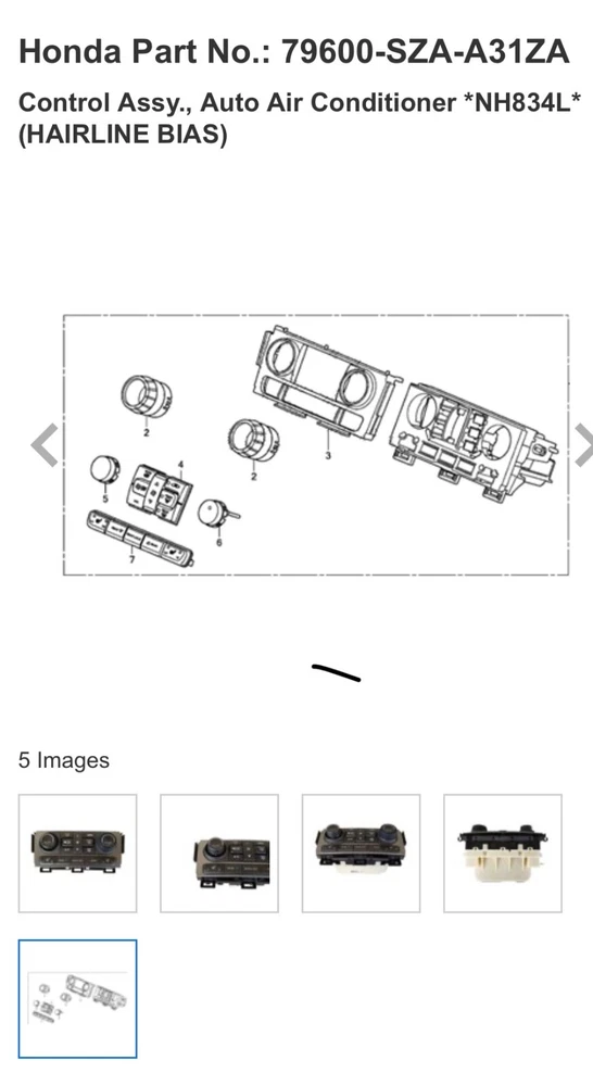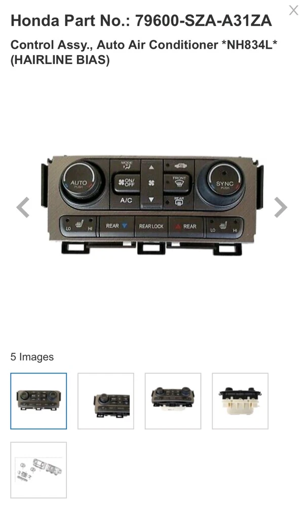 Color:SilverItem Width:oemInterchange Part Number:nh834lVintage Part:YesFeatures:No Drilling or Modifications Needed for Installation, Patent PartOE/OEM Part Number:79600-SZA-A31ZAType:HVAC Control PanelManufacturer Part Number:79600-SZA-A31ZAItem Length:oemMaterial:AluminumItem Diameter:oemCountry/Region of Manufacture:United StatesItem Weight:oemMounting Style:Screw-OnUniversal Fitment:YesPerformance Part:NoBrand:hondaItem Height:oemSuperseded Part Number:79600-SZA-A31ZADrive Side:Left-hand Drive
