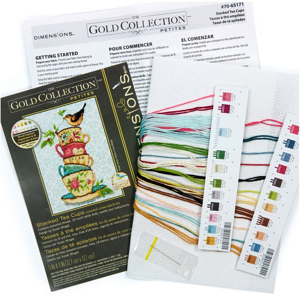 Stitch an impressive piece of DIY wall art with the Gold Collection Stacked Teacups Advanced Counted Cross Stitch Kit! This advanced cross stitch pattern features a stack of colorful teacups with a bird perched on top and is specifically designed for advanced needlecrafters. Includes 18 count white Aida, presorted cotton thread, needle, and instructions. Measures 5'' x 7''. Stacked teacup advanced cross stitch kit includes 18 count white Aida, presorted thread, needle, and easy to instructions. Completed Stacked Tea Cups counted cross stitch kit measures 7” L x 5” W. This advanced cross stitch kit is part of the Gold Collection, with intricate details designed specifically for advanced needlecrafters! This elegant cross stitch pattern features a stack of colorful tea cups with a delicate bird perched on top. Frame and hang your stunning teacup cross stitch project for a beautiful piece of DIY wall art!