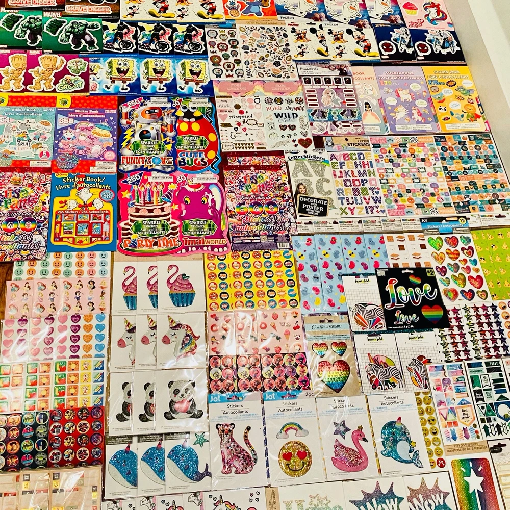 All stickers are BRAND NEW | Still in their original packaging! HUGE Mixed Sticker Lot | The Ultimate Kit | Qty. 7099+ Stickers | High Quality Only! Fun Assortment of Puffy, Scrapbook, Cartoons, Bubble, Pop Up Stickers Packs For Everyone! You will receive 179+ Sticker Sheets of beautiful colorful assortment. The Pack will include 7099+ Stickers overall! I have included a large variety of pictures of the assortment available. The pictures give you an idea of what you will be receiving. Please Note: You will not receive everything pictured. Please contact me with any special requests. This HUGE Variety of fun designs stickers can be used in parties, classroom, school and home, good for reward for students, potty training, adding inside a birthday card, game activities, entertaining toddlers, etc. Perfect Gifts for Kids & all Occasions: Can be given as a gift for kids, girls, boys, toddlers, teens, students, friends, and classmates, they will love it! Each package of stickers is a different style & theme with some lovely embellishments like rhinestones, ribbons, buttons and other 3D details that make these quality stickers look so unique!