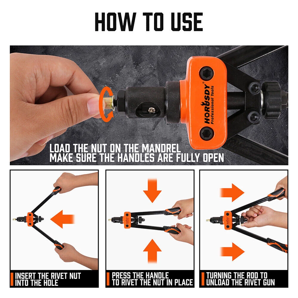 Product Description 70PCS 14'' Rivet Gun Kit Rivnut Thread Setting Tool Nut Setter NutSert Metric Various Mandrels - The rivet nut tool equipped with 7pcs interchangeable mandrels (M6, M8, M10, 1/4"-20, 3/8"-16, 5/16"-18). Sturdy and Durable - The riveting nut tool is made of chrome vanadium alloy steel. The surface is heat treated to prevent corrosion and improve the durability and strength of the tool. Easy for Use - The mandrel of the rivet nut can be easily removed by hand for replacement or maintenance of the mandrel. Wide Applications - Ergonomic long arm and rubber handle provide enough strength to easily rivet nuts without any unnecessary trouble. Package - 1 x 14inch Riveting Pliers, 7 x Mandrels, 70 x Rivet Nuts, 1 x Tool Case, 1 x Product specification 1 x Multi-function wrench. About Us Payment Shipping Returns Contact Us 1. Unless specified otherwise, all our products are IN STOCK and are shipped from USA Local warehouse - Not Overseas! 2. We provide a 30 day Satisfaction Guarantee or your money back (provided items are in the same new and resaleable condition.) 3. We have a PayPal Verified Business Account, please buy with Confidence! 4. Every item will be tesrted before send.We know our products well and if we don't have the answers we will do our best to find them for you! 5. Our friendly team look forward to serving you! Your satisfaction is our No.1 Priority We will do our best to satisfacy you. 1.Paypal, Credit Card, G Pay etc, many payment way is accepted. 2.Please be sure your shipping address is correct before make a payment. 1.We will ship out the item within 1-3 business days after comfirming the payment, appreciate your patience. 2.If the items are broken on the way(we will check the orders clearly before we sent them),please contact us in 3 days you received it. We will send you a new one or refund your payment. 1.We stand behind every buyer.Items can be returned for exchange or refund within 30 days. 2.Please contact us when you have any confusion of our item, we will solve the trouble for you as soon as possible. 1.This is professional Seller.We will reply your message within 24 hours. 2.Please contact us whenever you have any question about the item. We will deal with it as soon as possible. 3. If you are unhappy with the item or our service,please Contact Us before leave feedback,just give me a chance,thank you! About Us 1. Unless specified otherwise, all our products are IN STOCK and are shipped from USA Local warehouse - Not Overseas! 2. We provide a 30 day Satisfaction Guarantee or your money back (provided items are in the same new and resaleable condition.) 3. We have a PayPal Verified Business Account, please buy with Confidence! 4. Every item will be tesrted before send.We know our products well and if we don't have the answers we will do our best to find them for you! 5. Our friendly team look forward to serving you! Your satisfaction is our No.1 Priority We will do our best to satisfacy you. Payment 1.Paypal, Credit Card, G Pay etc, many payment way is accepted. 2.Please be sure your shipping address is correct before make a payment. Shipping 1.We will ship out the item within 1-3 business days after comfirming the payment, appreciate your patience. 2.If the items are broken on the way(we will check the orders clearly before we sent them),please contact us in 3 days you received it. We will send you a new one or refund your payment. Returns 1.We stand behind every buyer.Items can be returned for exchange or refund within 30 days. 2.Please contact us when you have any confusion of our item, we will solve the trouble for you as soon as possible. Contact Us 1.This is professional Seller.We will reply your message within 24 hours. 2.Please contact us whenever you have any question about the item. We will deal with it as soon as possible. 3. If you are unhappy with the item or our service,please Contact Us before leave feedback,just give me a chance,thank you! You may also like 4 Gauge Car Audio Cable Kit Amplifier Install Amp RCA Subwoofer Sub Wiring 2300W 17.49 USD 18.89 USD Free shipping 7% off 42 Tips 96W Universal Power Supply Charger for Laptop Notebook AC/DC Power 13.99 USD 15.99 USD 0.99 USD 13% off Car Steering Wheel Tray Desk Two Sided For Laptop Drink Food Work Table Holder 9.99 USD 0.49 USD 9PC ABS Socket Organizer 1/2 3/8 1/4 inch Drive Socket Rail Holders Wall Mount 18.49 USD Free shipping Commercial LED Outdoor Dusk to Dawn Solar Street Light Road Area Lamp USA 22.99 USD 24.99 USD Free shipping 8% off Oven Stove Igniter for Samsung DG94-00520A Fast Shipping 16.99 USD Free shipping powered by