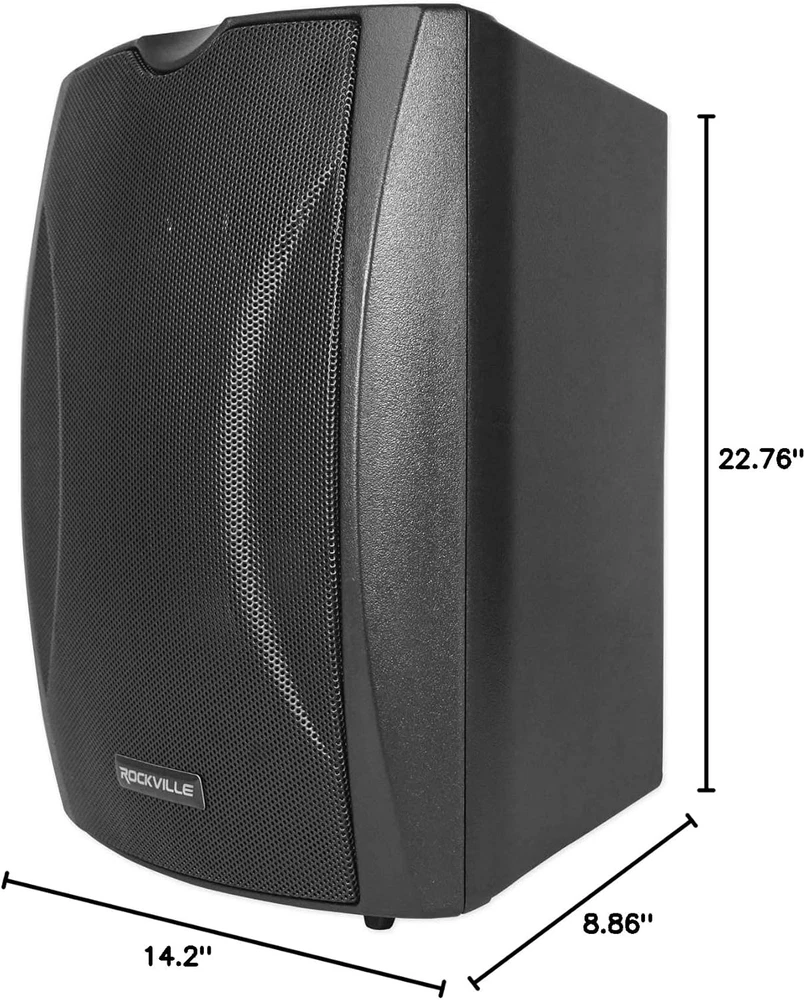 Store New Arrivals Add to Favorite View Feedback Contact 70V 5.25" IPX55 Commercial Indoor/Outdoor Wall Speaker - Black (WET-5B) Description Item model number WET-5B Style 5.25” Black (Single) Number of Items 1 Power Source Corded Electric Pattern Wall Speakers Control Method App Warranty Type Full Warranty Tweeter Diameter 1 Inches Unit Count 1.0 Count Speaker Size 5.25 Inches Material Plastic, Metal Model Name WET-5B Impedance 8 Ohm Recommended Uses For Product For Surround Sound Systems Specific Uses For Product Commercial indoor/outdoor environments, high-power installations, outdoor use, environments requiring good bass performance Included Components Speakers Subwoofer Diameter 5.25 Inches Country of Origin China Speaker Maximum Output Power 40 Watts Connectivity Protocol Wi-Fi Item Weight 4.62 pounds Connectivity Technology Wired Special Feature Hi Res Audio Mounting Type Wall Mount Color Black Compatible Devices Smartphone, Tablet, Laptop, Desktop Speaker Type Outdoor Global Trade Identification Number 00819216023488 Is Waterproof TRUE Audio Output Mode Stereo and Surround Sound Product Dimensions 22.76"D x 8.86"W x 14.2"H Rockville WET-5B 70V 5.25" IPX55 commercial indoor/outdoor wall speaker - Black Rockville WET-5B 5.25" Commercial/restaurant 70V or 8 Ohm wall mount speaker. IPX55 rating makes this perfect for outdoor use or indoor use. IPX55 means this can withstand JET streams spraying it from any angle without any damage. Rugged ABS cabinet is waterproof Vented enclosure with waterproof vent (water can't get in but sound can get out). aluminum grill is waterproof and rustproof. Waterproof protective cloth blocks water from going into the vent. Swivel wall bracket with quick release and tightening knobs. Weather resistant 5.25” woofer with polypropylene cone. 1” Mylar dome tweeter is very efficient and has great sound. Frequency response: 60Hz – 20kHz. Sensitivity: 86dB. Rms power: 40W (when using 8 Ohm). Nominal Impedance: 8 Ohm. 5-Way binding post terminals Built in transformer supports 70V and 100V installations. Built in tap switch to easily select your 70V or 100V power. Color: black. Weight: 4.6 lbs each. Cabinet dimensions: 9.6” x 7.1” x 7.5” Product Description Rockville WET-5B 70V 5.25" IPX55 Commercial Indoor/Outdoor Wall Speaker - Black Description: The Rockville WET-5B features swivel brackets that allow you to mount the speaker to your wall. Attaching the speaker to the swivel bracket is quick and easy. Simply slide the speaker on to the bracket and tighten the knobs with a quick turn.Changing the swivel position is just as easy. You simply loosen the Knobs to change the position of the speaker while it is on the bracket. IPX55 rated! These speakers are IPX55 rated. This means you can install them indoors or outdoors. They can withstand heavy rain, moisture, sun,dust, and even jet streams of water hitting the speaker from multiple angles. We went above and beyond in terms of product development to get these speakers IPX55 rated. The cabinets were upgraded to a high-end waterproof ABS material. In addition, we added a special cloth material to the speaker to block water from going entering the vent. The grill is made of aluminum and will never rust from outdoors use. We used Stainless steel brackets to ensure that the brackets wouldn’t rust either. Even the speaker wire terminals are waterproof and rustproof! Vented design has kicking bass! This is one of the only indoor/outdoor 70V speakers on the market with a vented design and an IPX55 rating. These will give you amazing bass response and great full range sound quality at low or high volume. What is 70 volt ? With 70 volt there are a lot of advantages over 8-ohm systems. One of the main advantages is the simplicity of the wiring as well as how easy it is to match up speakers with the amplifier. For example, you can buy one 70V amplifier with 350 watts and you can install speakers that total close to 300 watts. It does not matter if it is 15 speakers that are 20 watts each or 50 speakers that are tapped at 5 watts each. You always want your 70 volt amp to have at least 15 or 20% more power than the combined watts your speakers are tapped at. When we say the word tap, what we are referring to are the selectors these speakers have on them. For example, these speakers have selectable options of 2.5w, 5w, 10w, 20w. What this does is limit how many watts the built-in transformer on the speaker will allow the speaker to get from the amplifier. This gives you full customization over the sound for your space. In a restaurant for example you can tap your dining room speakers at 5 watts, the speakers by the bar area at 20 watts, and the ones in the hallway at 2.5 watts. Another great feature with 70 volt is you can mix and match any 70 volt speakers whether they are ceiling speakers, wall mounted speakers, subwoofers, etc. 70 volt systems allow you to run very long lines of speaker wire without signal loss. This is ideal when running long speaker leads. The wiring is simple. You just wire all the positive terminals of the speakers to the positive 70 volt terminals of the amplifier. The negative terminals on the speaker simply get wired to the negative terminals on the amp. You do not have to worry about impedance. The power is constant. Features: Rockville Wet-5B 5.25" Commercial/Restaurant 70V or 8 Ohm Wall Mount Speaker IPX55 rating makes this perfect for outdoor use or indoor use IPX55 means this can withstand jet streams spraying it from any angle without any damage Rugged ABS cabinet is waterproof Vented enclosure with waterproof vent (water can’t get in but sound can get out) Aluminum grill is waterproof and rustproof Waterproof protective cloth blocks water from going into the vent Swivel wall bracket with quick release and tightening knobs Weather resistant 5.25” Woofer with Polypropylene cone 1” Mylar dome tweeter is very efficient and has great sound Frequency Response: 60Hz – 20Khz Sens