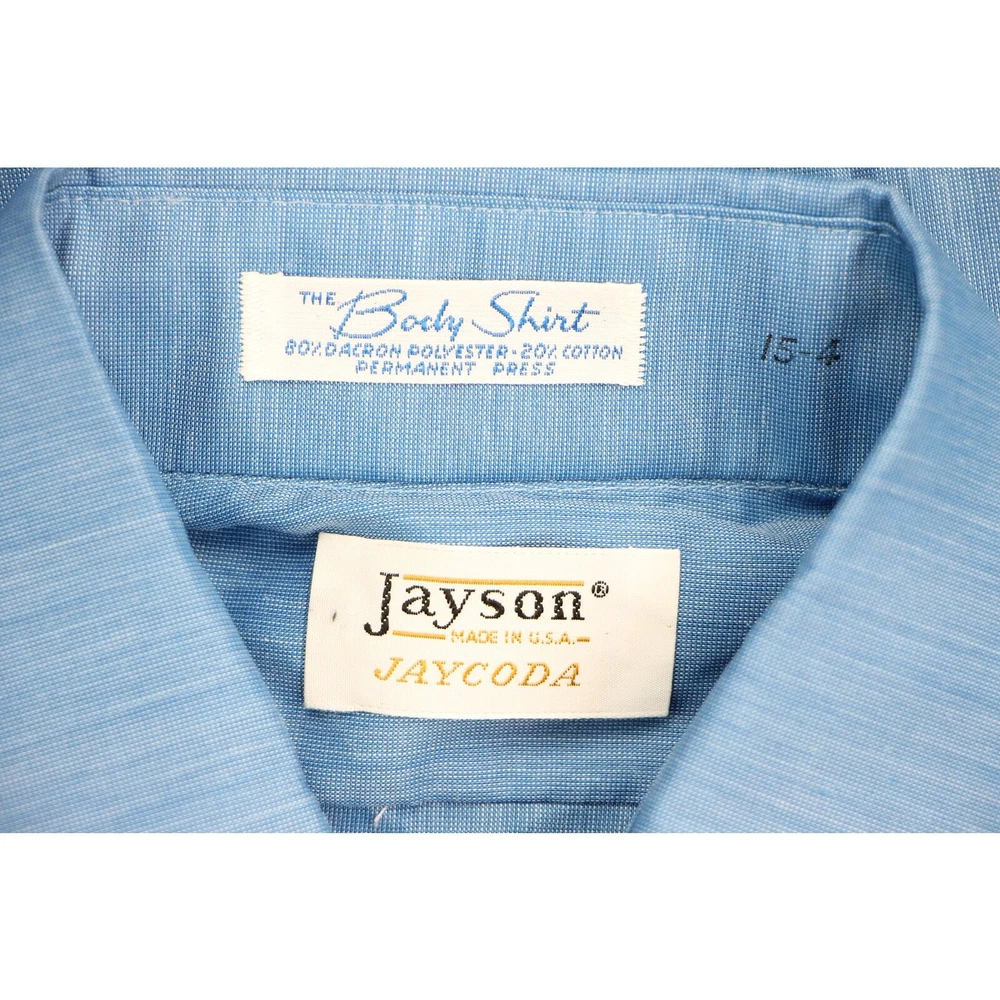 Step into a world of timeless sophistication with this 70s Vintage Jayson Jaycoda Blue Tuxedo Shirt. Tailored to perfection, this piece embodies the essence of retro elegance with its classic design and bold, versatile appeal. The structured silhouette and minimalist charm make this shirt a must-have for those who appreciate the finer details in fashion. Whether you're dressing for a wedding, work, or a special occasion, this shirt is a statement of refined taste and understated sophistication. Perfect for those who value classic style with a touch of boldness. 70s Vintage Jayson Jaycoda The Body blue Deadstock New Dress Wedding Work Tuxedo Shirt material:polyester/cotton color: Ruddy Blue button front french cuffs made in USA dead stock size on tag:15-4 fits like a: medium armpit to armpit:21 length(top to bottom):33 sleeve length:28 shoulder:17 waist:18.5 all measurements are in inches any major defect will be mentioned and/or photographed 8f72f7 # 15179