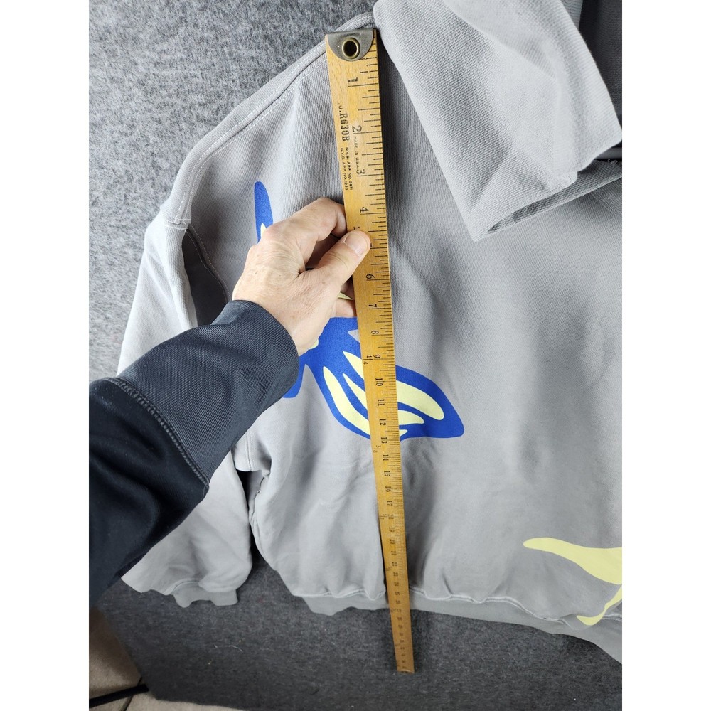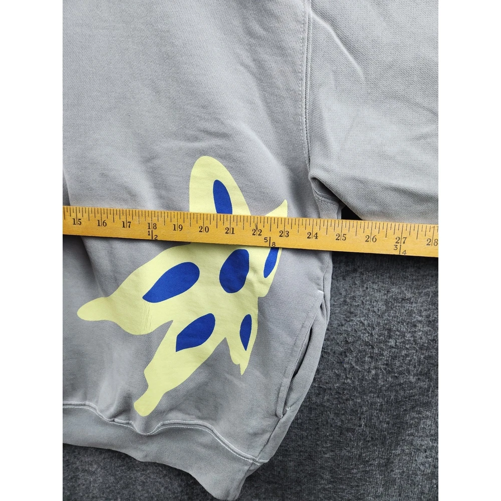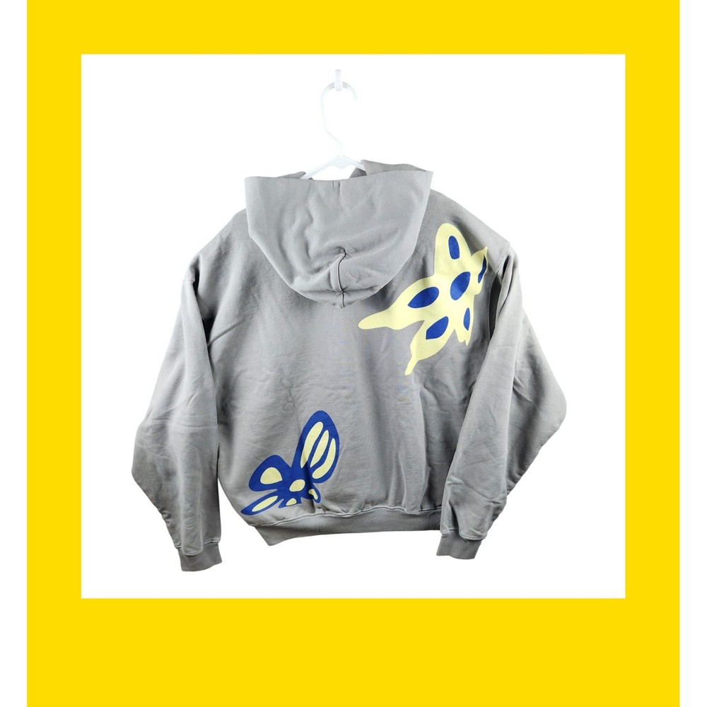 Discover a unique streetwear statement with this gray graphic hoodie. Bold abstract art graphics in vibrant blue and yellow create a captivating visual appeal, making this piece a standout addition to your wardrobe. The comfortable hooded design and relaxed fit offer effortless style and coziness, perfect for layering or wearing on its own. Elevate your casual look for weekend outings or relaxed evenings with friends. Measurements: • Length: 27 in • Chest: 24 in Type: Hoodie Department: Unisex Adults Style: Pullover Features: Hooded, Graphic Print, Pockets Closure: Pullover Theme: Butterfly Fabric Type: Knit Accents: Logo Pattern: Graphic Print Neckline: Crew Neck Material: Cotton Sleeve Length: Long Sleeve Fit: Relaxed Season: Fall, Winter, Spring Unit Type: Unit Keywords: graphic hoodie, streetwear, abstract art, mens sweatshirt, casual wear, artistic design, comfortable hoodie, unique graphic, pullover hoodie, fall fashion, winter wear, urban style