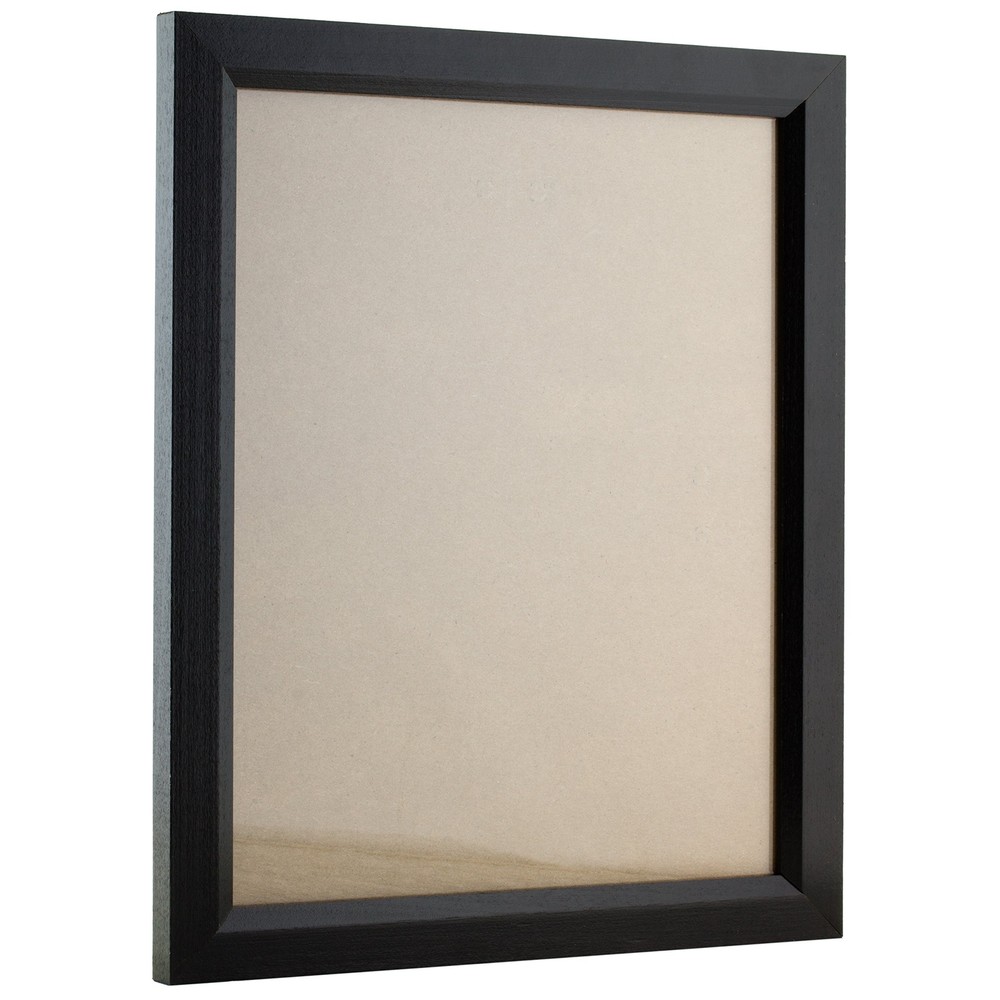 Traditional style; black; wood grain finish Frame includes: clear acrylic facing, rigid cardboard backing and wire hanging hardware kit (some assembly required) Frame holds a 14 inch by 22 inch photo/print/poster (viewable area is slightly smaller) Frame moulding is .825 inch wide; solid wood Made in the U.S.A.