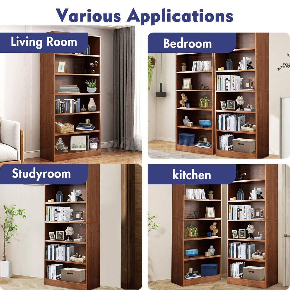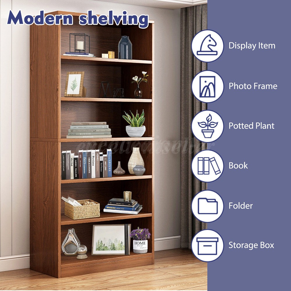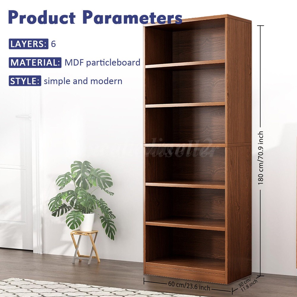 71'' Tall Adjustable 6-Shelf Wood Bookcase Storage Shelving Book Wide Bookshelf PRODUCT DETAILS The storage bookshelf is made from high-density MDF particleboard, ensuring durability and strong load-bearing capacity to protect your books and treasured items. Reinforced screws securely connect each shelf, ensuring a stable and safe structure. The six-tier design features smooth lines, blending rustic charm with modern simplicity, suitable for various home styles. Its waterproof design makes it easy to clean and maintain a tidy appearance. Spacious storage space allows you to organize books, photos, decorative boxes, and more, keeping your home office neat and orderly. The bottom anti-slip pads provide stable placement without sliding. This storage bookshelf is the ideal choice for your home organization needs. Specification: Type: Storage Bookshelf Dimensions (LxWxH) : 23.6"x11.8"x70.9" /60x30x180cm (Large Size) Number of Tiers: 6 Material: MDF Particleboard Color: Brown Applicable Occasions: Kitchen, Living Room, Dining Room, Bedroom, Home Office Style: Simple Modern Features: -📚 【 Durable and Strong Load-Bearing 】The bookshelf is made from high-density MDF particleboard, precisely processed and quality controlled to ensure the sturdiness and durability of the board. Each shelf is designed to easily support up to 22 lbs, providing safe protection for heavy encyclopedias and valuable collectibles. -📚 【 Stable Structure, Safe and Secure 】Reinforced screws tightly connect each shelf, making the bookshelf structure more stable. -📚 【 Chic Rustic, Simple and Stylish 】The bookshelf features a six-tier design with simple and smooth lines, showcasing a unique rustic charm. The height between each shelf is suitable for placing various sizes of books and items. The edges are carefully polished to be smooth and not easy to scratch fingers. The brown design makes it versatile, fitting seamlessly into any space in your home. -📚 【 Waterproof Design, Easy to Clean 】Made from waterproof MDF boards, the bookshelf effectively resists water and stain penetration. Even if accidentally splashed with water or stained, you don't need to worry. Simply wipe with a damp cloth to restore its original condition, keeping the bookshelf clean and beautiful. -📚【 Ample Storage Space, Hassle-Free Organization 】This brown bookshelf unit offers spacious storage space for books, photos, decorative boxes, and other small items. You can categorize books according to your needs, making your home office more organized. Package Contents: A set of shelving shelves (including installation instruction) Note: 1. Please allow slight differences due to manual measurements. 2. Due to differences in display and lighting, the picture may not reflect the actual product. 3. Product details may vary slightly due to different production batches. If you are concerned about the price difference, please purchase with caution. Thank you for your understanding. 4. If you have any questions about the product, please contact us. PAYMENT We only support transactions on the ebay, do not support offline or private transactions. Please make sure the address is accurate before you pay. SHIPPING We do not ship to PO Box, Alaska/Hawaii, APO/FPO, and US Protectorates. Item(s) would be shipped out within 1~2 working days after received your confirmed payment. Weekends and holidays are not working days. We will choose different warehouses according to the customer's address and item stock, shipped from CA and PA in the United States. RETURN Buyers may return or exchange an item which damaged within 30 days. eBay & PayPal money back guaranteed. CUSTOMER SERVICE We are committed to provide the best purchase experience for our customers. If you have any questions, just feel free to contact us, we respond queries within 24 hours in business days.