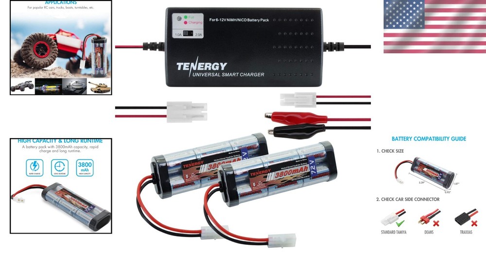 $ 15.84Tenergy 7.2V 3800mAh 6-Cell NiMH Rechargeable RC Car Battery Pack Tamiya Compatible