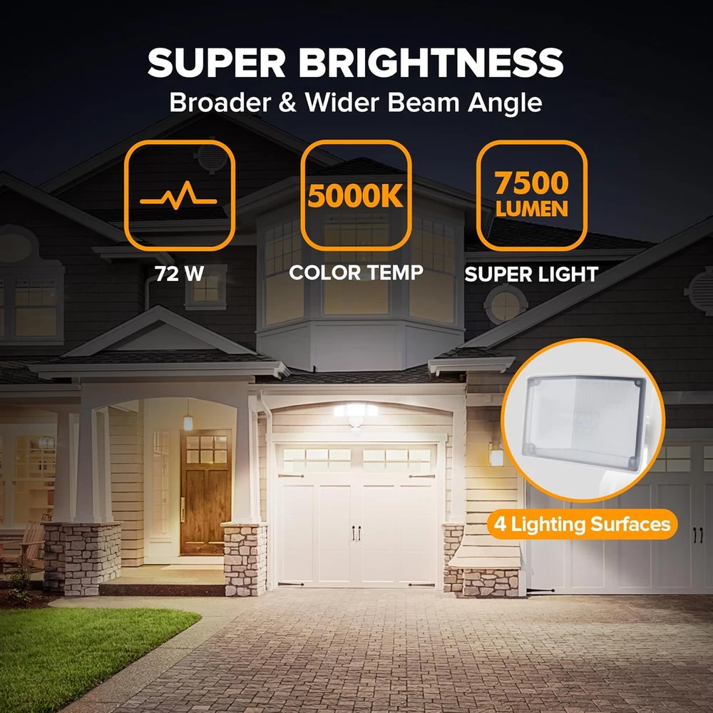 72W 7500LM LED Security Lights Motion Sensor Light Outdoor, 5000K Daylight, IP65