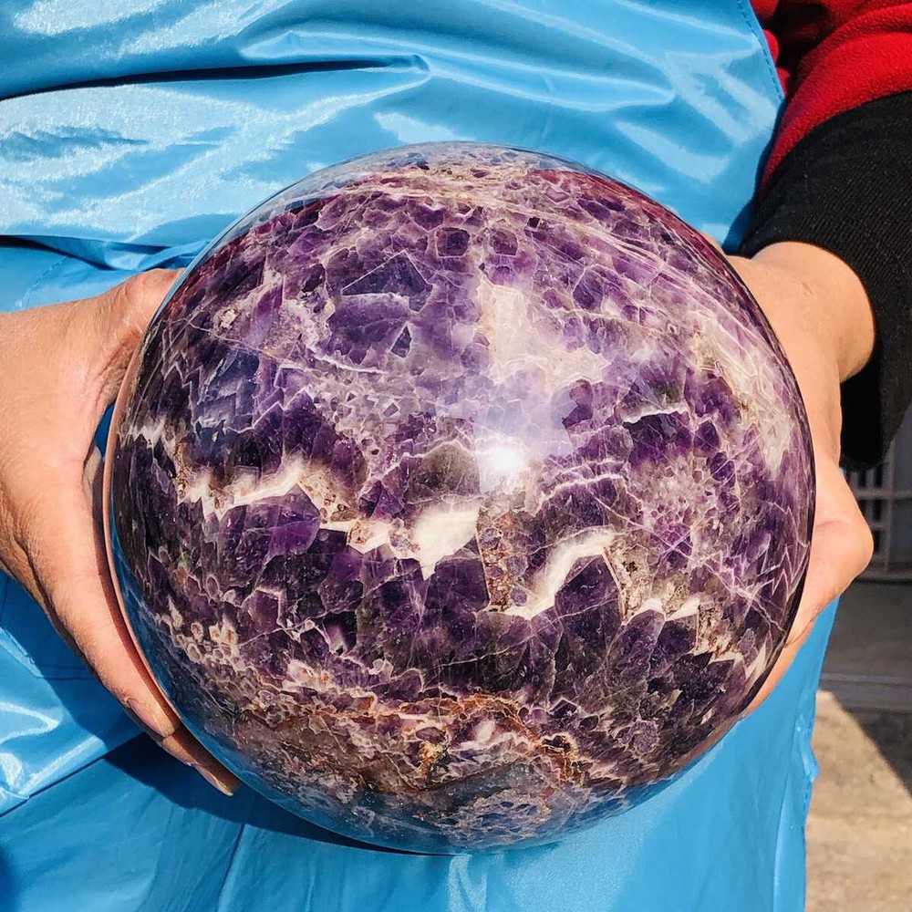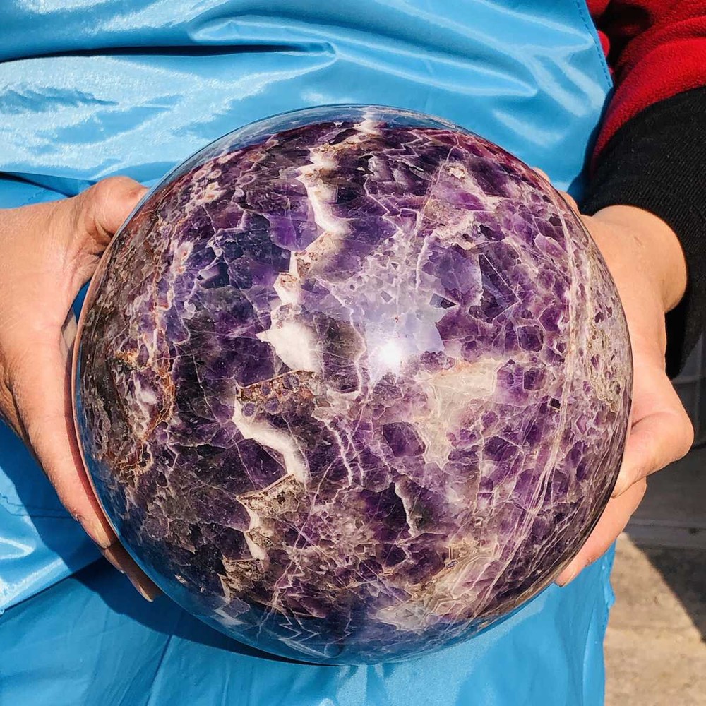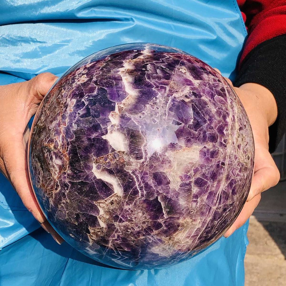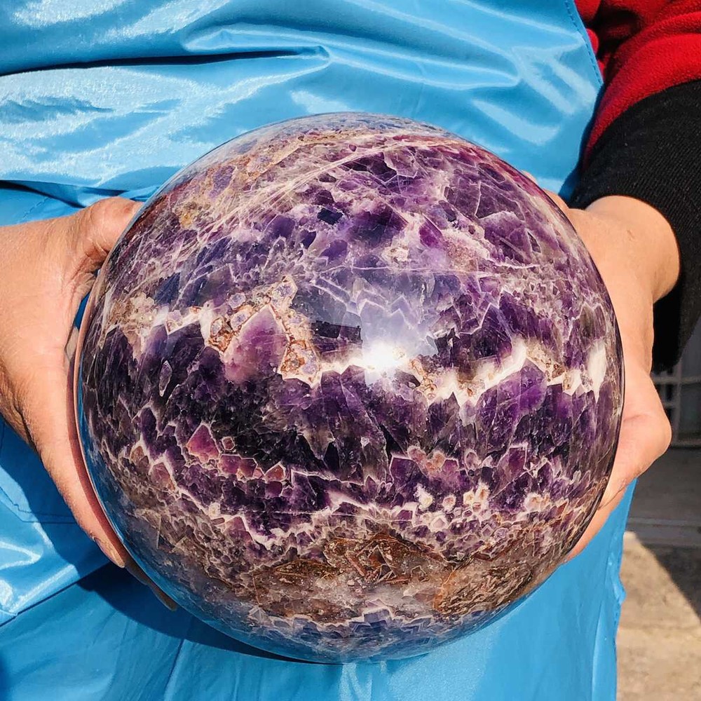 This stunning amethyst sphere is absolutely breathtaking! The deep purple hues swirl beautifully, catching the light in mesmerizing ways. It feels smooth, solid, and incredibly high-quality in my hands—perfect for meditation or as a gorgeous decorative piece. The size is impressive, making it a real statement piece while still feeling comforting to hold. Shipping was quick, and it arrived carefully packaged. Every angle looks just as vibrant as the photos, if not better! I love how it adds both calming energy and elegance to my space. Definitely a must-have for crystal lovers!