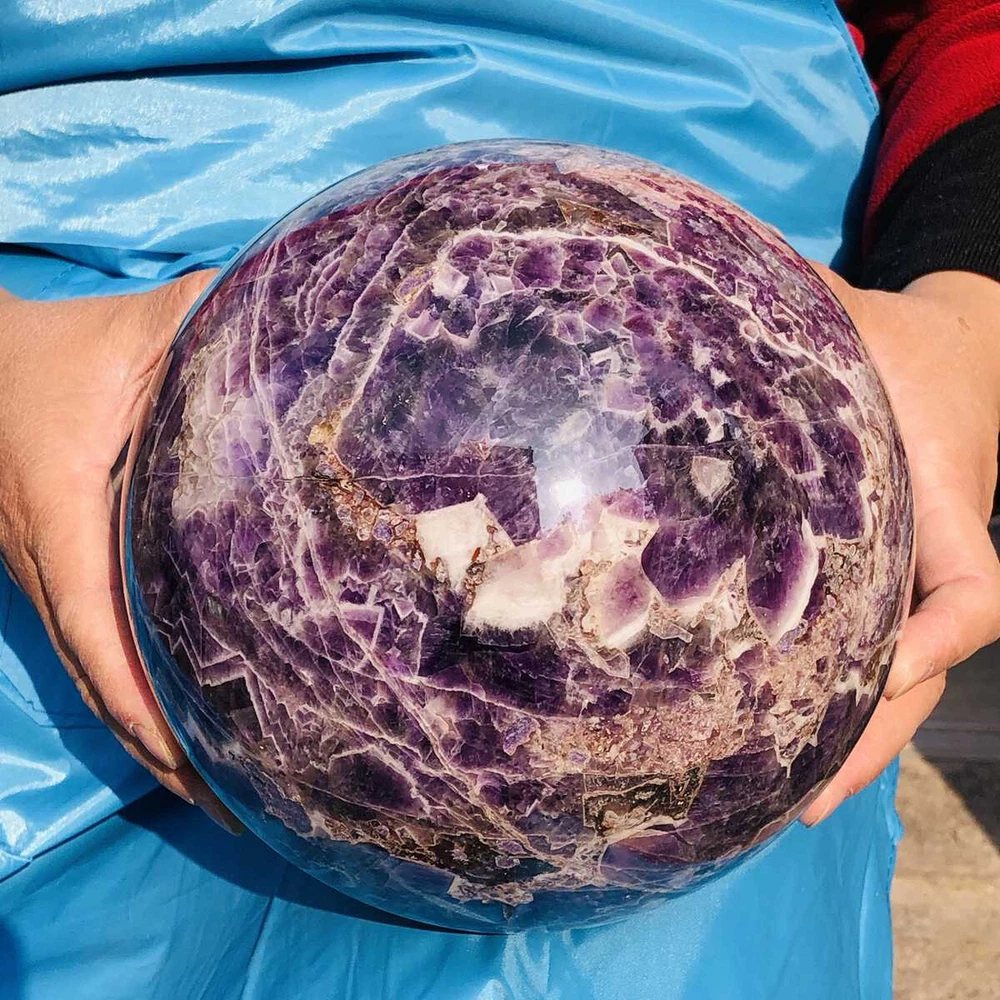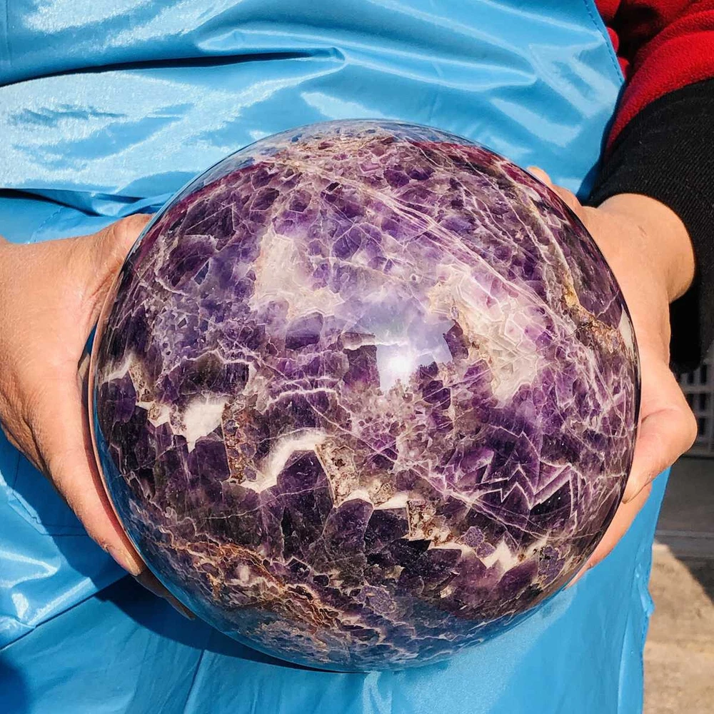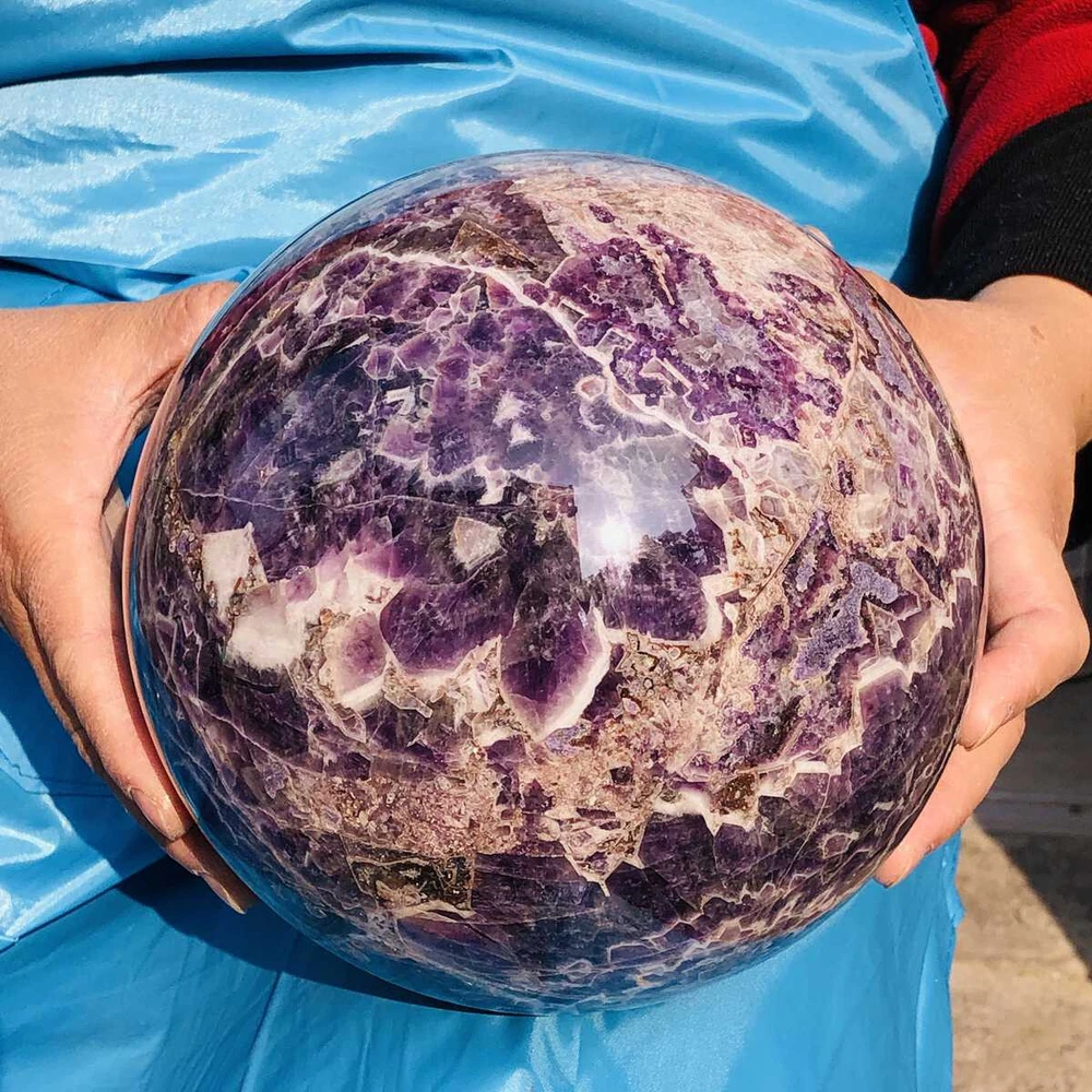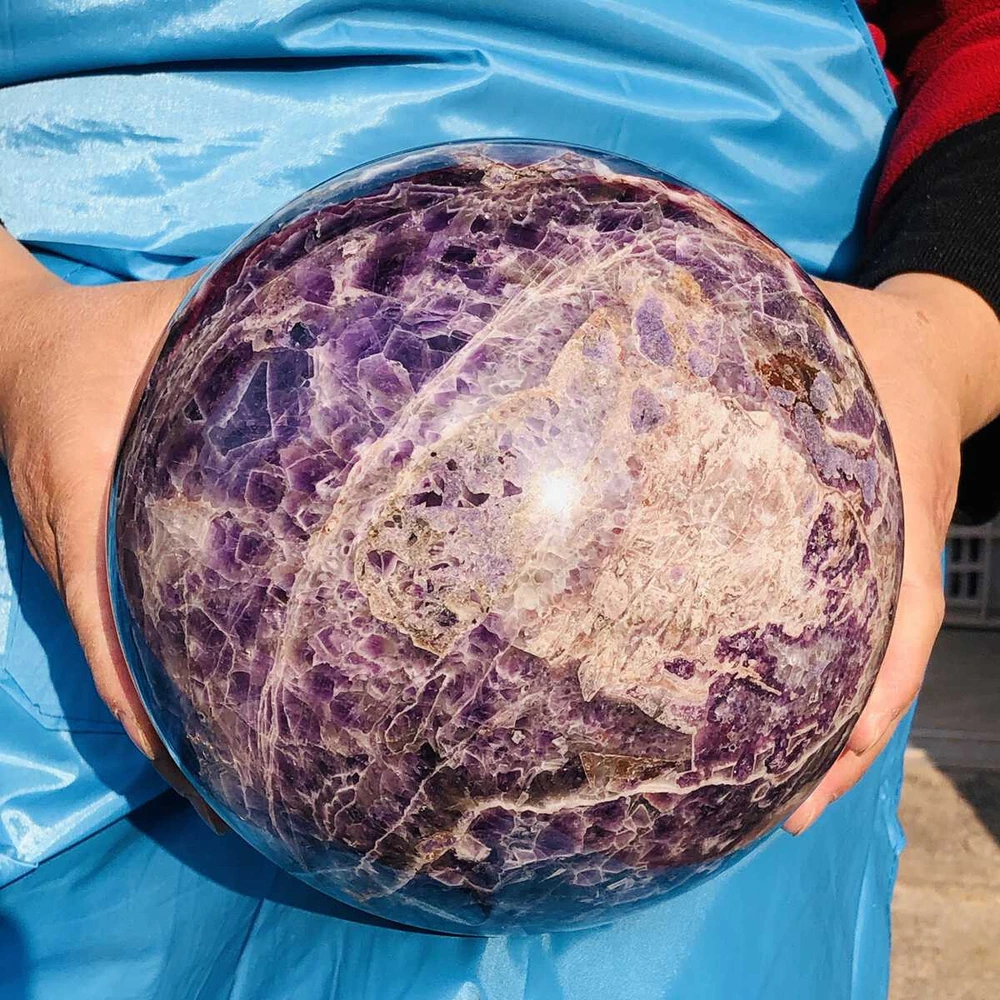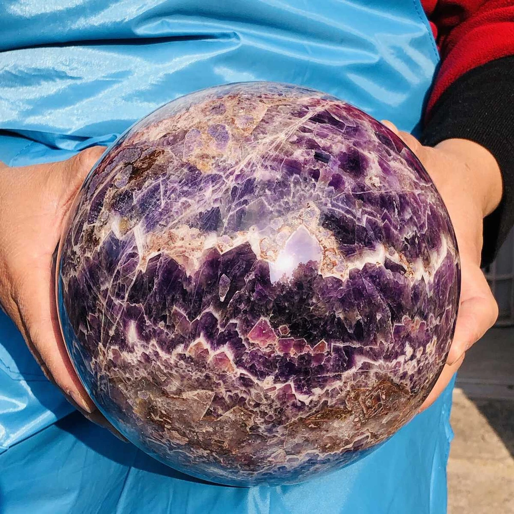 This stunning amethyst sphere is absolutely breathtaking! The deep purple hues swirl beautifully, catching the light in mesmerizing ways. It feels smooth, solid, and incredibly high-quality in my hands—perfect for meditation or as a gorgeous decorative piece. The size is impressive, making it a real statement piece while still feeling comforting to hold. Shipping was quick, and it arrived carefully packaged. Every angle looks just as vibrant as the photos, if not better! I love how it adds both calming energy and elegance to my space. Definitely a must-have for crystal lovers!